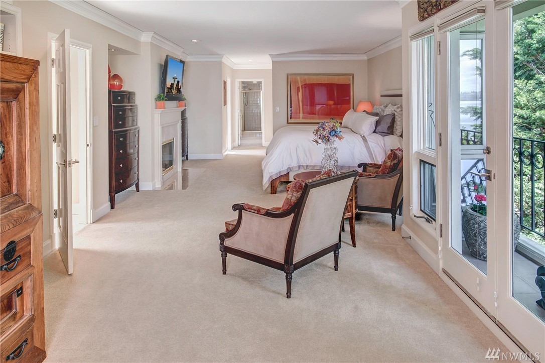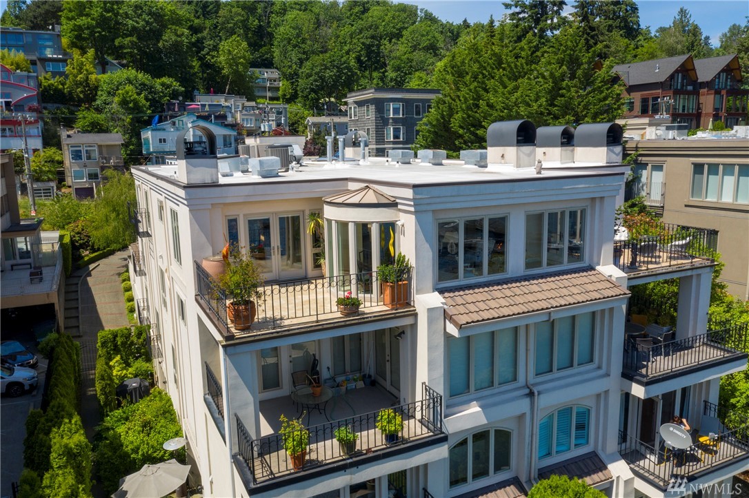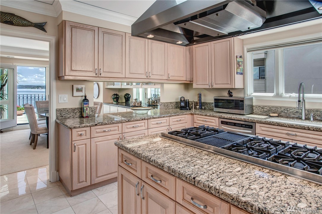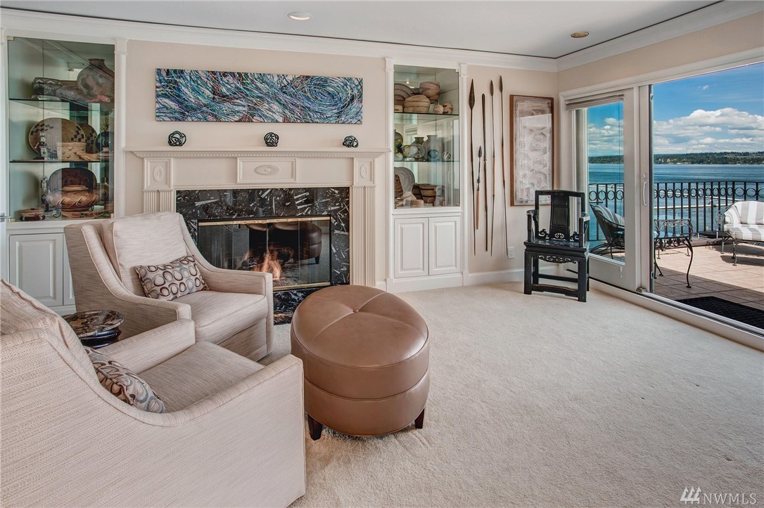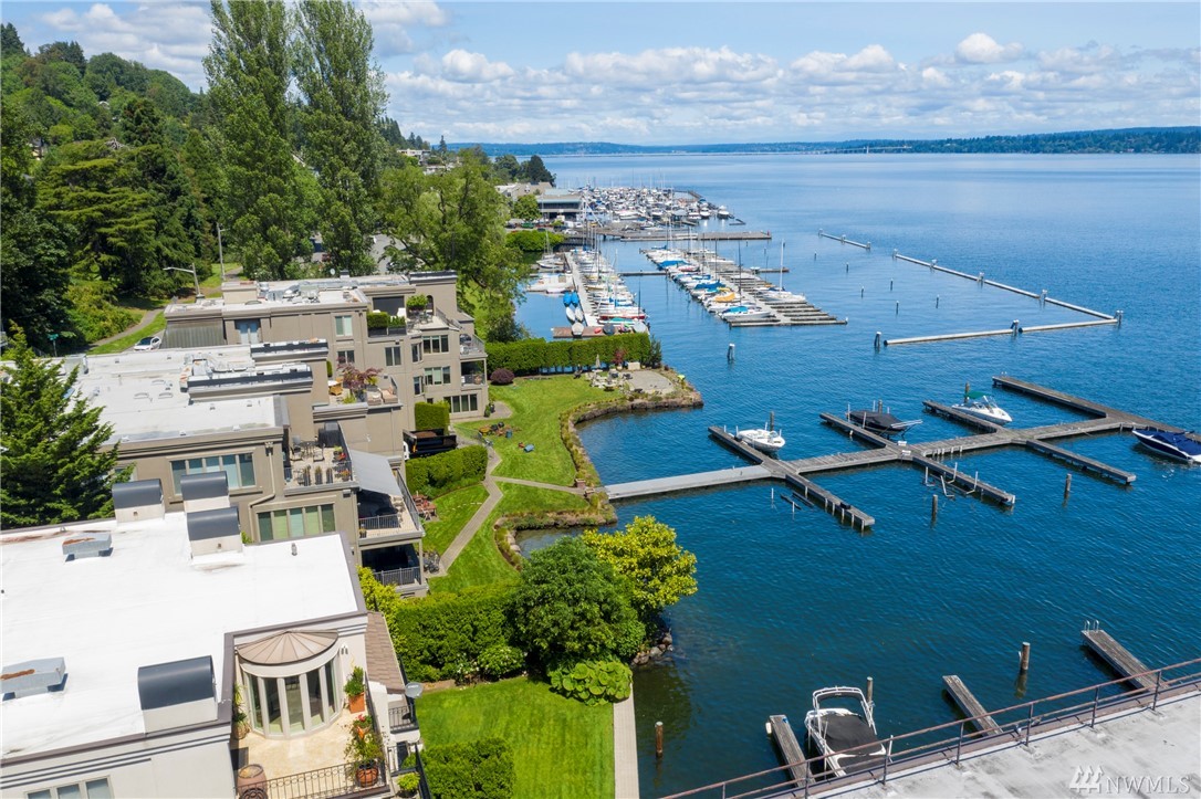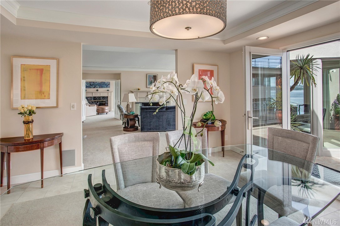 WATERFRONT PENTHOUSE in Leschi . Occupying the entire top floor of a five unit building this sunlit condo offers two large decks with spectacular Cascade Mtn. views and breathtaking sunrises. Chefs kitchen: Miele refrigerator, Viking range, Decor double oven and two wine coolers. Romantic master suite: 2 large walk in closets, gas fireplace, Juliette balcony and Jacuzzi tub. Two additional fireplaces provide cozy settings. Special Features: Private entry, deeded boat slip, three storage units.