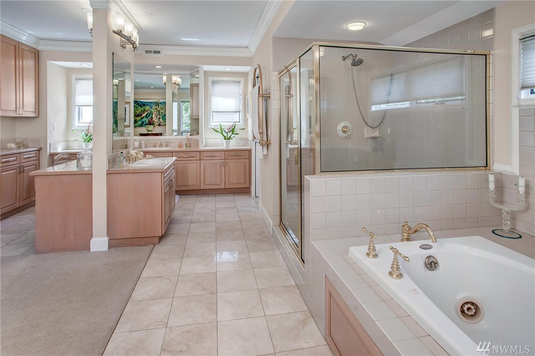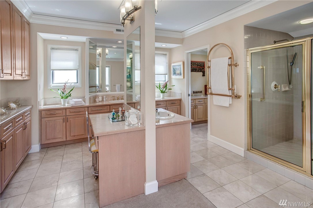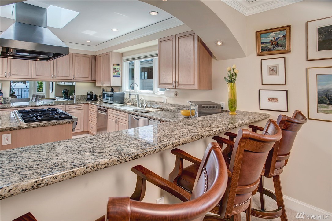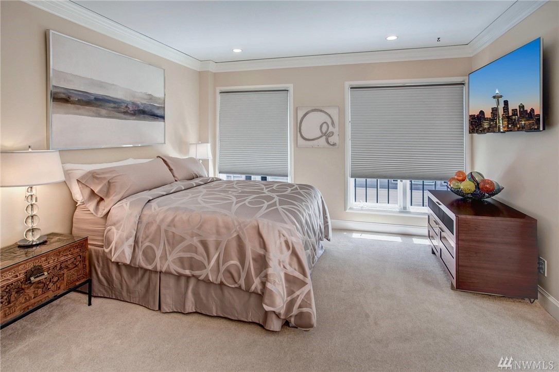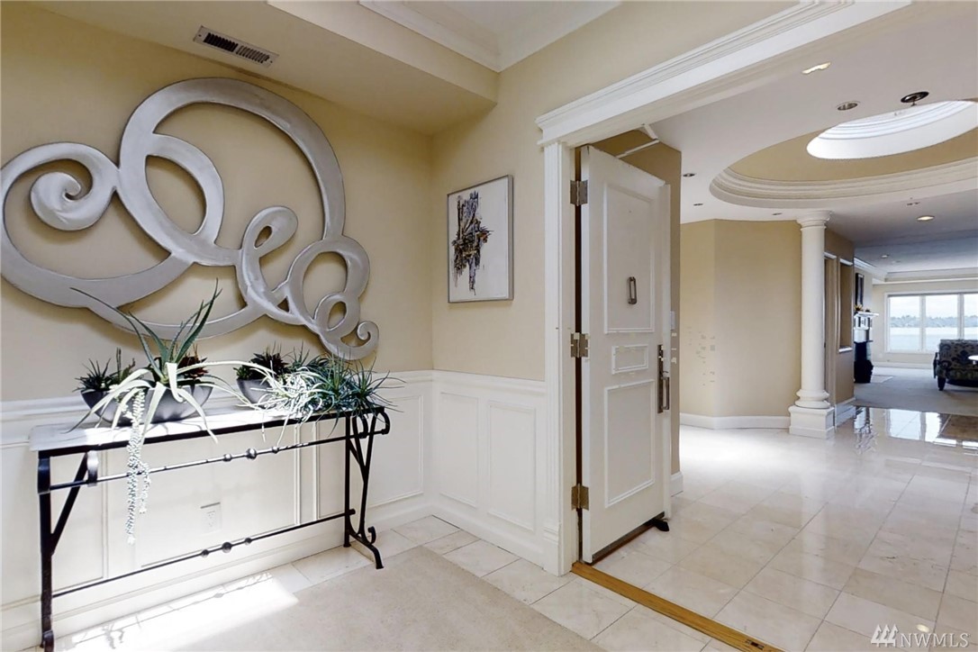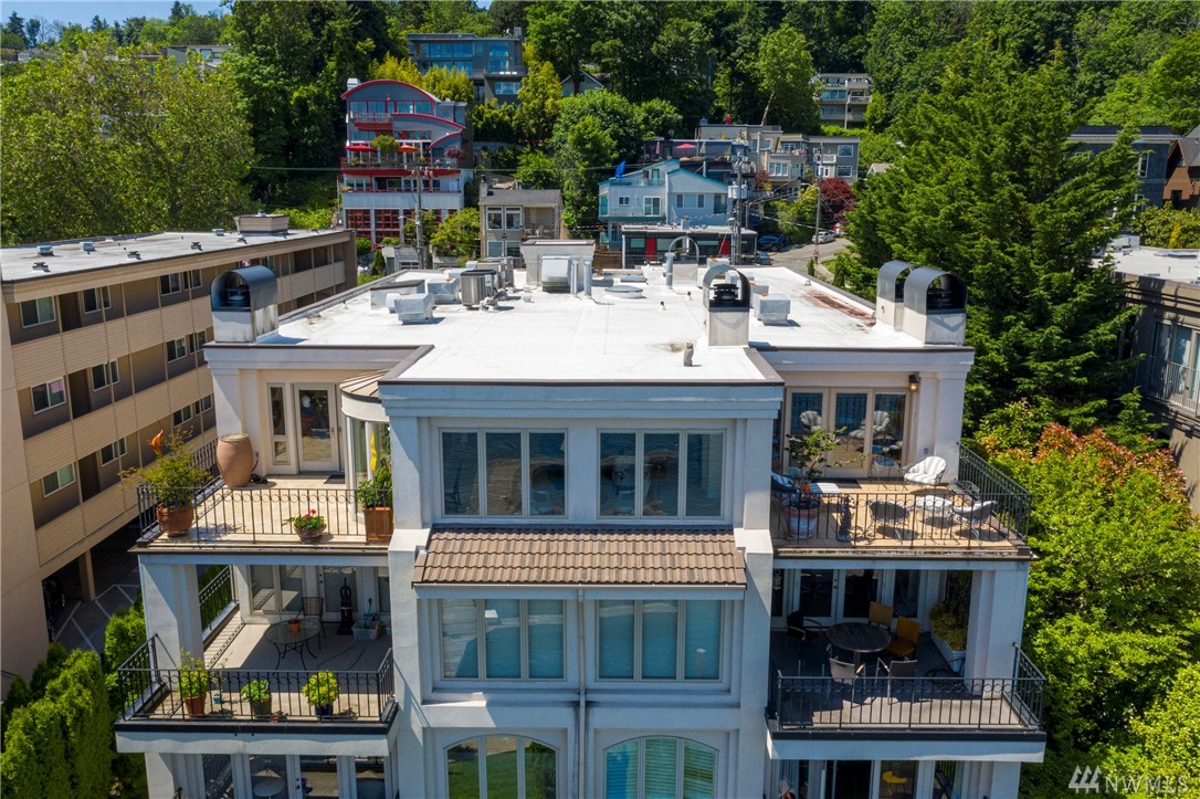 WATERFRONT PENTHOUSE in Leschi . Occupying the entire top floor of a five unit building this sunlit condo offers two large decks with spectacular Cascade Mtn. views and breathtaking sunrises. Chefs kitchen: Miele refrigerator, Viking range, Decor double oven and two wine coolers. Romantic master suite: 2 large walk in closets, gas fireplace, Juliette balcony and Jacuzzi tub. Two additional fireplaces provide cozy settings. Special Features: Private entry, deeded boat slip, three storage units.