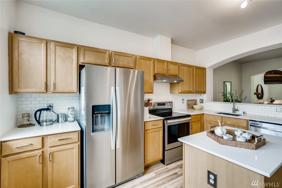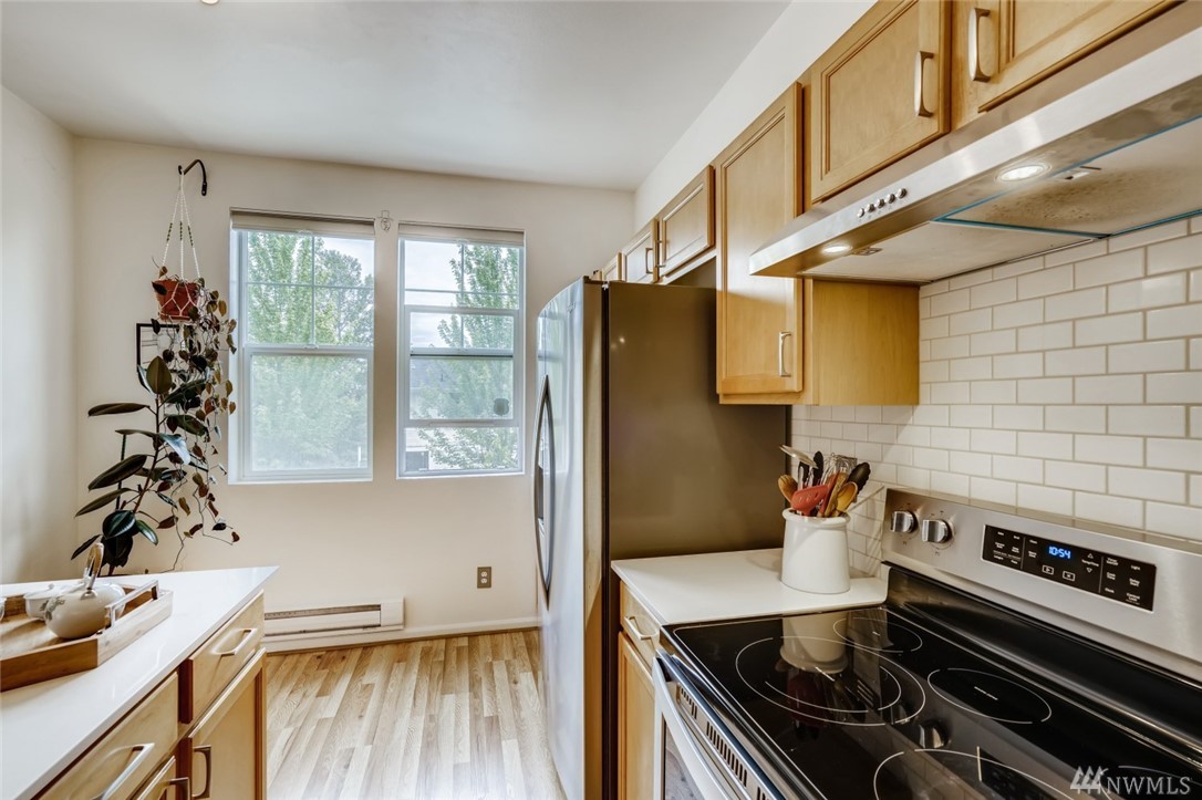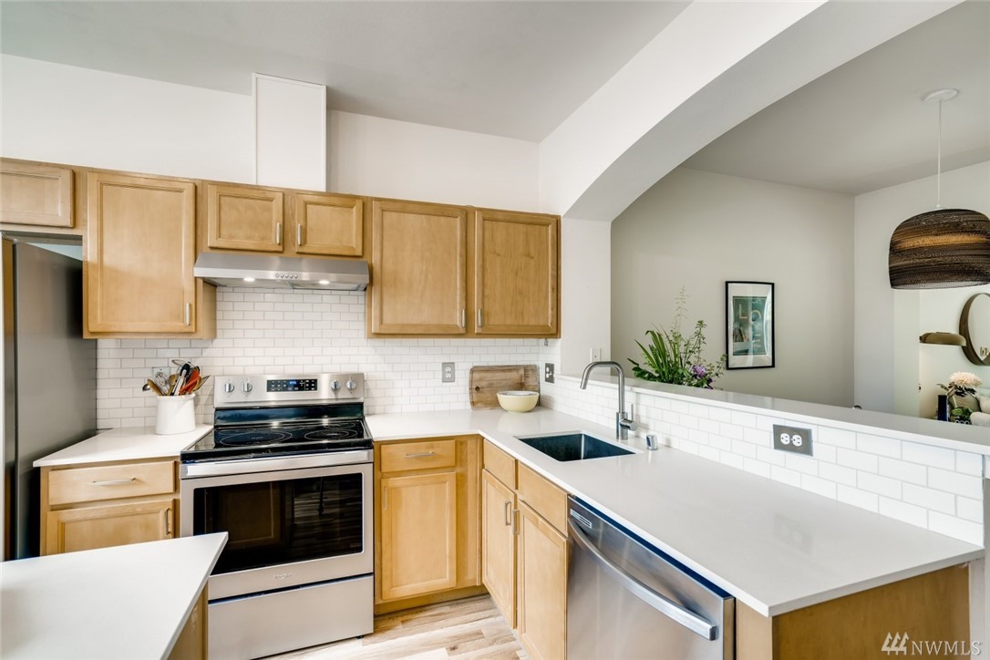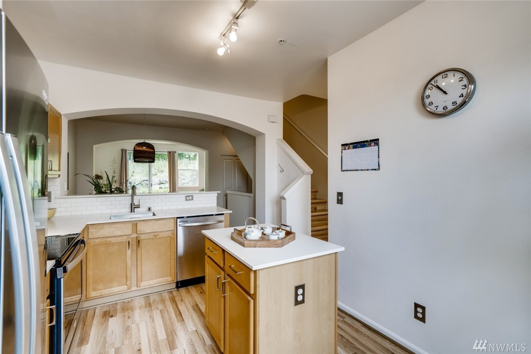 Enjoy easy access to light rail, shopping and restaurants. Plenty of storage in the deep garage. Open floor plan of the main floor allows light to flow through along the brand new hardwood floors. Sip coffee in your patio garden that backs up against a flourishing greenbelt.