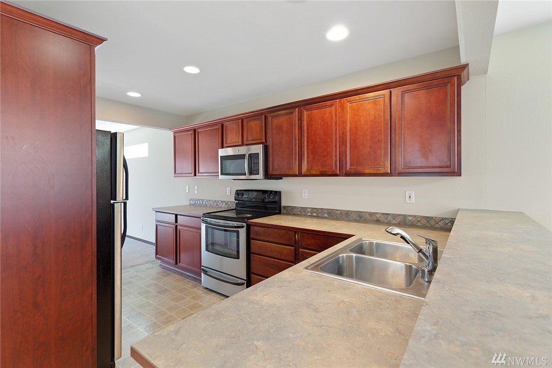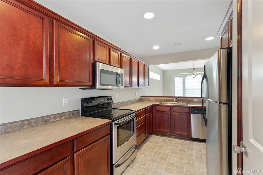 Delight in tranquil living off of tee box 8 of Walter Hall Golf Course! Highly admired 3 bd, 2.5 bth, 3 story home w/1852 sq ft is fully fenced at the end of appealing & private Augusta Woods. Brand new roof & int paint. Kit feat ss appls w/dining & entry bar area, gas fp in la, vaulted master, wired for security & sound w/light throughout! 2 car tandem gar feat extra storage space. Low maint & dues. Min from playground & off leash dog park! Conveniently located from I-5, 99, 525, & 526.