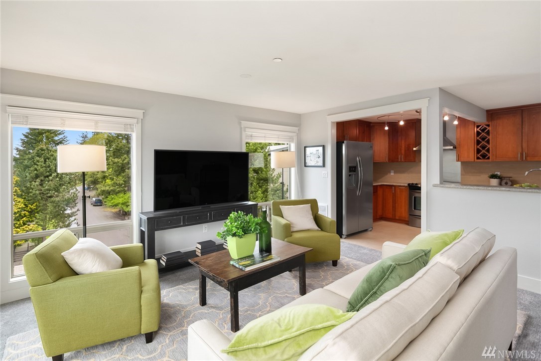 Rare opportunity to own the best unit in all of Ridgewood. Top floor, corner unit w/ views of Lake Washington & Seattle.