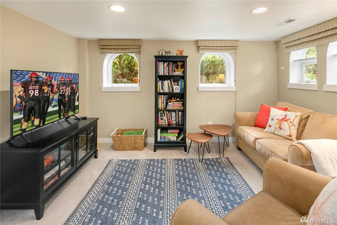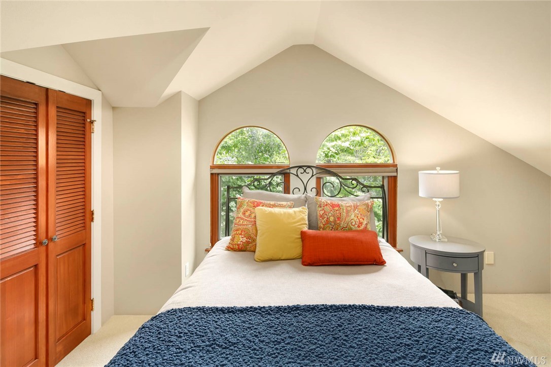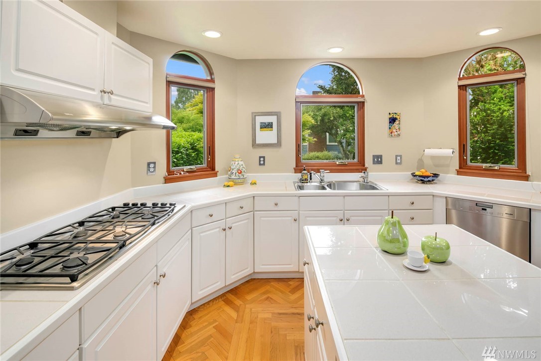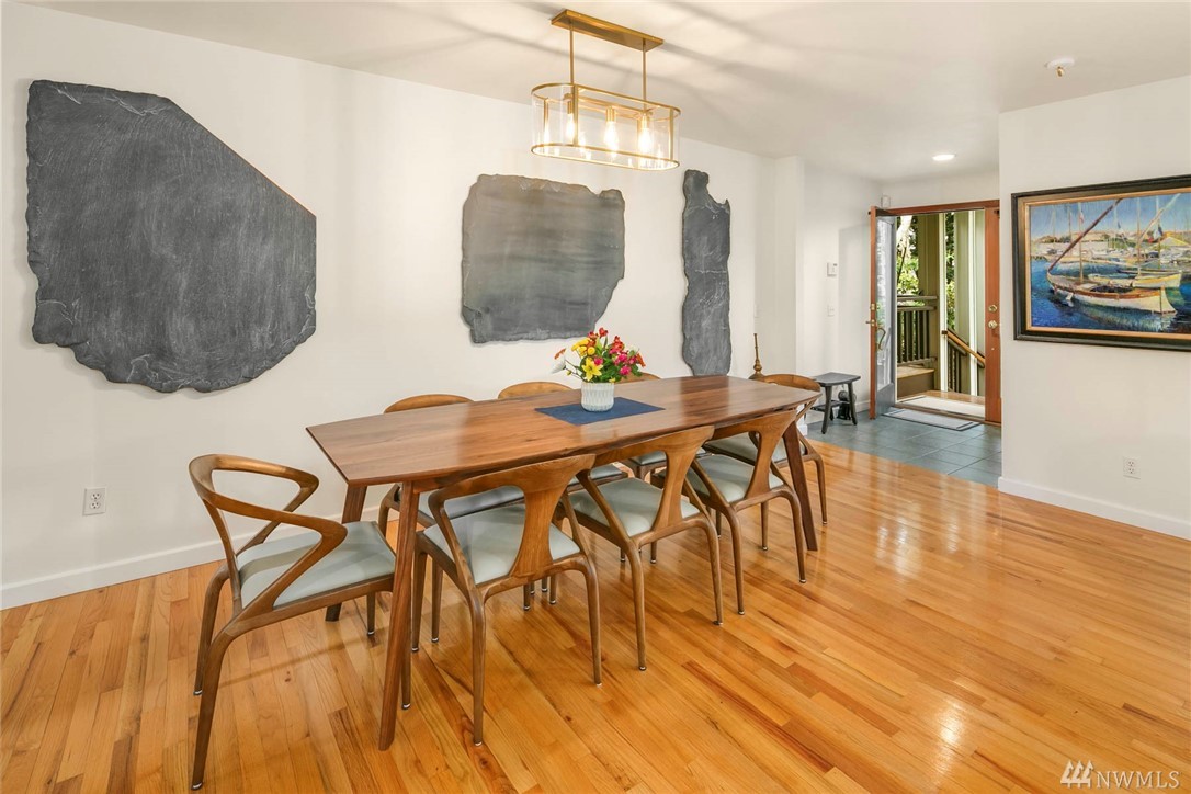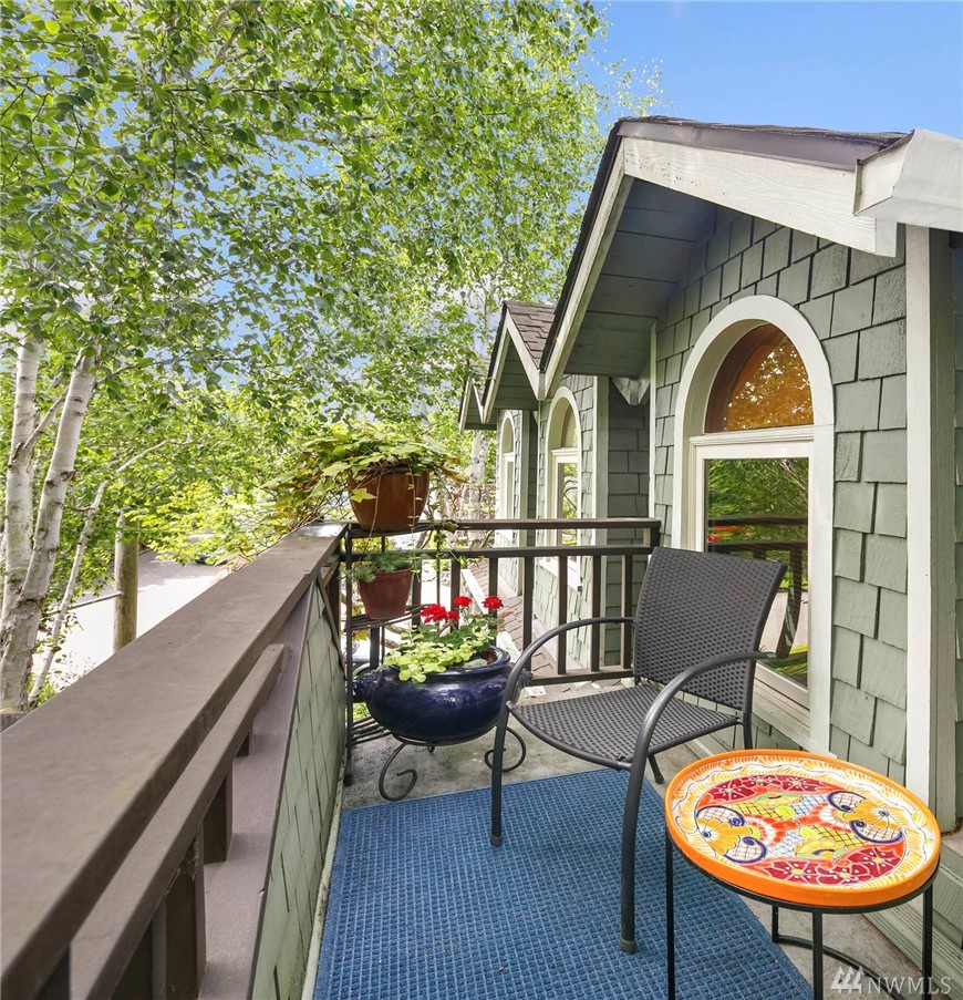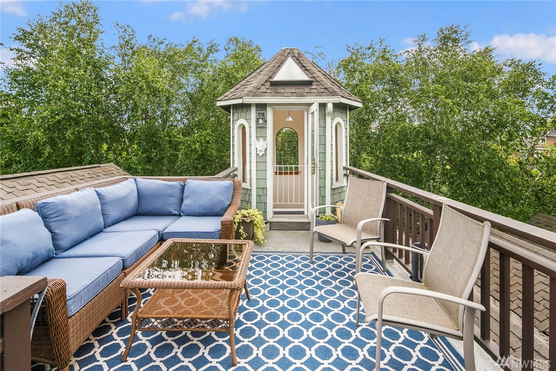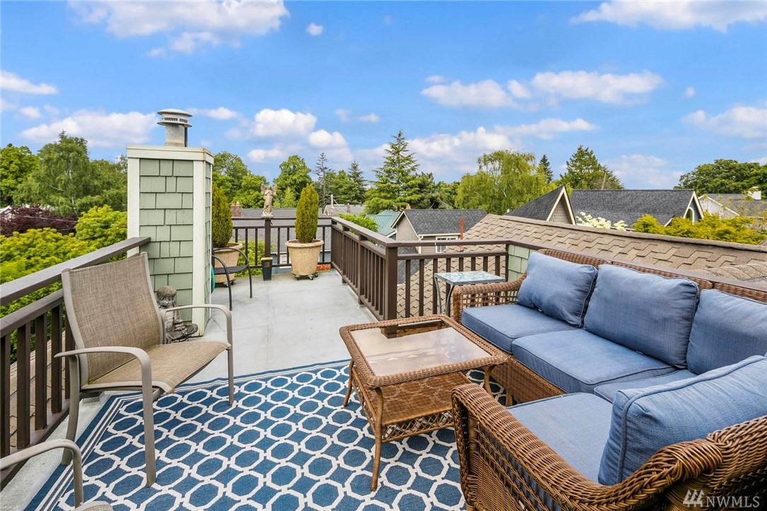 Townhome lives like a single family home: one shared wall, abundance of windows looking out to lush green foliage, fantastic walkable location, .6 miles to Queen Anne Ave. Enter through double doors to large open main floor w/oak hardwoods, gas fireplace, kitchen w/updated appliances & center island, & a half bath for guests. Upstairs is an enormous master suite with 5 piece bath multiple WIC, home office spaces & private rooftop deck. 2 more bedrooms, family room and full bath lower level.