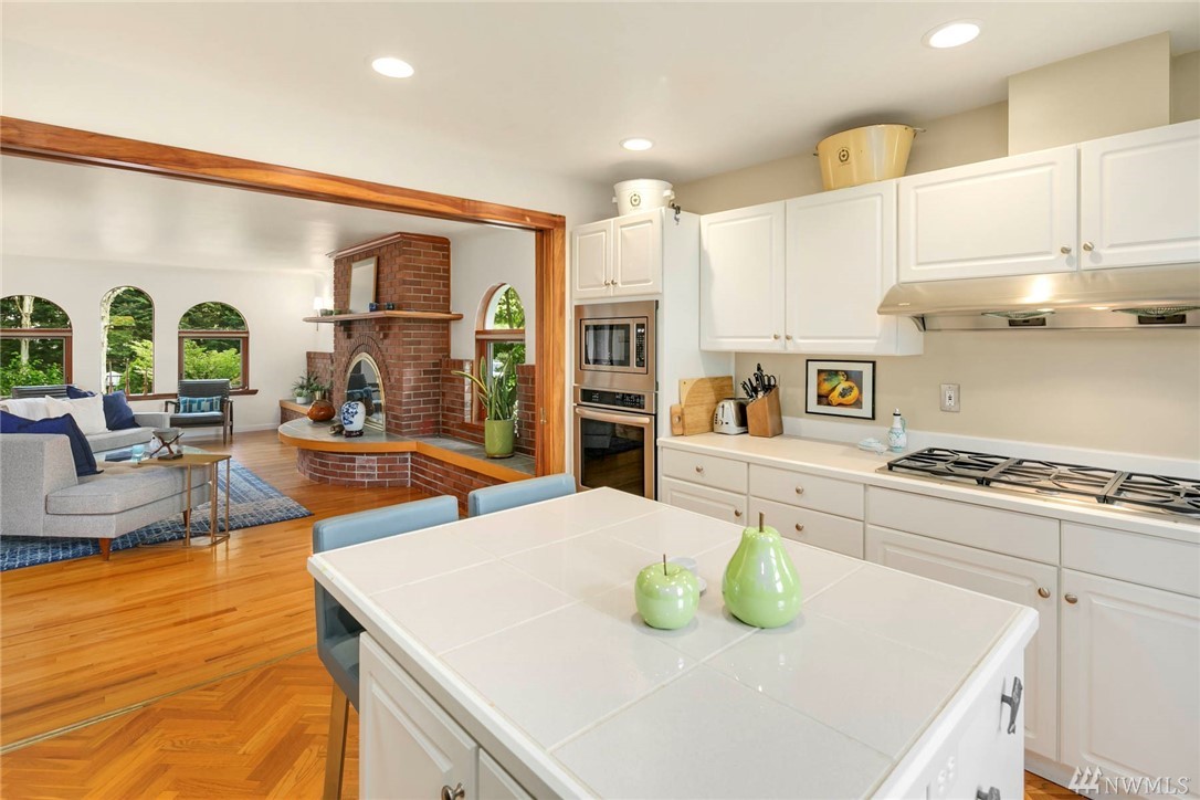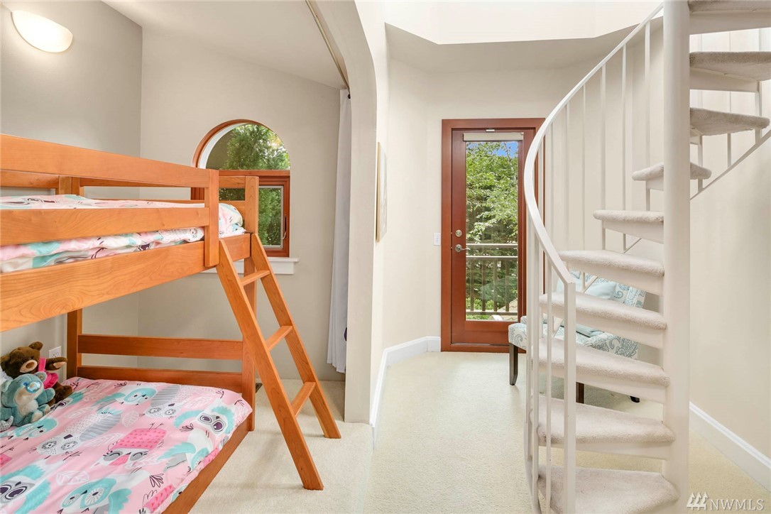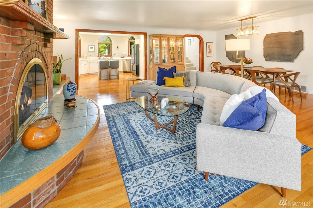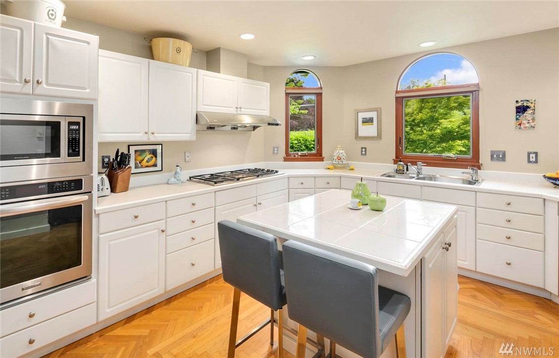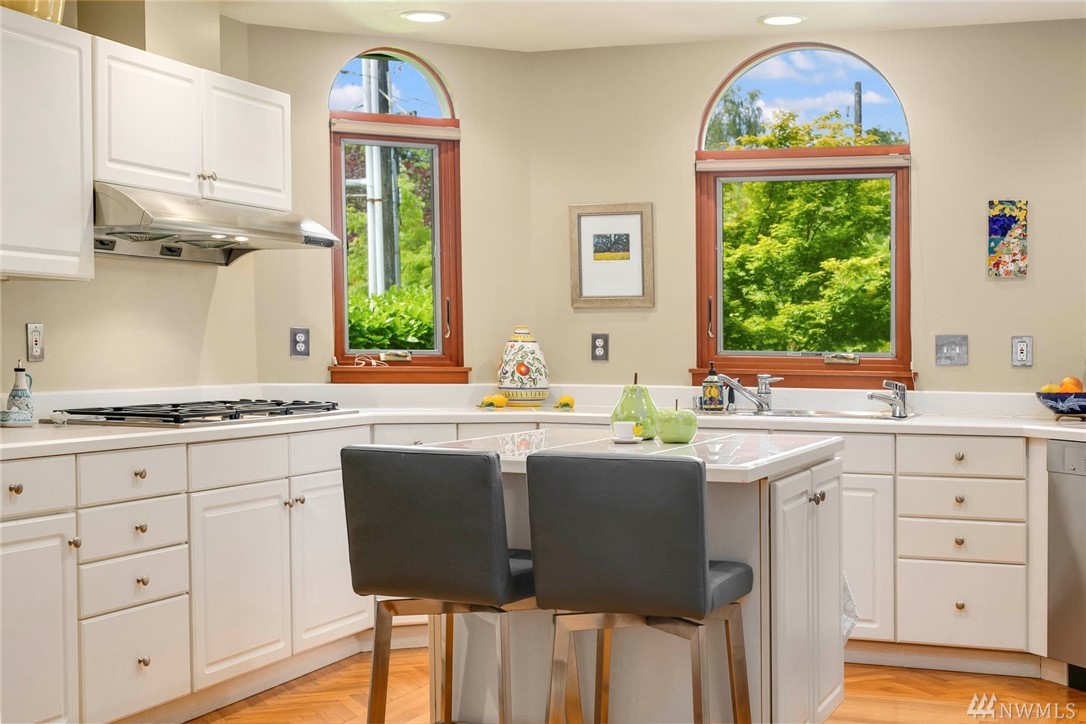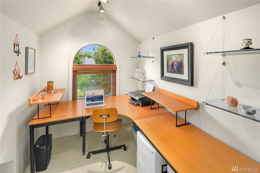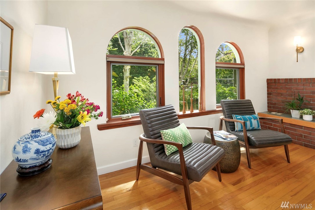 Townhome lives like a single family home: one shared wall, abundance of windows looking out to lush green foliage, fantastic walkable location, .6 miles to Queen Anne Ave. Enter through double doors to large open main floor w/oak hardwoods, gas fireplace, kitchen w/updated appliances & center island, & a half bath for guests. Upstairs is an enormous master suite with 5 piece bath multiple WIC, home office spaces & private rooftop deck. 2 more bedrooms, family room and full bath lower level.