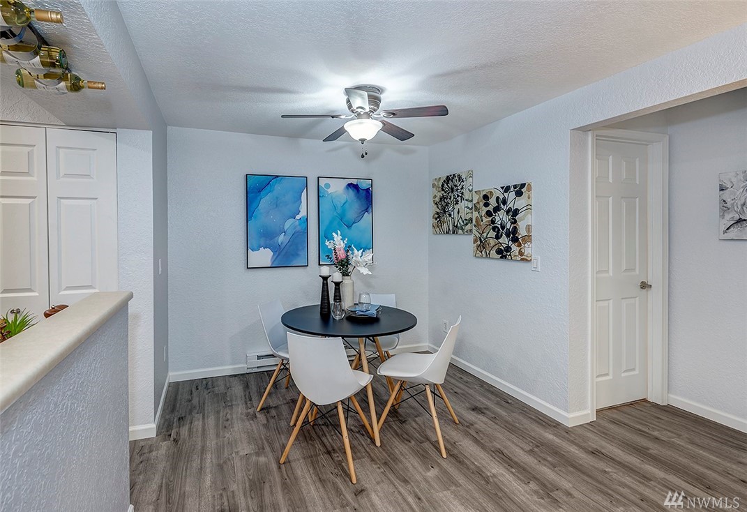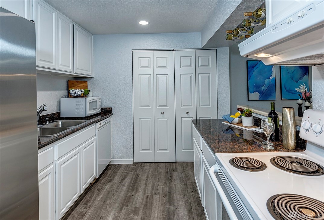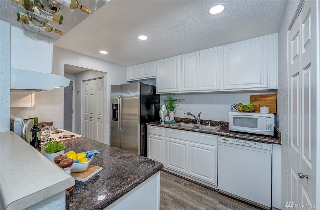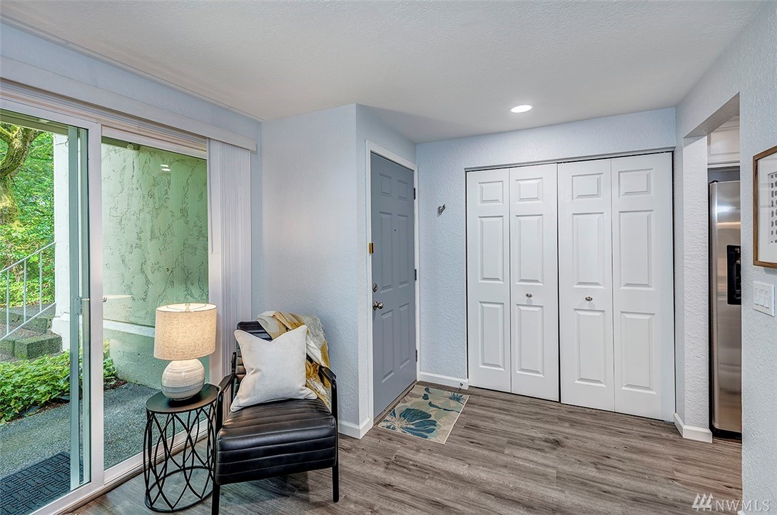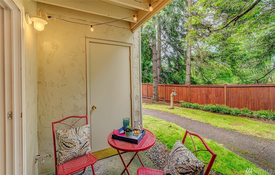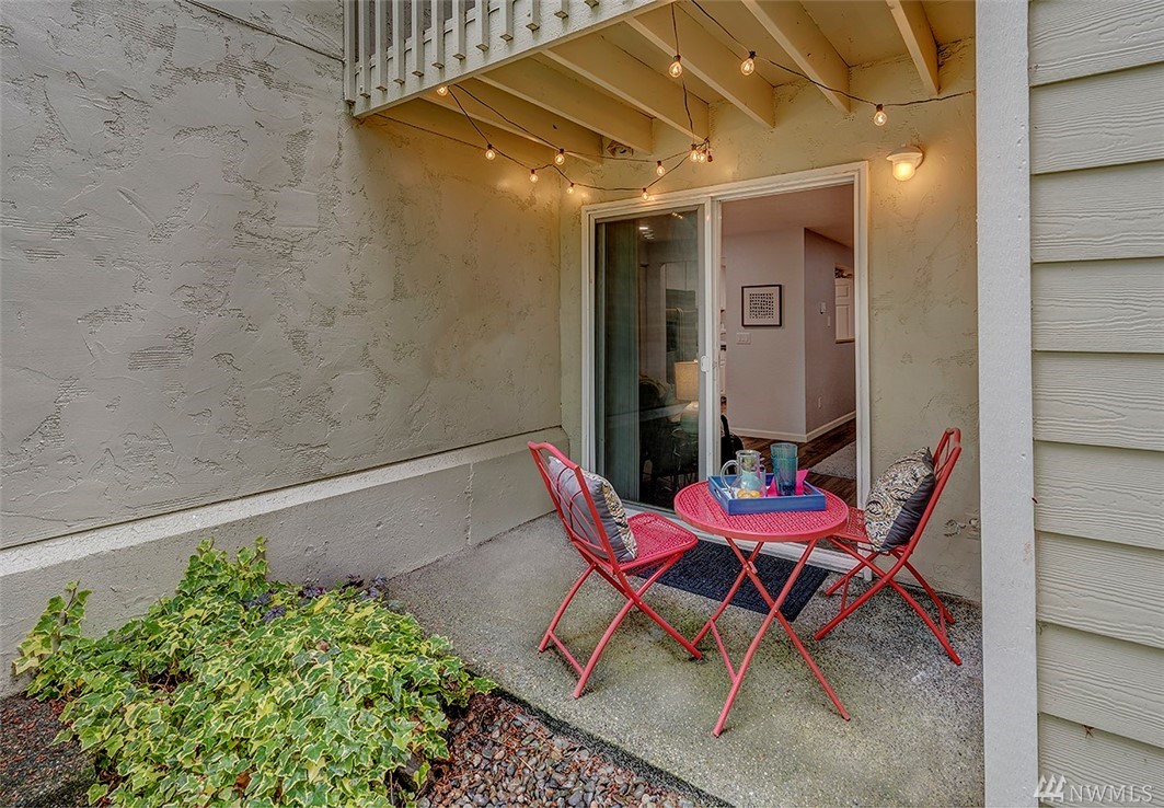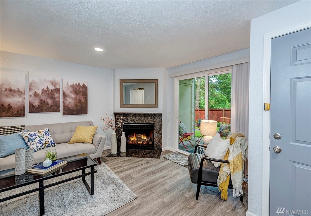Welcome to the Redwoods! Come and see this condo in a prime Redmond location. This ground floor, 1 bedroom, 1 bathroom condo is steps away from Bella Bottega shopping center and downtown Redmond. Enjoy the open living space, featuring a cozy wood burning fireplace, and a private patio with storage. Updates and upgrades abound including luxury vinyl plank flooring in entry, kitchen, living & dining. Unit also features 1 covered parking space & ample guest parking. NO Rental Cap.