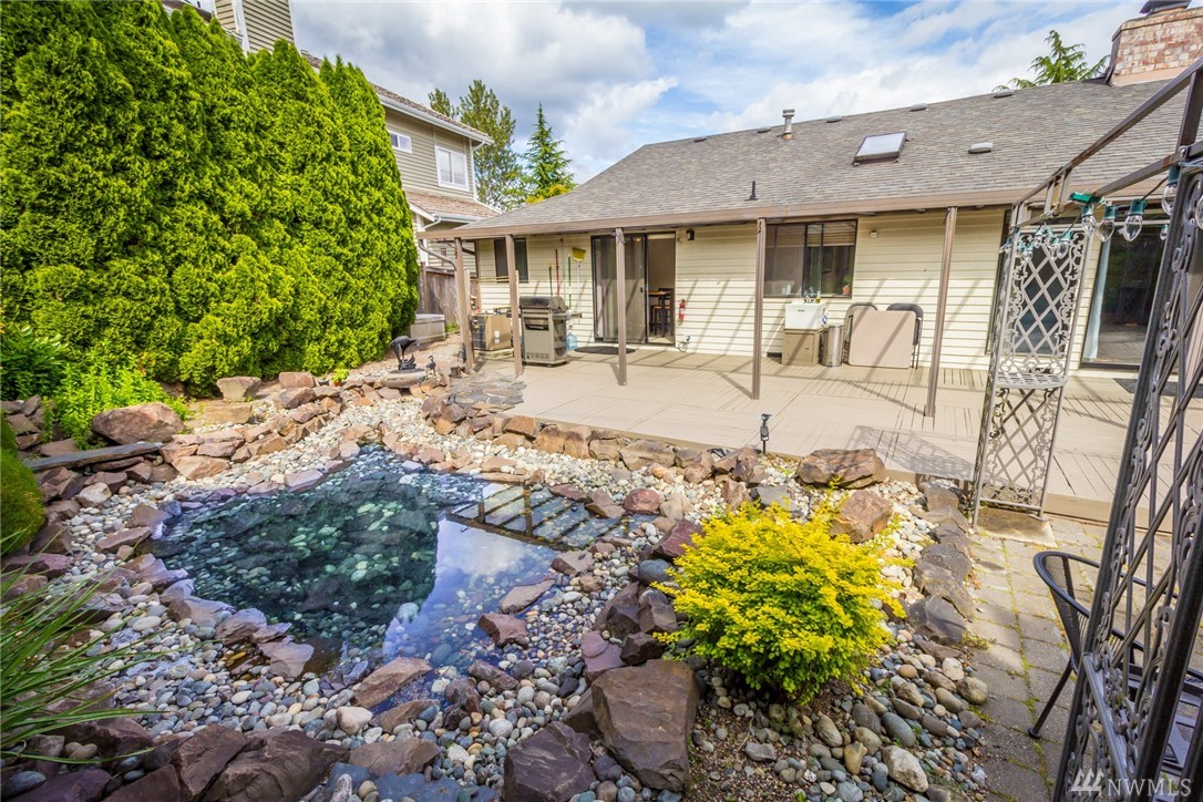 Highly desirable Issaquah schools! Beautifully maintained 3 beds, 2.5 baths large one story home w/ mountain views. Hardwood entry, vaulted ceiling, huge bright front window, open formal spaces. Large master w/ master bath & 2 large bedrooms. Professionally landscaped w/ huge deck & serene pond. Corner lot, 2 car garage w/ lots storage & RV parking with gate. Walking distance to Lake Boren Park. Mins drive to shopping & library. Don't miss this beautiful home! 3D walk through available.