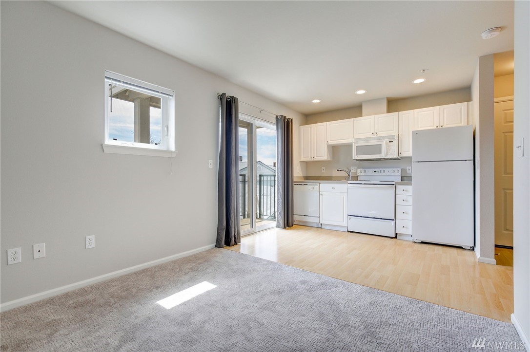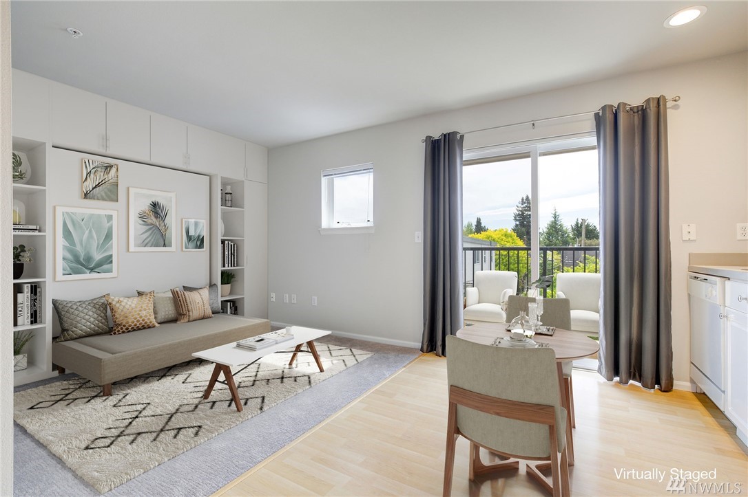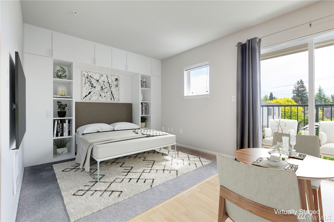 Light filled studio in the heart of Green Lake's Tangletown community. Open layout with a full bath & Sunny balcony. New carpets and fresh paint. In unit washer/dryer. Secure building w/ designated parking spot, elevator & storage unit. Just blocks from Green Lake. WalkScore 79; BikeScore 79; Pet friendly. No rental cap! Near UW & SLU. Quick to Downtown. A perfect Pied-Ã -terre or Maybe a Home Office. Virtual staging.