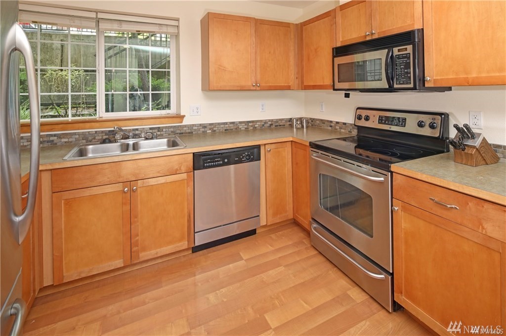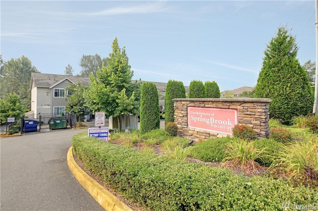 Commuters delight! close to 405, I5 and 167. MINUTES away from downtown Seattle, Bellevue and the airport. Prime location. This beautiful condo offers private greenery views, 2 SPACIOUS bedrooms, 2 full bathrooms, luxurious maple cabinets, a reserved covered parking space and your very own washer and dryer in unit. Stainless steel appliances compliment the kitchen along with the open dining area that flows to a warm and cozy living area with a beautiful fireplace insert. A home worth living in.