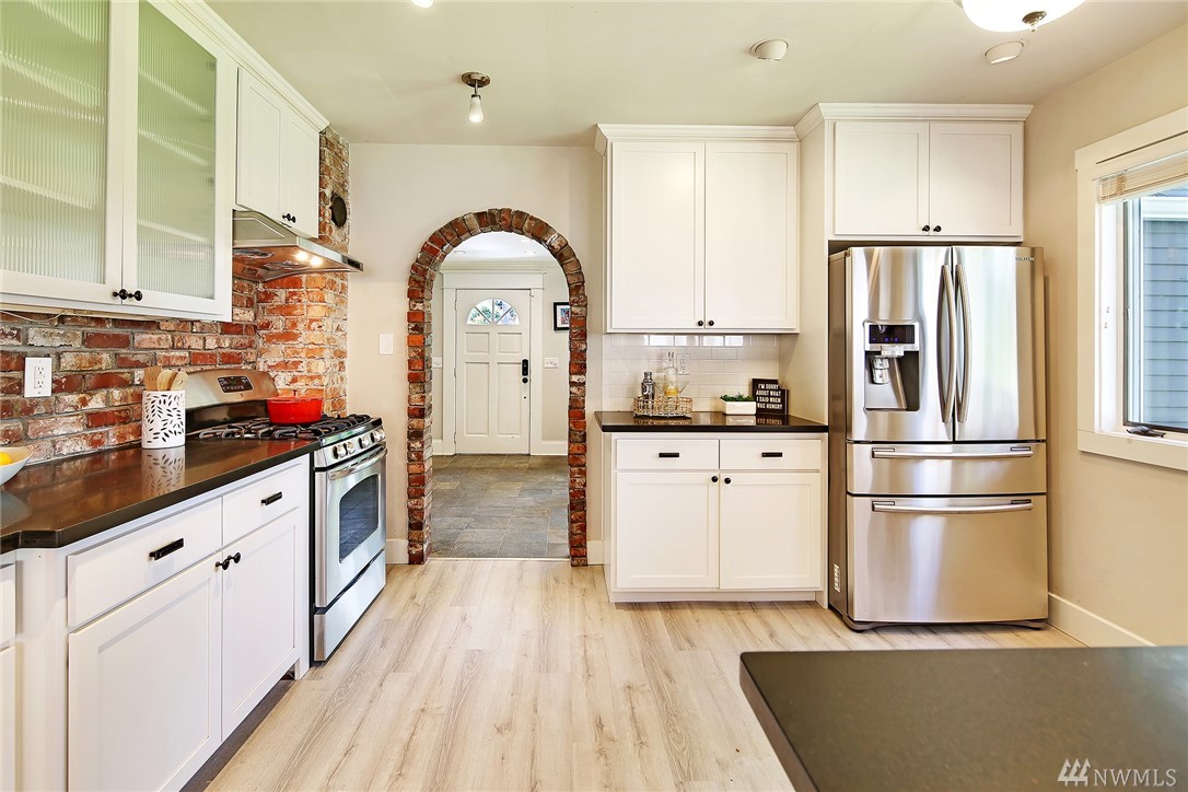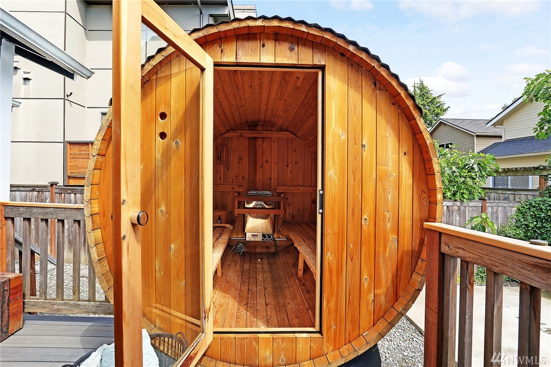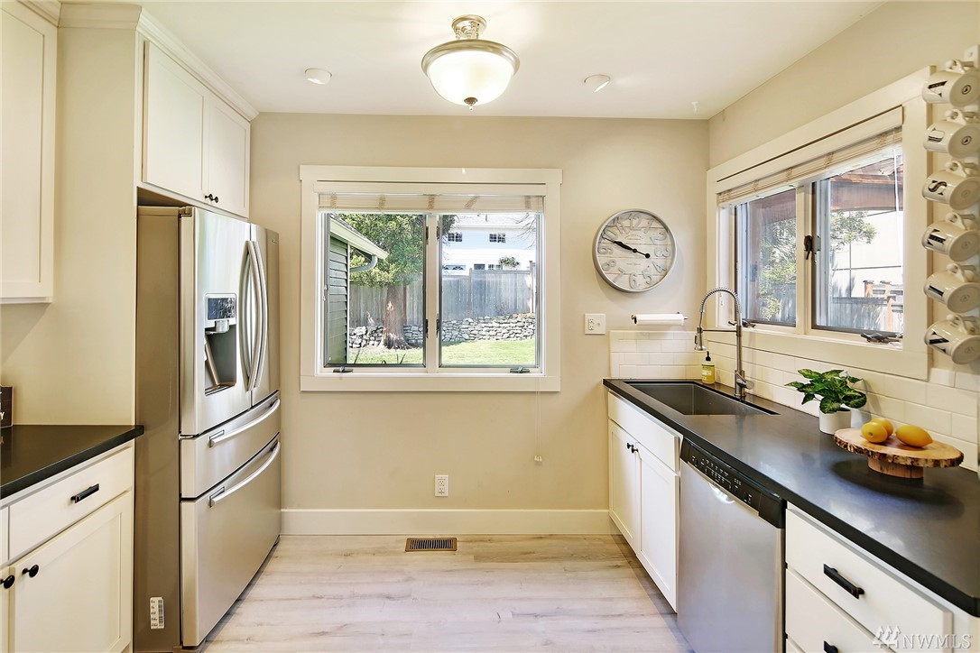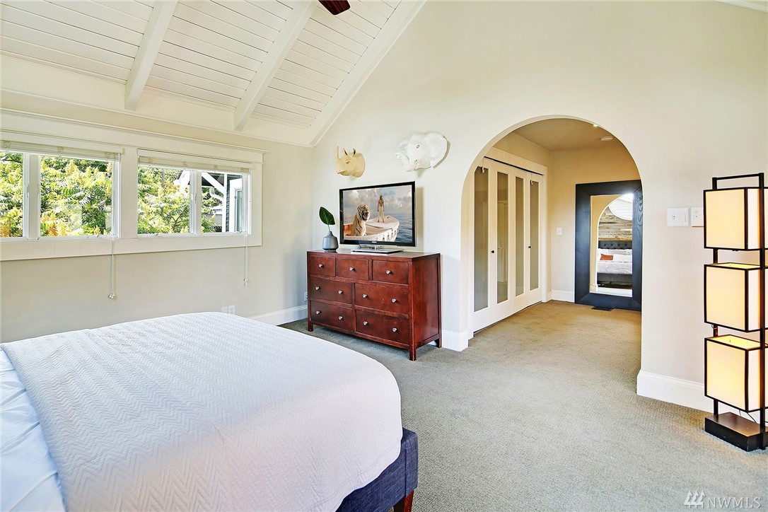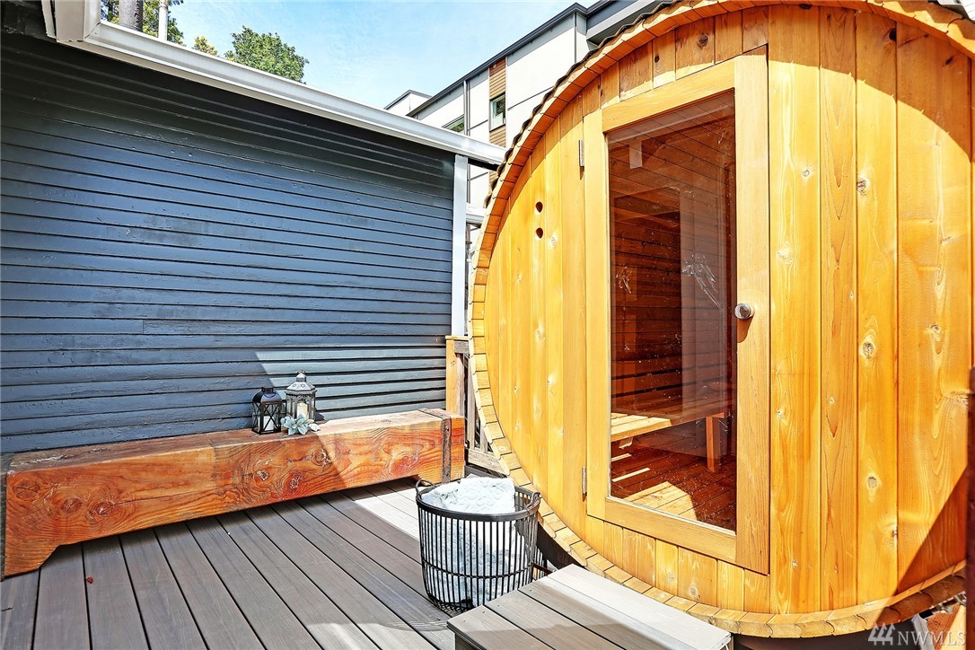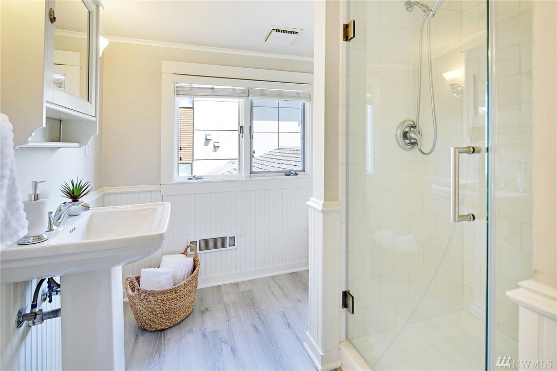 Covered front porch welcomes you to light filled old world Craftsman charm. Thoughtfully remodeled throughout with style and modern conveniences; marble, slab counters, stainless steel appliances. Expansive main floor master retreat with vaulted ceiling and french doors to deck and 4 person barrel sauna. Large level sunny corner lot with fenced yard. Off-street parking for 3 cars. Easy stroll to shops & Lk Wa. Seller provided pre-inspection and sewer scope available as a convenience to buyer.