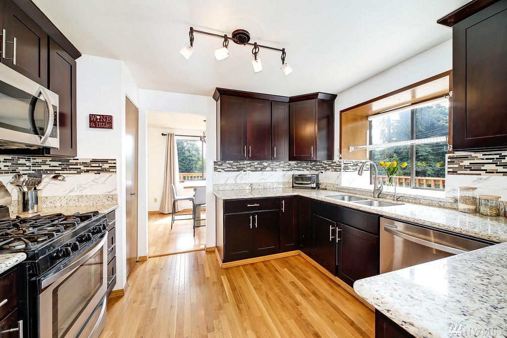 Amazing West Hill Home! Corner lot with circular dirveway and plenty of space for additional parking. Two car garage, with work space. Vaulted ceilings, Updated Kitchen, Baths & Light Fixtures. 3 Bedrooms on main floor. Large Family Room + Office or additional Bedroom downstairs. Enjoy the wood burning stove, large deck and fully fenced back yard. Commuters Dream location!! Close to shopping, freeways, transit and Parks.