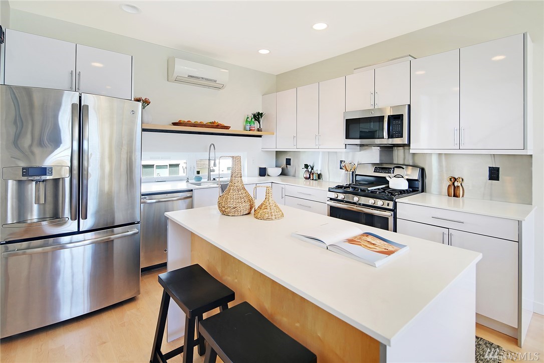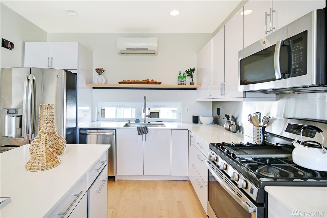 Light filled modern 4-star Built Green standalone Magnolia townhome. Tall ceilings, large windows, freshly painted white walls, refinished hardwoods and new carpet offer a clean and spacious feeling. Open kitchen w/ dining space, pantry, SS appliances & Quartz countertops. Cozy LR w/ gas fireplace. Stay warm in the winter & cool in the summer w/ mini splits on each level. Enjoy views from the rooftop deck with gas and water hookups! Off street parking with covered carport.