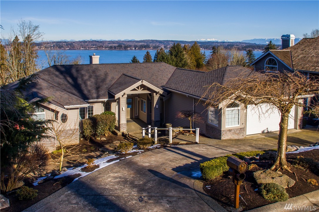 Semiahmoo home with sweeping harbor/mtn vistas & access to huge decks/patios from most every room. Fantastic, 3400 sf open plan with a long list of special, luxe features. Soaring ceilings, expansive glass, hardwood, extensive built-ins, sauna, security, surround sound, central vac, new 50-yr roof, A/C, prof gardens & more. Main floor living & master, office with FP, formal dining & b’fast nook, 2 private lower level guest suites & large fam room. Enjoy golf, marina & other resort amenities!