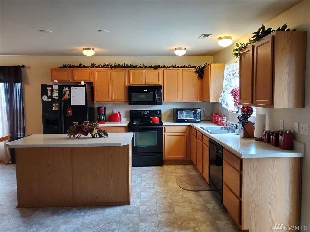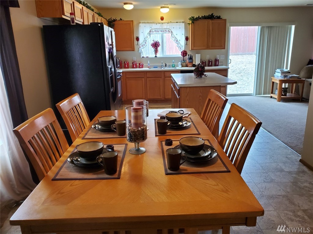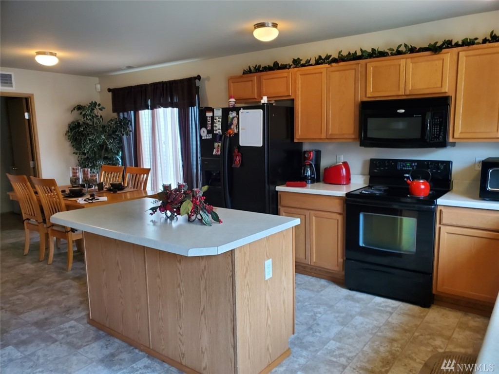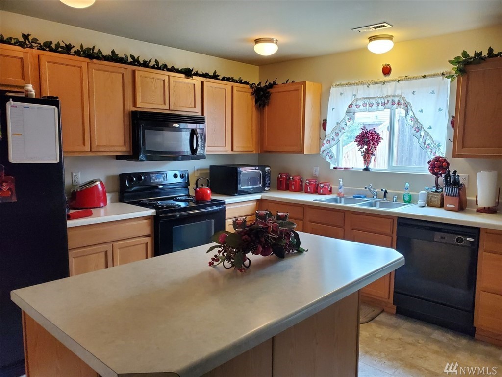Lovely, spotless home with a great floor plan! Open concept main floor with cozy fireplace and walk out to maintenance free, fenced yard. Huge MBR with bath ensuite. Bedroom/den on main floor. Brand new sod in front yard and seller is refreshing exterior trim paint. All appliances included. Move in and enjoy this great neighborhood with park and close to all Yelm amenities. Easy access to JBLM. Seller contributed $7,000 toward buyer's closing costs.