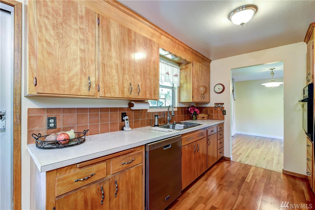 Solid very well maintained one level home in popular Seaview Neighborhood. Oversized beautifully landscaped corner lot. Spacious living area with oversized windows and gleaming hardwood floors. Wood burning fireplace in living room with gas fireplace insert in Family room. Sliders off kitchen area to private patio and back yard. 3/4 updated bath features full sized walk in shower. Many updates including new electrical box,