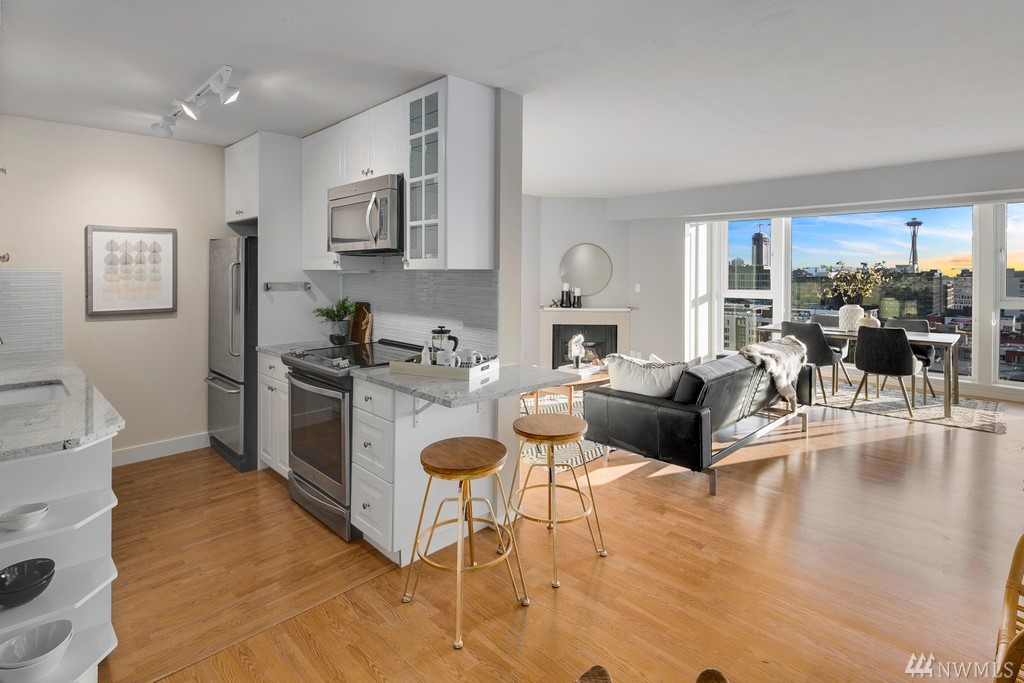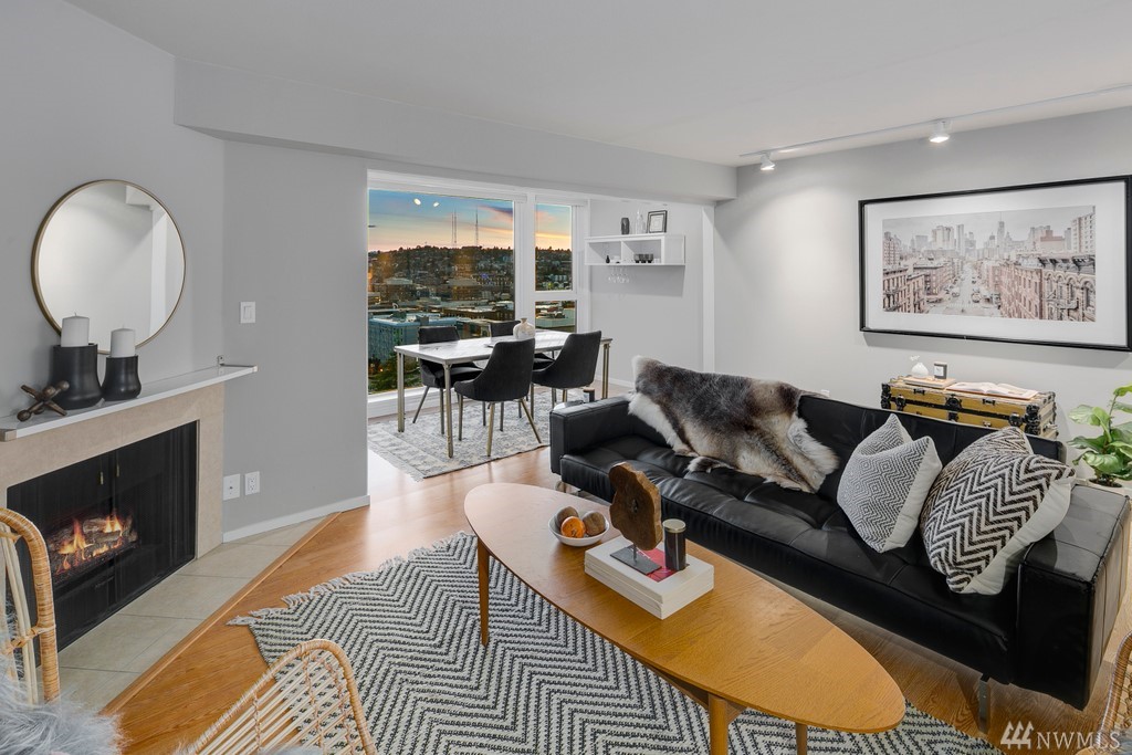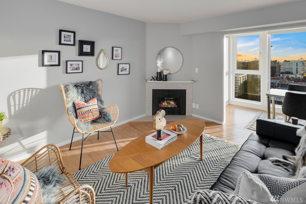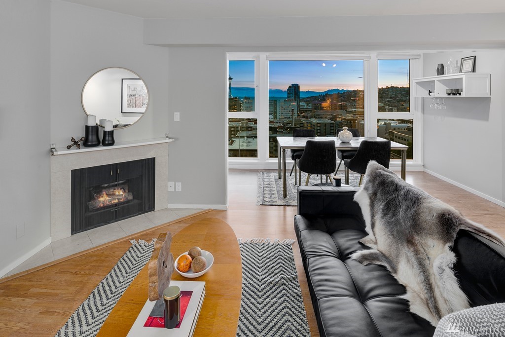 Welcome home to the epicenter of it all! Perfectly situated between SLU & Capitol Hill, this incredible view unit features dramatic floor-to-ceiling windows with unobstructed views of the Space Needle, Olympics, DT & Lake Union. This spacious floor plan offers an oversized 1 bedroom with ample closet space, 1 bath, updated kitchen, office space, fireplace & rare, in-unit laundry. Also included: 1 parking, 1 storage unit & no rental cap. Perfect for investors or to make your own, urban sanctuary!