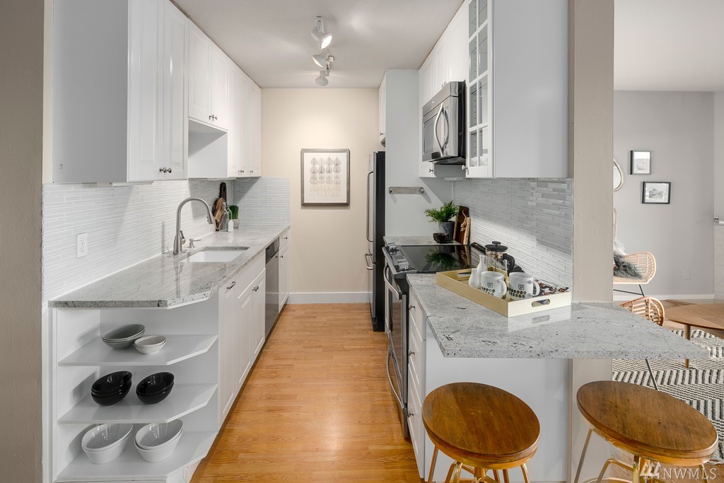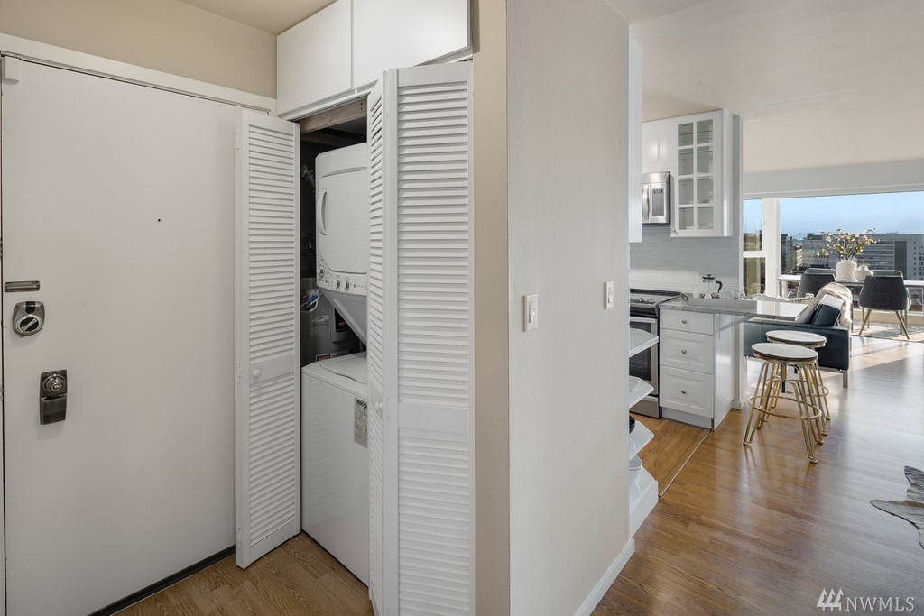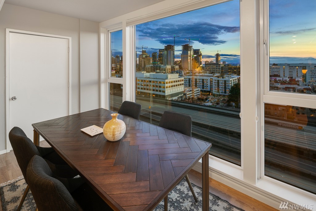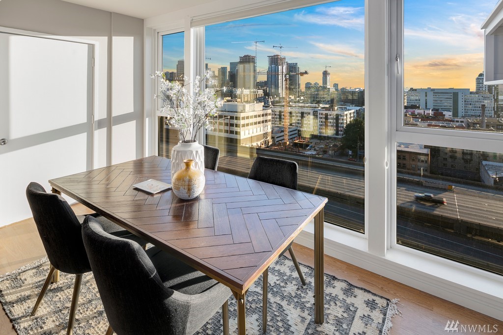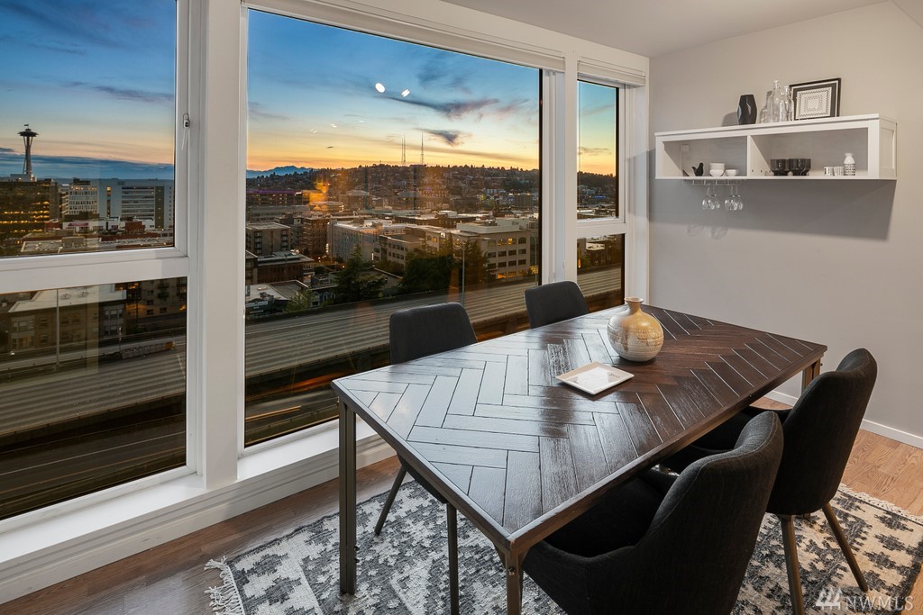 Welcome home to the epicenter of it all! Perfectly situated between SLU & Capitol Hill, this incredible view unit features dramatic floor-to-ceiling windows with unobstructed views of the Space Needle, Olympics, DT & Lake Union. This spacious floor plan offers an oversized 1 bedroom with ample closet space, 1 bath, updated kitchen, office space, fireplace & rare, in-unit laundry. Also included: 1 parking, 1 storage unit & no rental cap. Perfect for investors or to make your own, urban sanctuary!