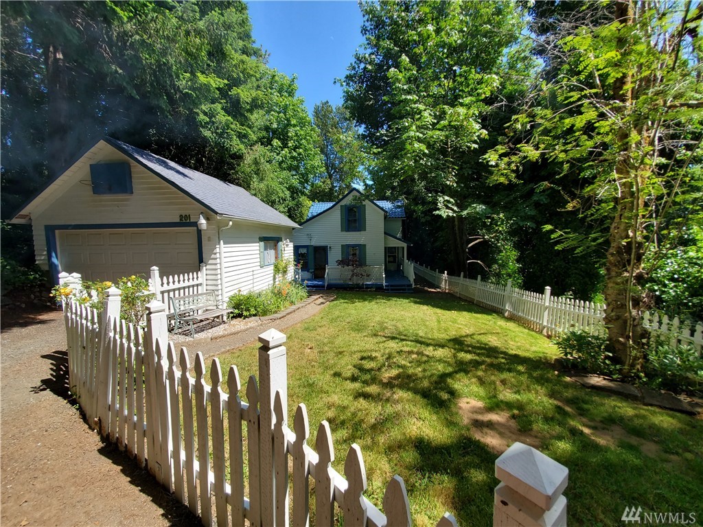 tucked away on a quiet tree lined street for a feeling of privacy. fenced yard, detached garage, mature