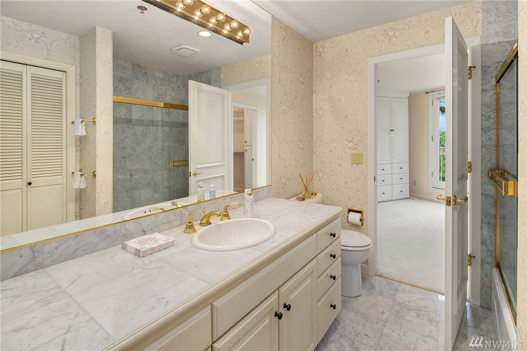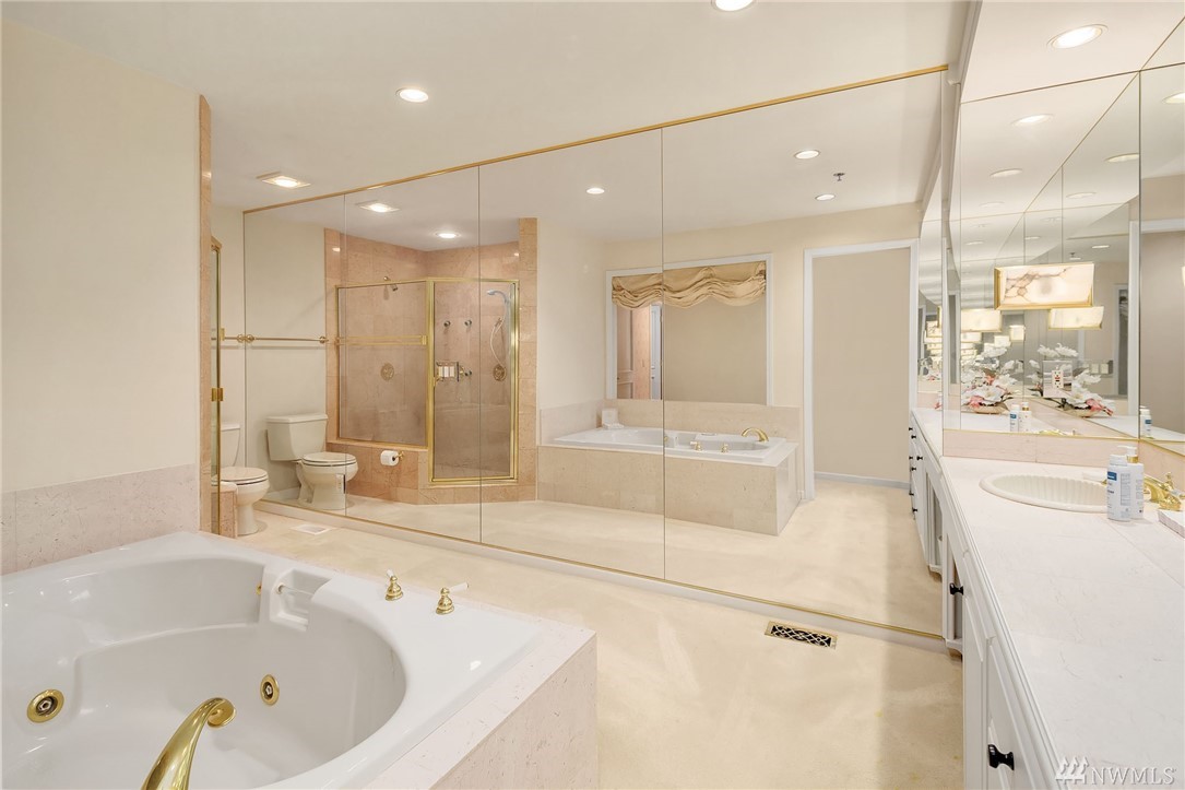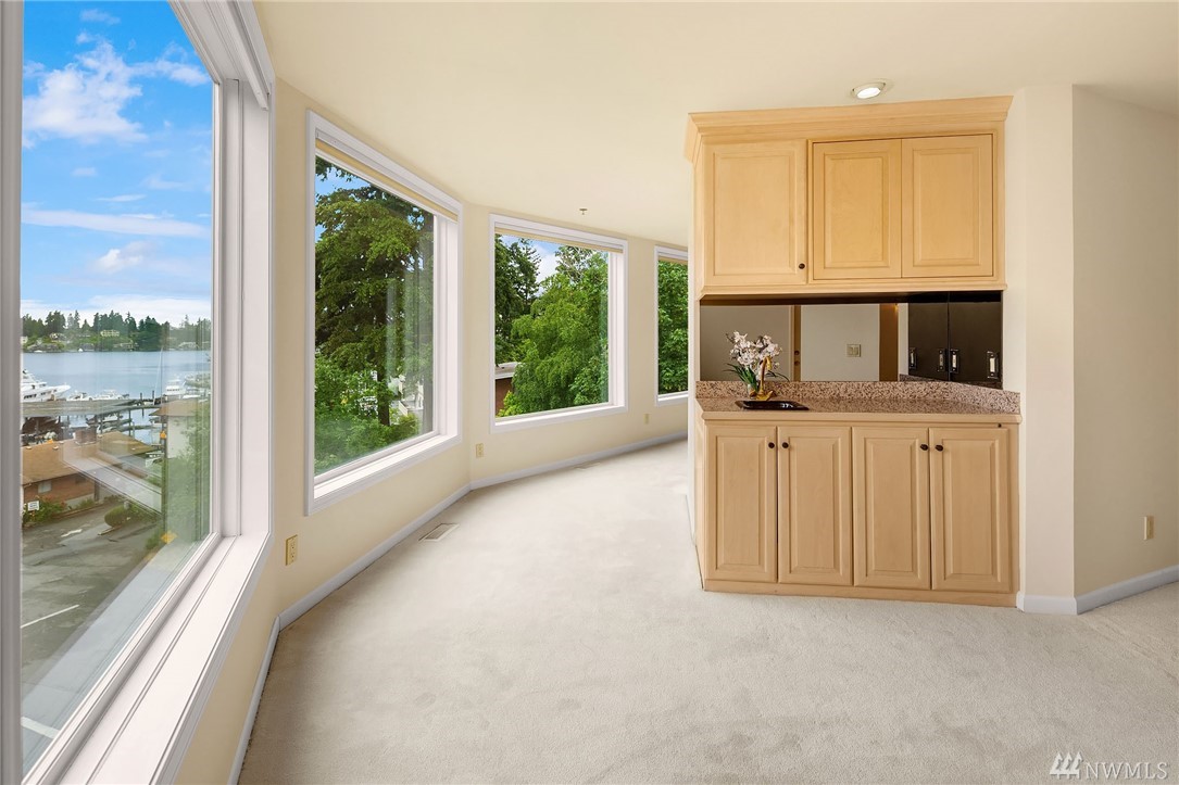 Penthouse condo overlooking Meydenbauer bay, yacht club & Seattle Skyline. The home is accessed by a direct elevator from a secure lobby & garage for added security, opening to a large entry w/ privacy door to the home. The large living area is surrounded by huge windows, flooded w/natural light & gorgeous views. 2,142 sqft w/ a gracious floor plan, large master suite, dining space, additional full bedroom & bath & large covered patio. Easy walk to the shops & restaurants of old town Bellevue.