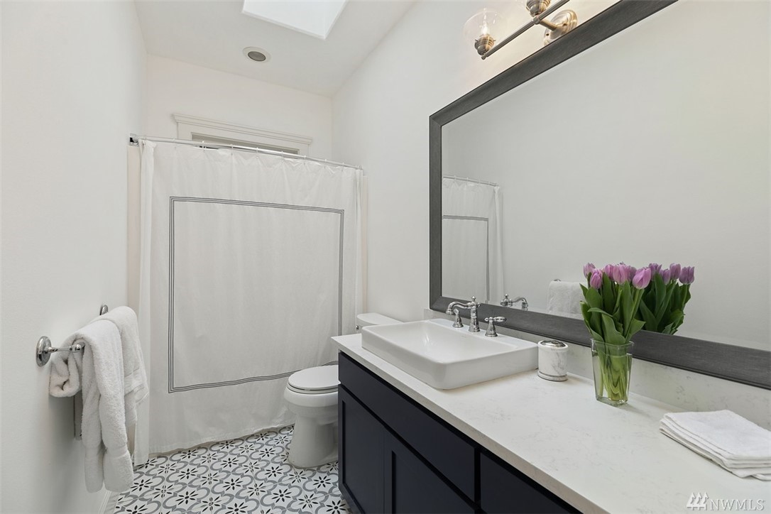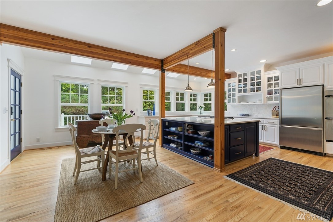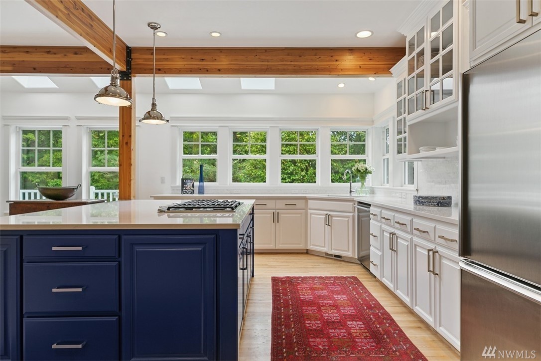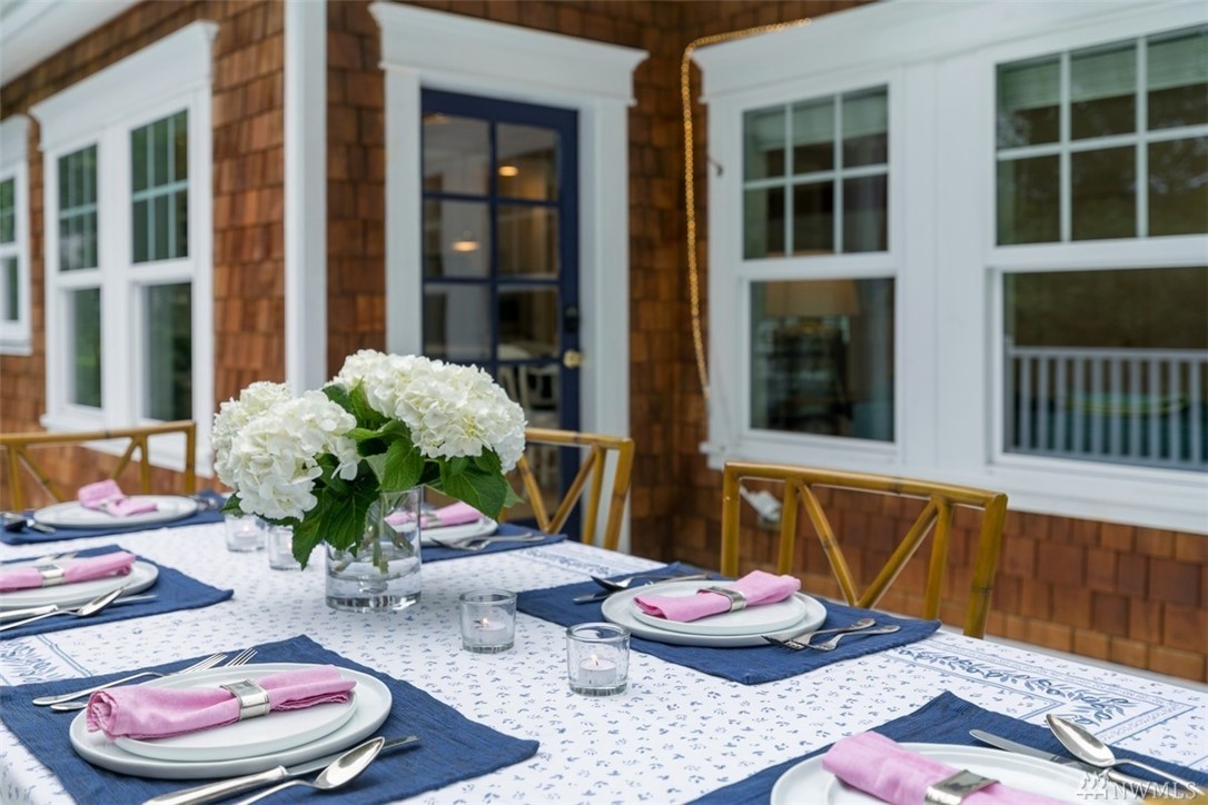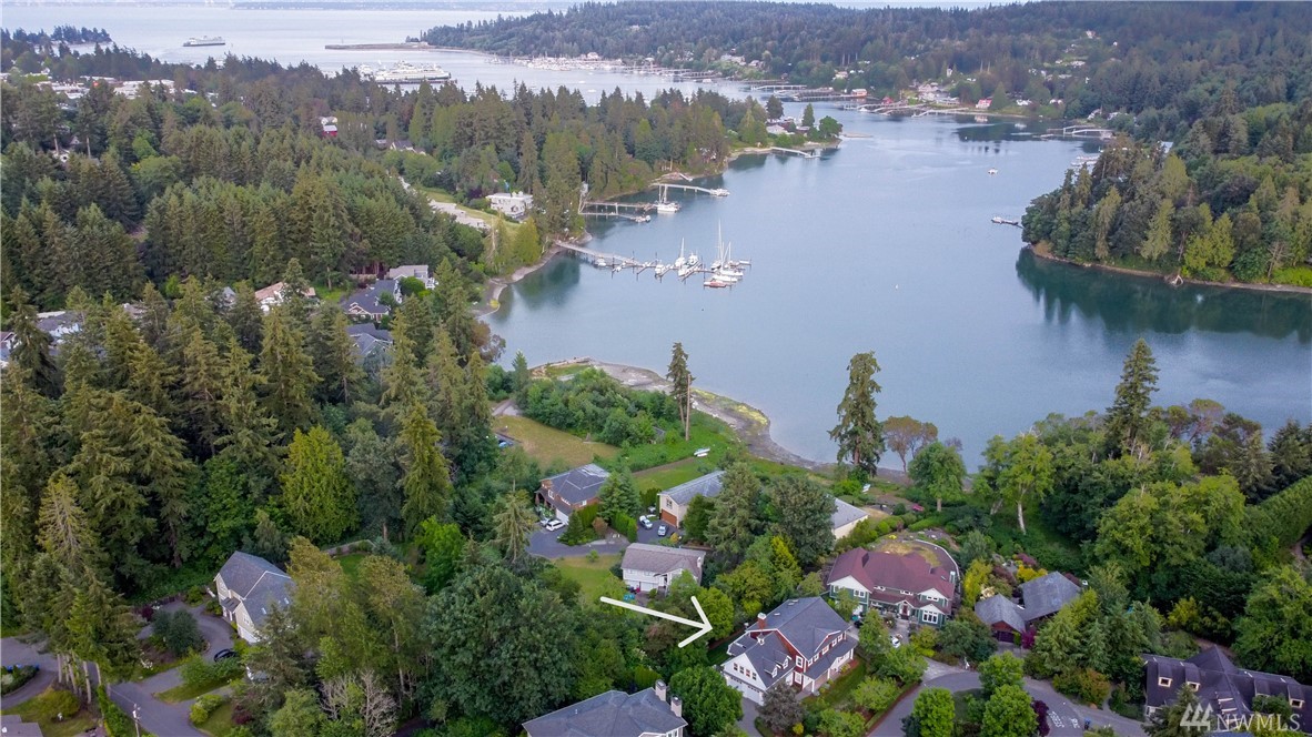 Quintessential Bainbridge home in coveted Midden Point feels like a classy European getaway. Perfect location, end of cul de sac, close to community waterfront. $100K in recent upgrades include stunning new kitchen, hardwood extended upstairs, wool carpet in bedrooms, striking bathroom remodels and a guest suite w wet bar and full bath. Watch the shore birds, launch a kayak, meander on the waterfront trails to town. A mile from Winslow amenities and ferry. Elegance and charm w storybook garden!