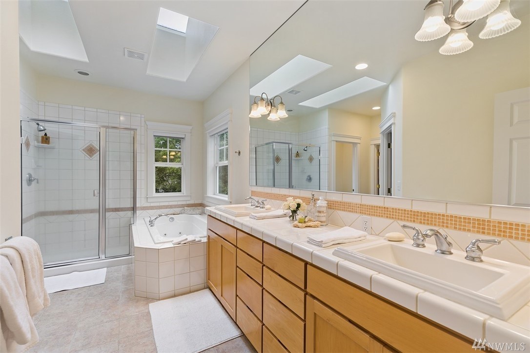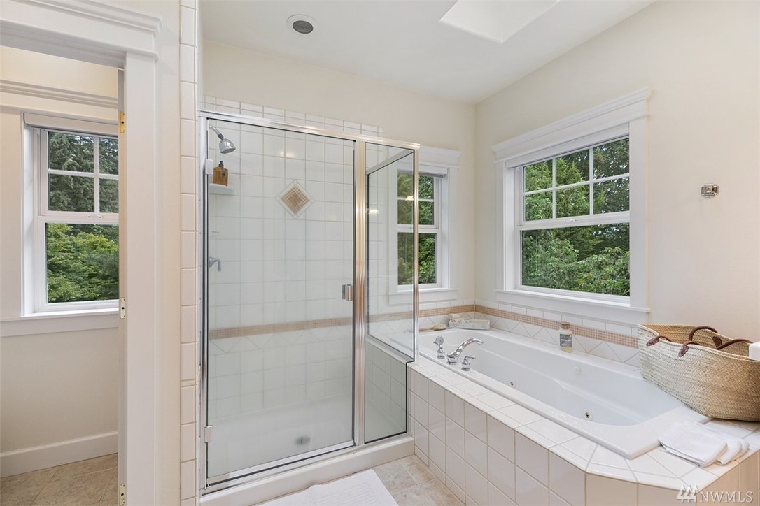 Ceramic Tile Hardwood Bath Off Primary Built-In Vacuum Double Pane/Storm Window Dining Room French Doors Jetted Tub Security System Skylight(s) Water Heater
