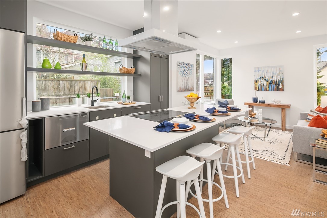 New community in the ultra-hip Stone Way neighborhood by Award Winning gprojects & Workshop AD. Architecturally driven design w/ cork floors & exceptional finish work. Thoughtfully placed skylights flood the interior core w/ natural light. Custom kitchens w/ quartz countertops, induction burners, & bespoke cabinets. Ductless minisplits provide energy efficient heating & cooling. Enjoy views of canal, Downtown Seattle & Space Needle. A short stroll to Burke-Gilman trail & Gasworks park.