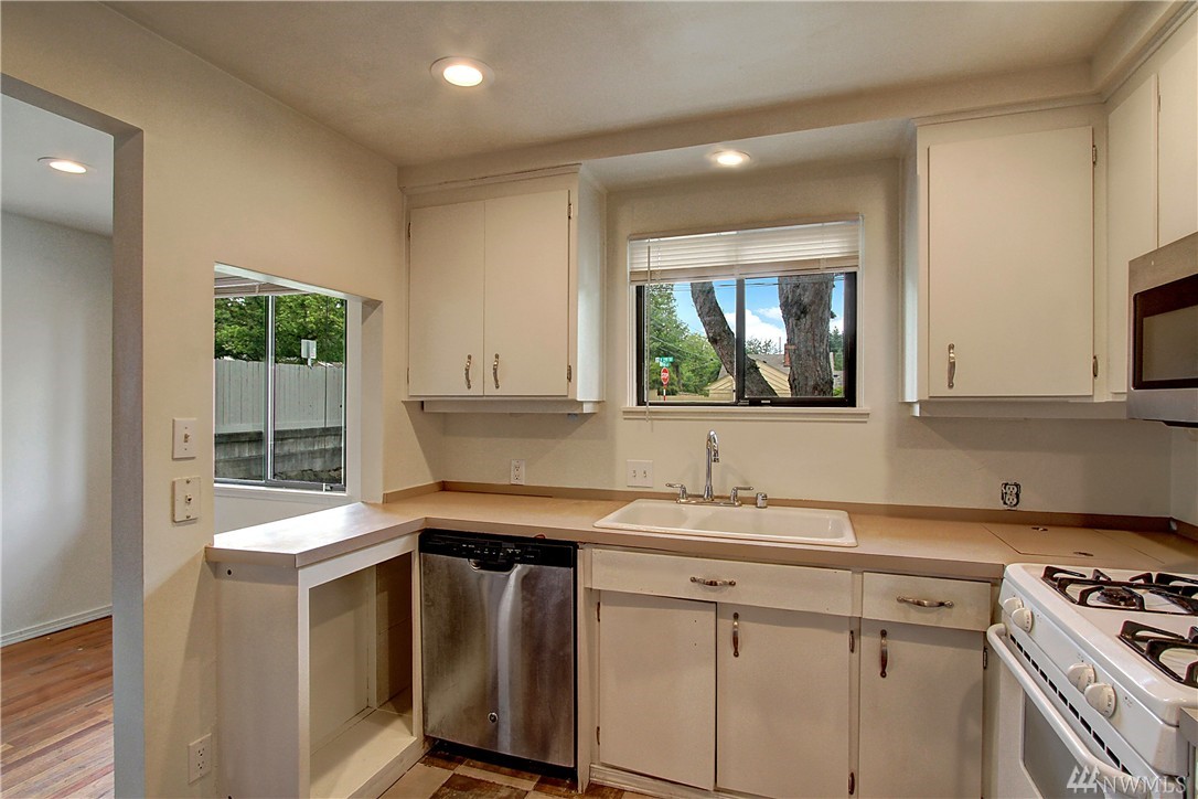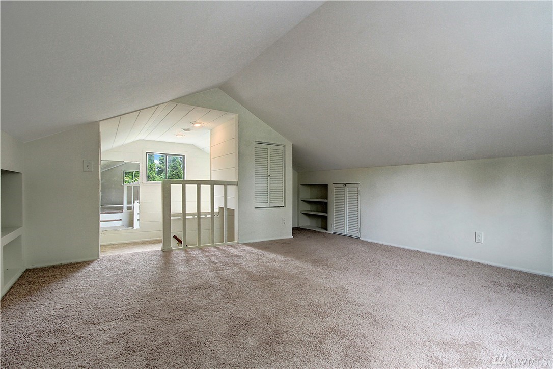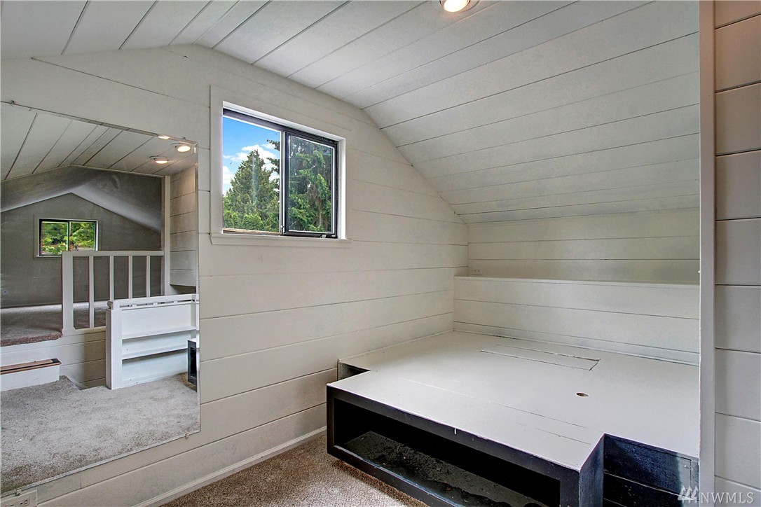 Bungalow style home w/ great location in Shoreline - Echo Lake. Features include hardwood floors, fireplace with brick inlay, brand new carpet & paint, spacious kitchen & dining area, two nice sized bedrooms on main level + office/rec room & a loft style master suite. Detached shop, tool shed and attached garage. Large backyard with plenty of garden space. Investment opp. w/ endless possibilities to add your own touches. Minutes to new light rail station/transit, I-5 & shopping. 1,072 sq/ft.