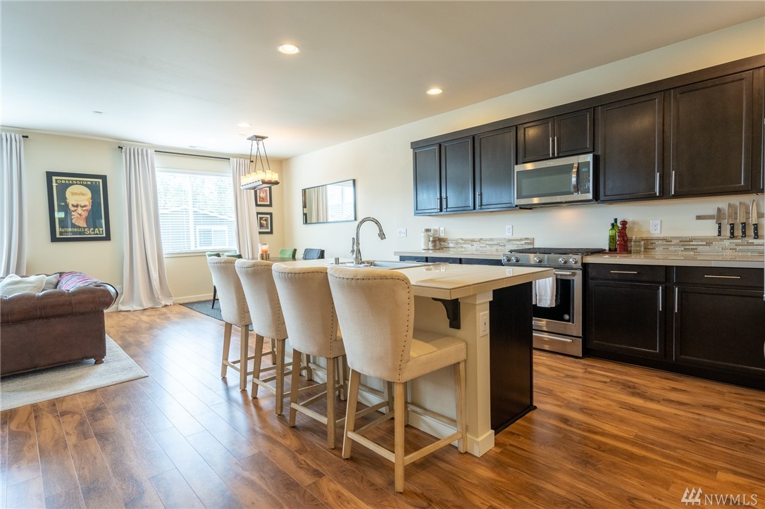 The Glacier: Hard-to-find floor plan offers guest suite, 3/4 bath on main. Gleaming floors, artful details, rich finishes compliment the impeccable living spaces. Well-equipped island kitchen features high-end applcs (stay), opens to family rm. Upper level master en-suite, addtl bdrms, laundry rm. Covered deck, fenced, landscaped yard. Over-sized garage, shop. Bridges: Fabulous master planned community with parks, miles of trails. Minutes to I-5, Hwys 167, 18, Kent Station, amenities galore!