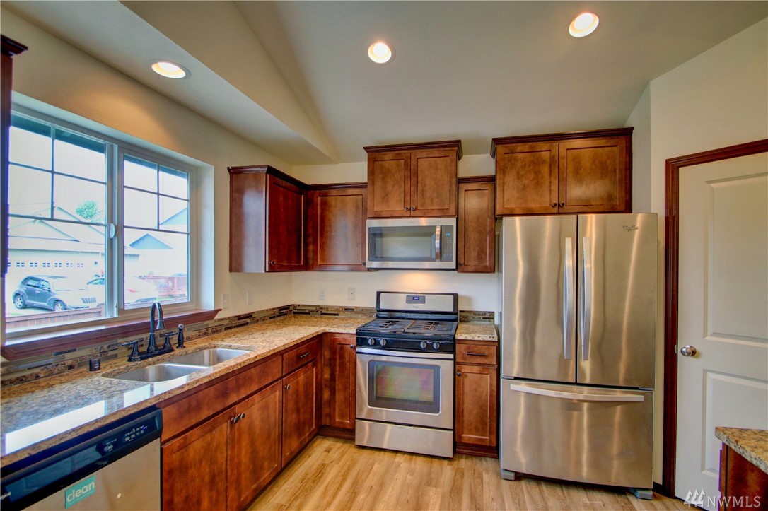 Inviting & Better than new RAMBLER (only 3 years old) features: Granite Counters, Stainless Steel Appliances, open floor plan w/gas fireplace, fully fenced yard. Beautiful territorial views from master bedroom & Greatroom windows. A/C for those warm summer months. All kitchen appliances + washer & dryer. TV above Gas Fireplace stays!! WOW.....the tree lined streets, sidewalks & well kept homes makes this neighborhood so appealing Attached 2 car garage. 10,000 PRICE ADJUSTMENT!!!
