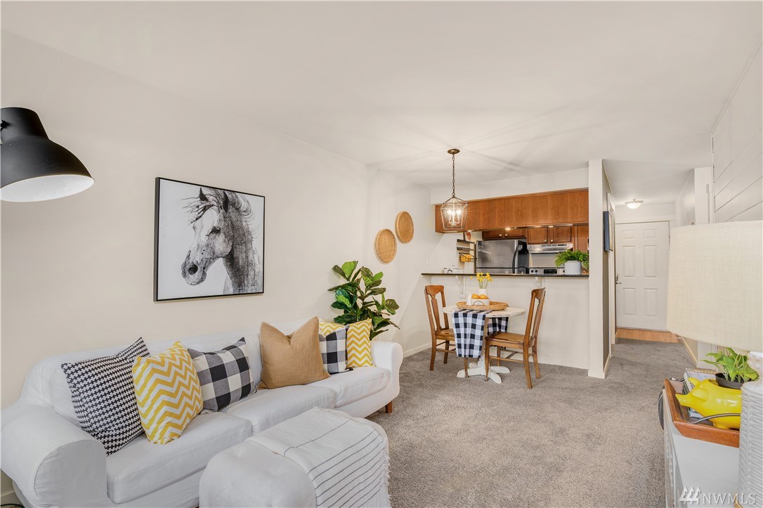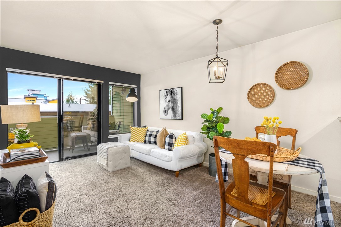 Amazing value, blocks from vibrant Green Lake! Just in time for Summer- enjoy living within 5 mins of PCC, restaurants, Green Lake Park, loop trail, boathouse, pitch n putt & more. This 1 bed unit lives so much larger than expected w/ sunny southern exposure, charming shiplap, ss appliances, granite countertops, and w/d in unit. Private extra spacious covered patio adds to living footprint. Invest now with future light rail coming 2021!! Secure designated parking & in-unit storage. FHA approved.