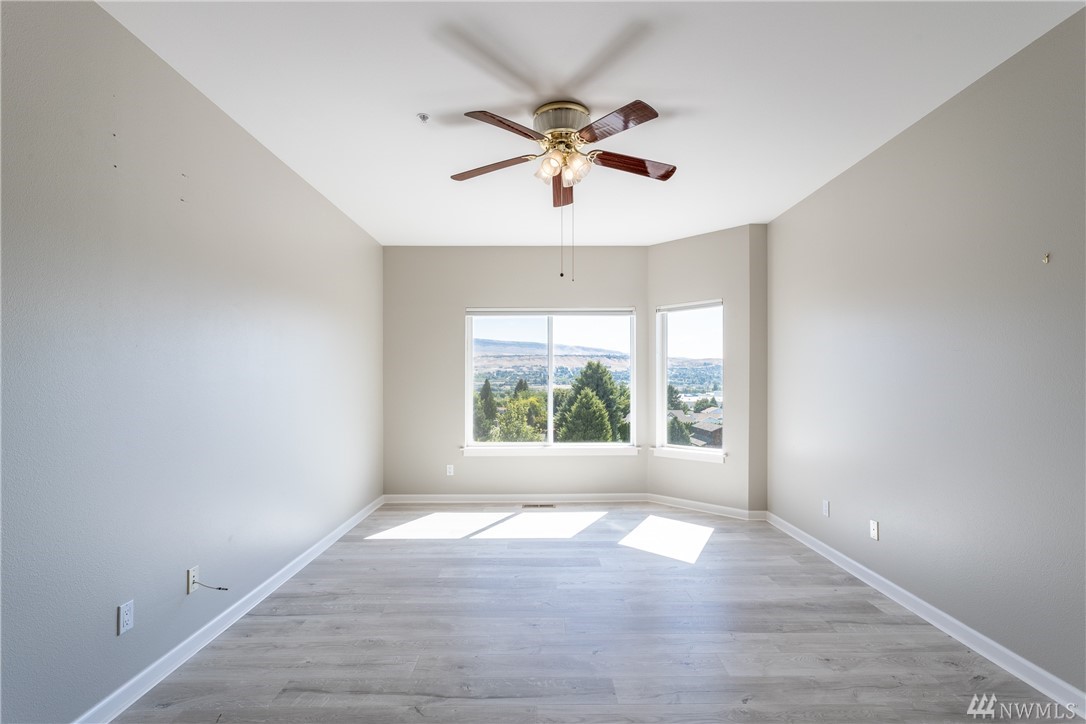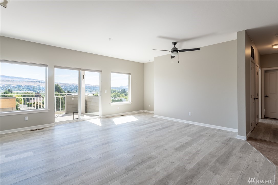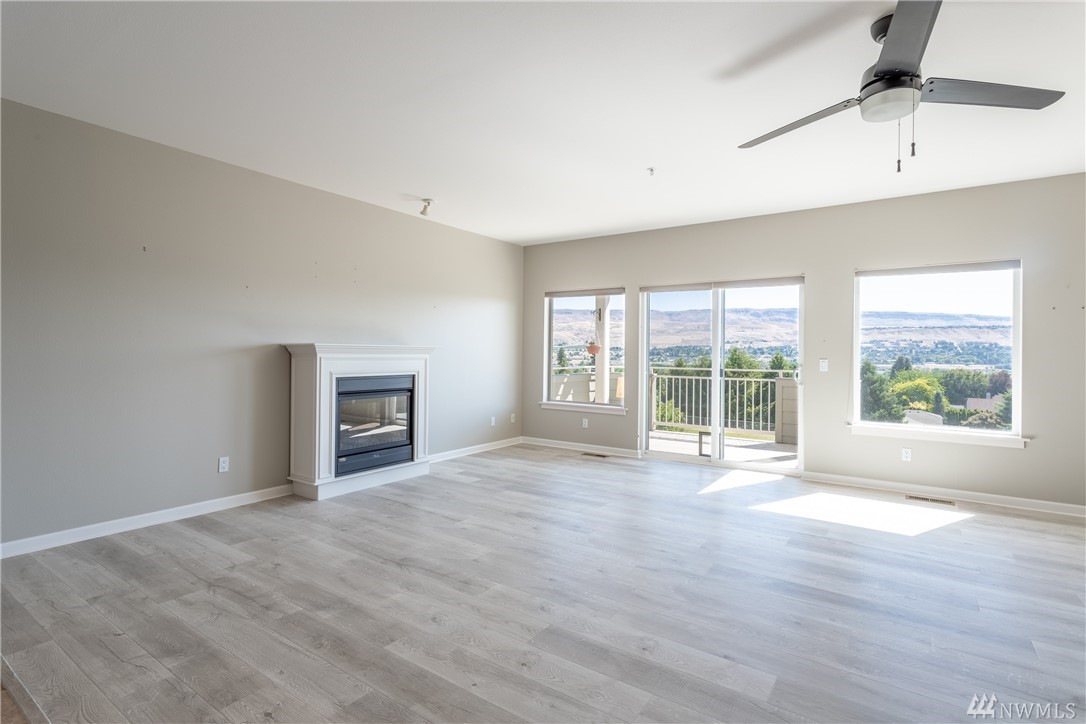 Beautiful two bed, two bath single level home. Cherry Ln Condo. 55+ development. City, river and mountain views. Private balcony. Features bright clean atmosphere. New wood plank floors, newer paint and window coverings, electric fireplace and spacious deck. Heated garage is extra deep for extra storage or a second vehicle. Additional 6x12 storage room is located just outside the unit. Elevator access or stairs. Secure access. Shopping close by and walking path. Two pets allowed. Easy to see.