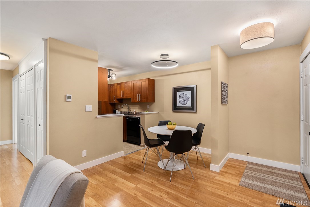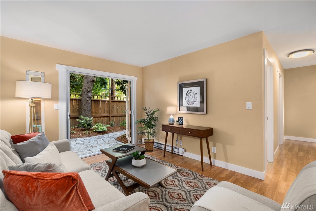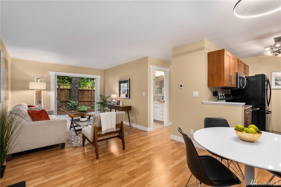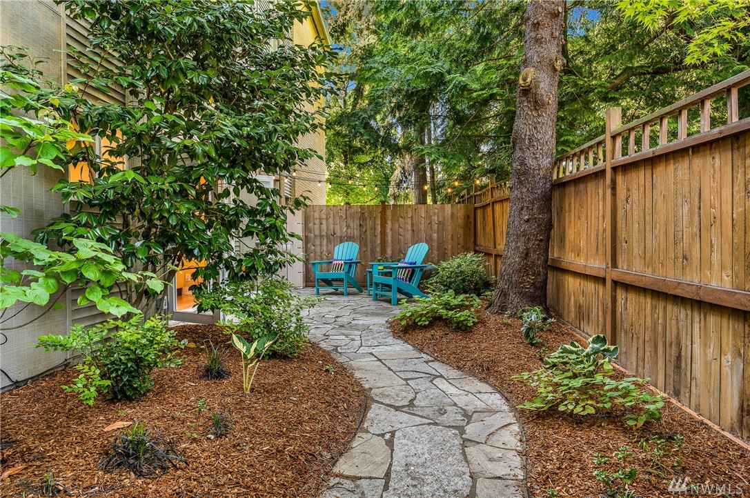 Move-in ready 2 bed/1 bath condo centered between Capitol Hill & Madison Valley. Open concept living extends out the french doors to your private courtyard. Slider screens installed to enjoy fresh air & indoor/outdoor feel. Updated kitchen & bathroom. Second bedroom perfect for working from home or flex space. Features: smart lighting, wifi thermostat, new washer/dryer. Convenient location near groceries, restaurants, coffee shops, transit and parks. Off street parking space & rentability.