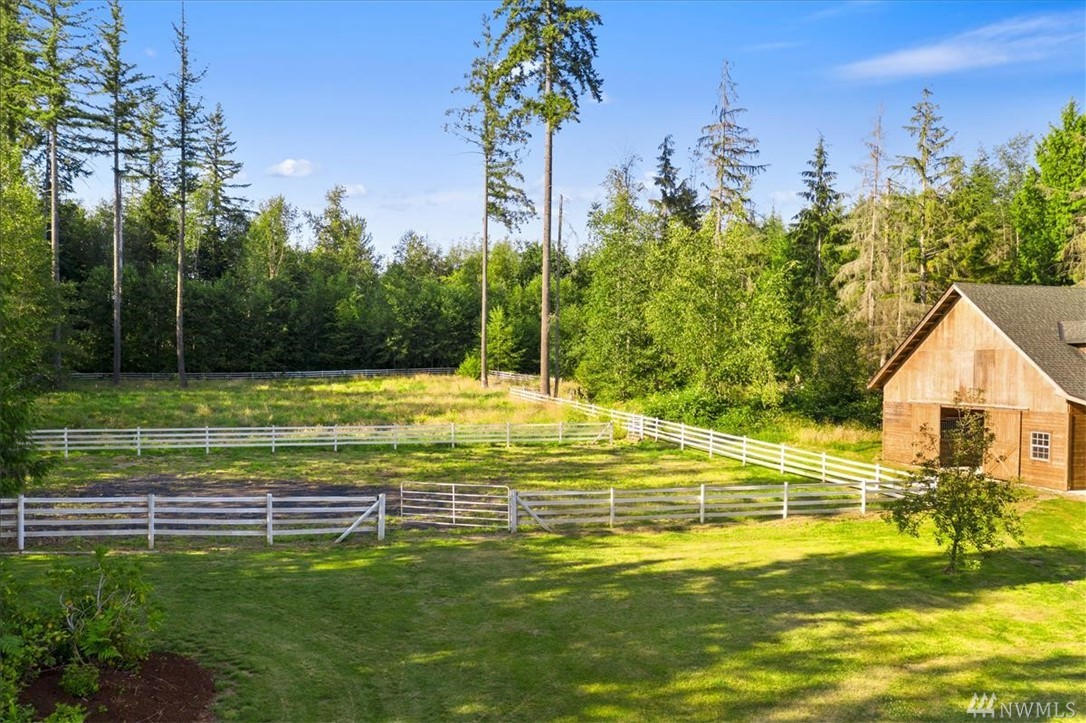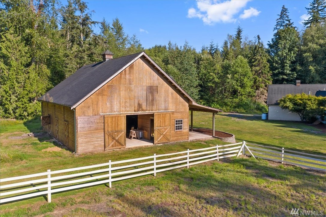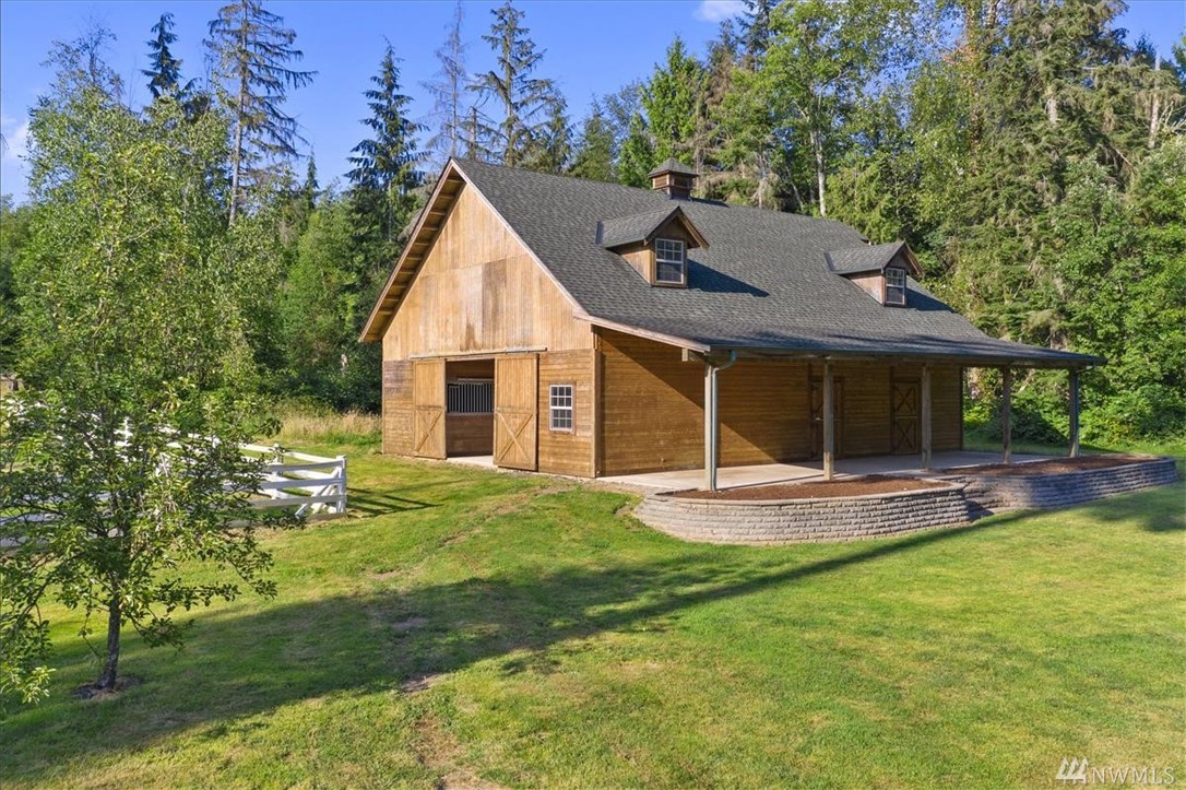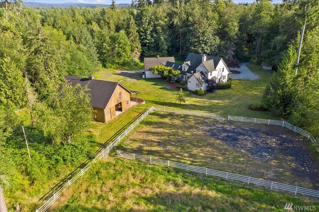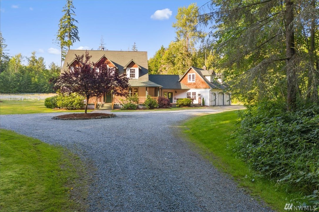 [EQUESTRIAN RETREAT] STUNNING 4.92 ACRE ESTATE + 36 X 48 WOOD WRAPPED BARN! Pasture, CRUMB RUBBER ARENA, horse stalls, & hay loft is awaiting the HORSE ENTHUSIAST. GREAT ROOM concept, MASTER ON MAIN w/luxurious 5 piece bath, OFFICE, TWO Story Ceilings in family room + RIVER ROCK FIREPLACE, FRENCH DOORS, CORIAN Counters, eating bar, built in nook, BREEZEWAY to BONUS ROOM or potential MIL over garage. 4 beds UP + JACK & JILL bath & ENDLESS storage/closet space. Circular drive + MATURE LANDSCAPE.