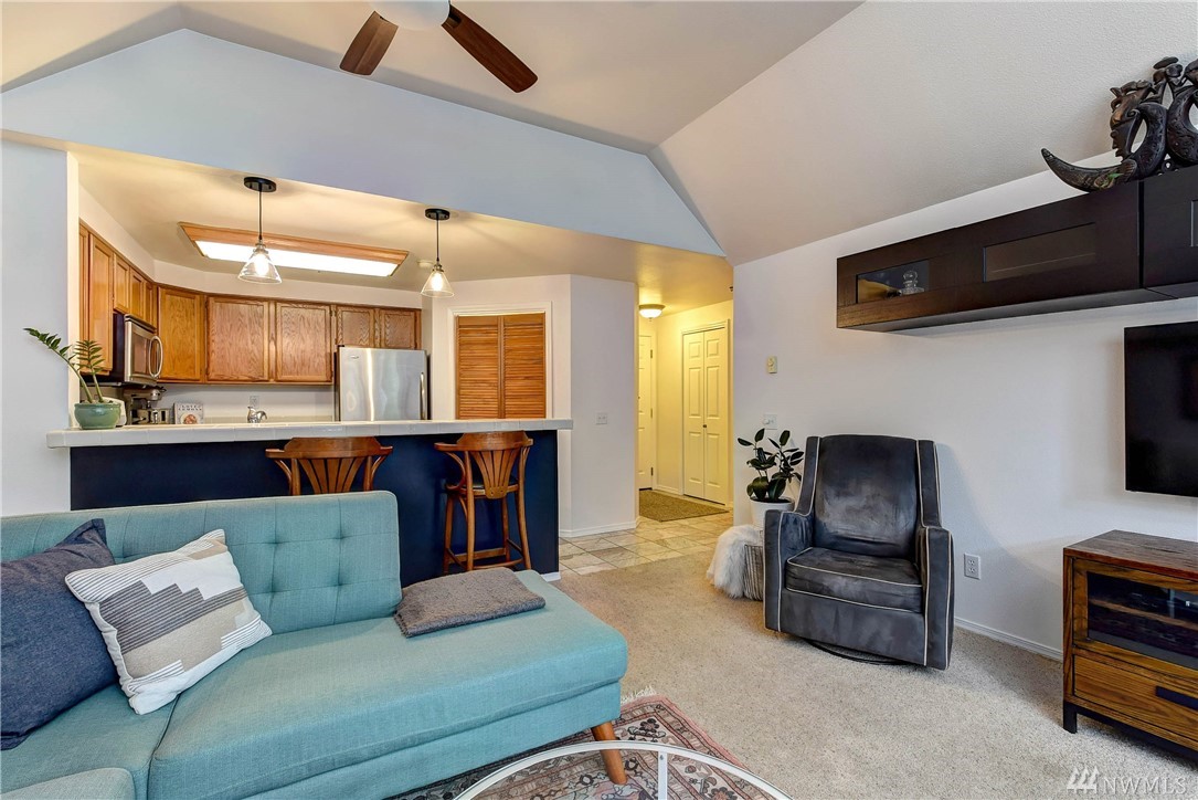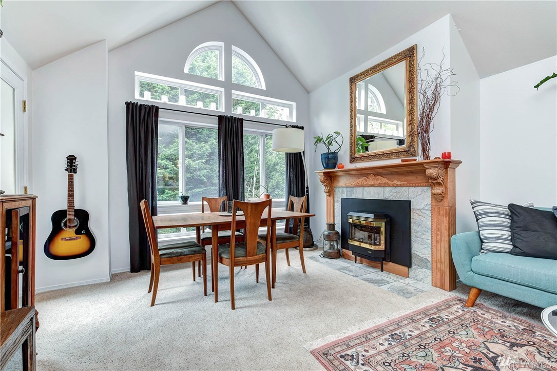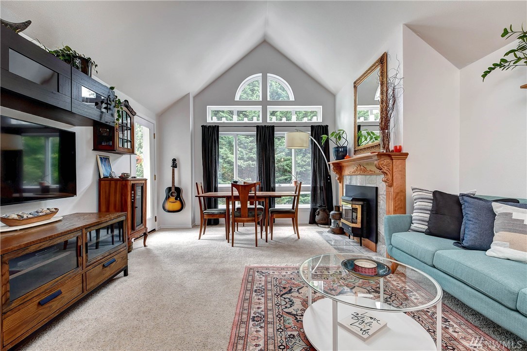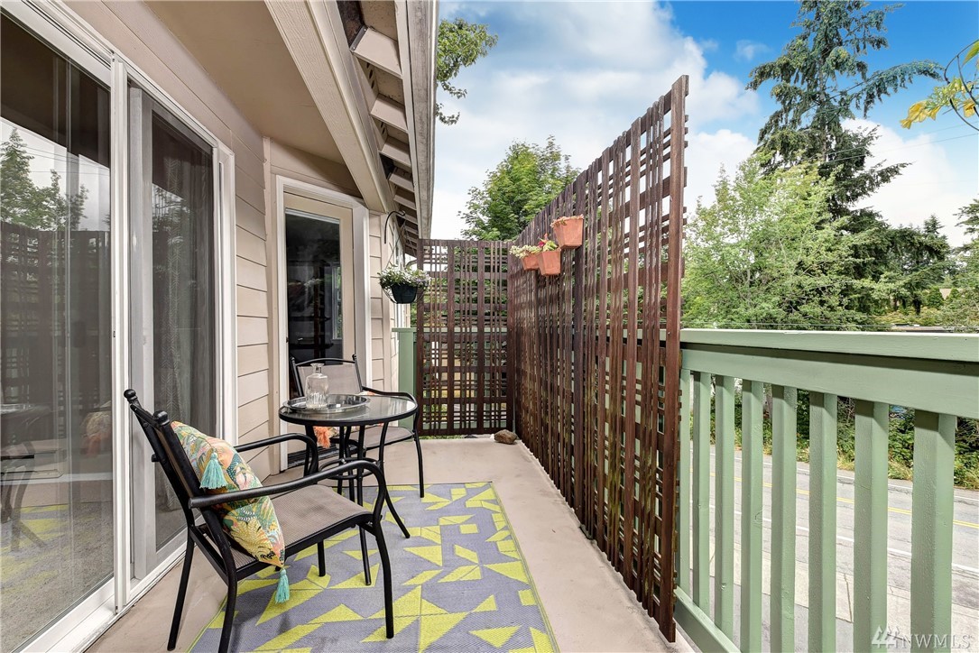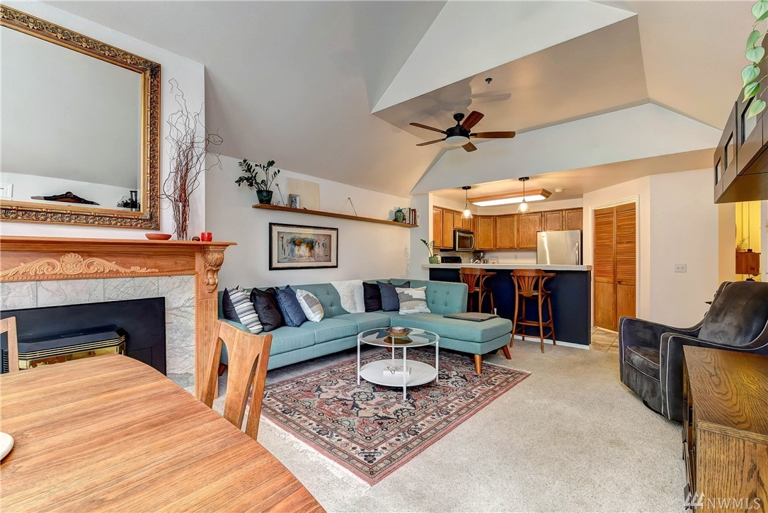 Bright & inviting 2 BR/2 BA top floor unit in booming Ballinger! The open floor plan fills the spaces throughout with light all day long & offers a fireplace for chilly nights at home this fall. Enjoy morning coffee on the peaceful deck (accessed from all rooms of the house). Walk in closet + private bath in main bedroom + laundry room and individual garage offer perks rarely seen in condo living. Well-run, small HOA. Great access to shops, dining, grocery, I-5 & Edmonds or LFP town center.