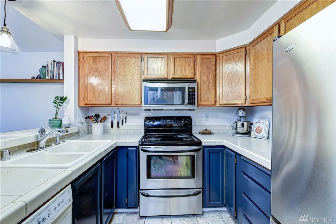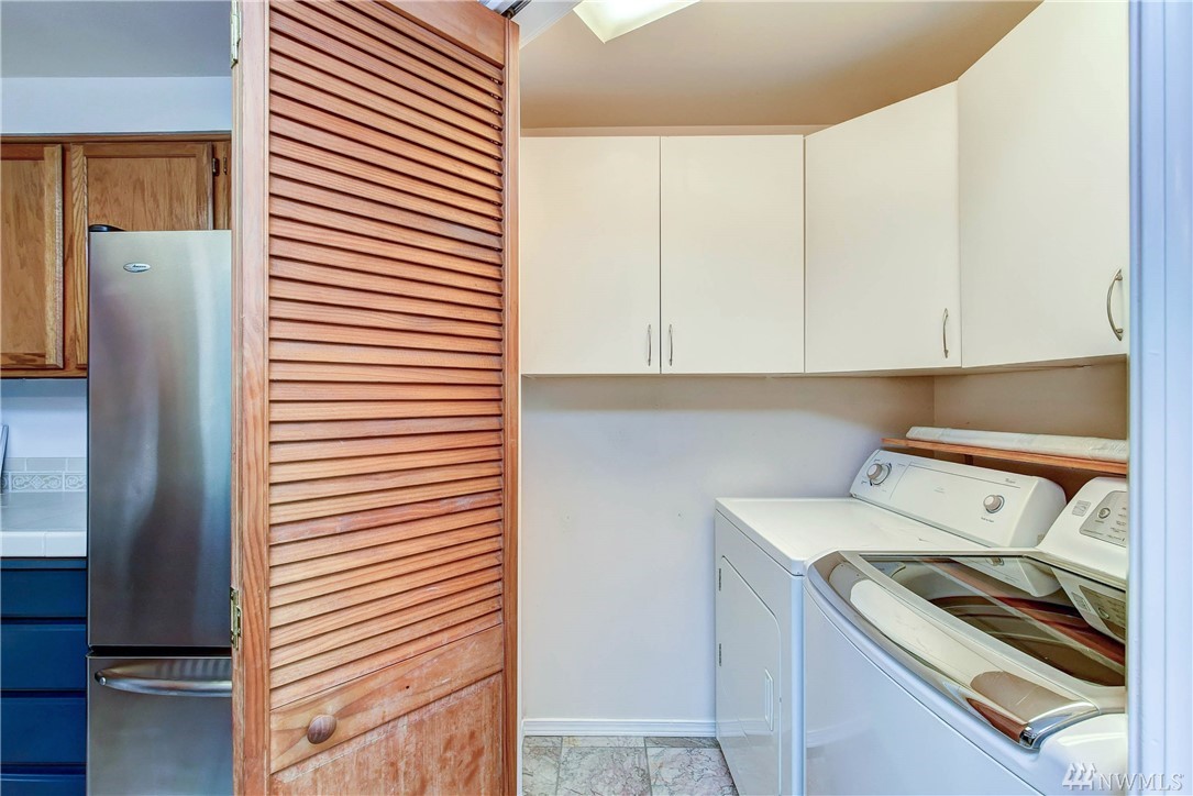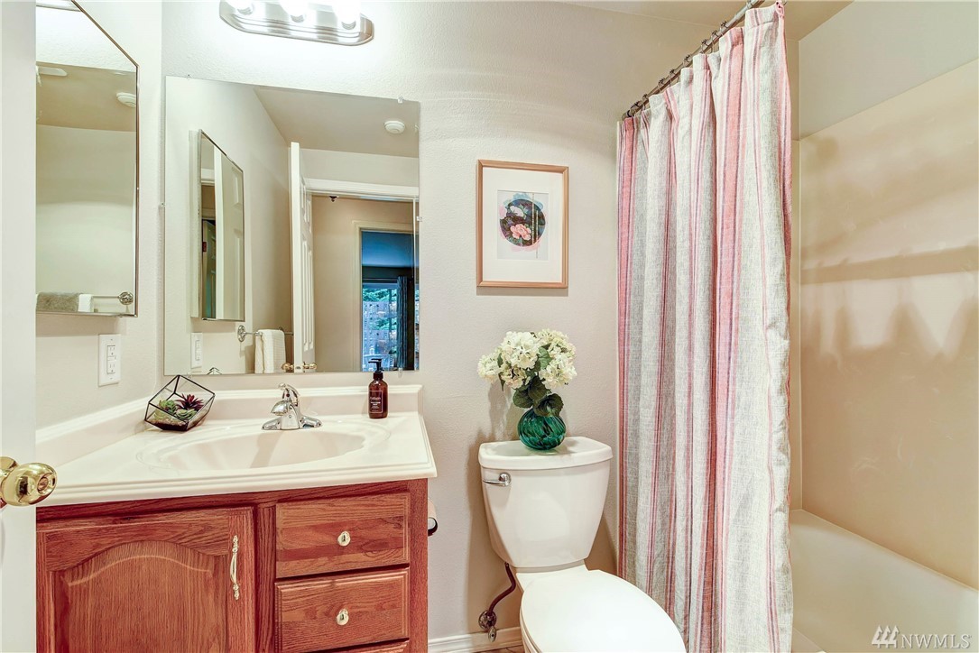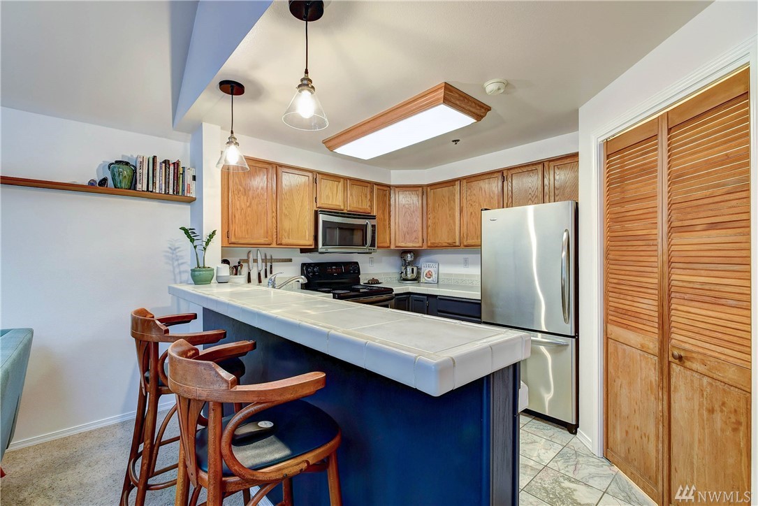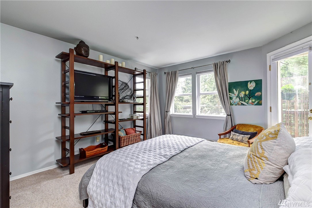 Bright & inviting 2 BR/2 BA top floor unit in booming Ballinger! The open floor plan fills the spaces throughout with light all day long & offers a fireplace for chilly nights at home this fall. Enjoy morning coffee on the peaceful deck (accessed from all rooms of the house). Walk in closet + private bath in main bedroom + laundry room and individual garage offer perks rarely seen in condo living. Well-run, small HOA. Great access to shops, dining, grocery, I-5 & Edmonds or LFP town center.