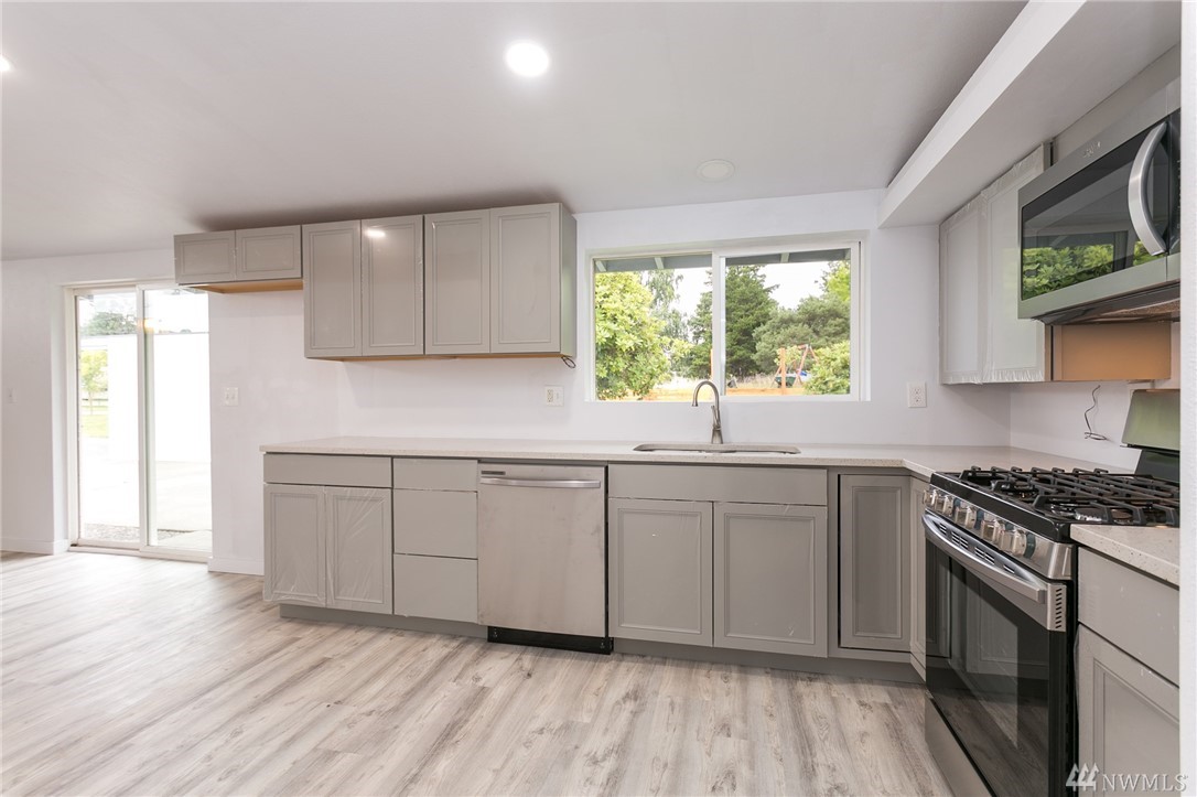Cute and remodeled rambler on a large corner lot. New metal roof, gas FP insert, tankless water heater, flooring, cabinets, quartz counter tops, stainless appliances, int.& ext. paint, and sewer line from the house to the sidewalk.