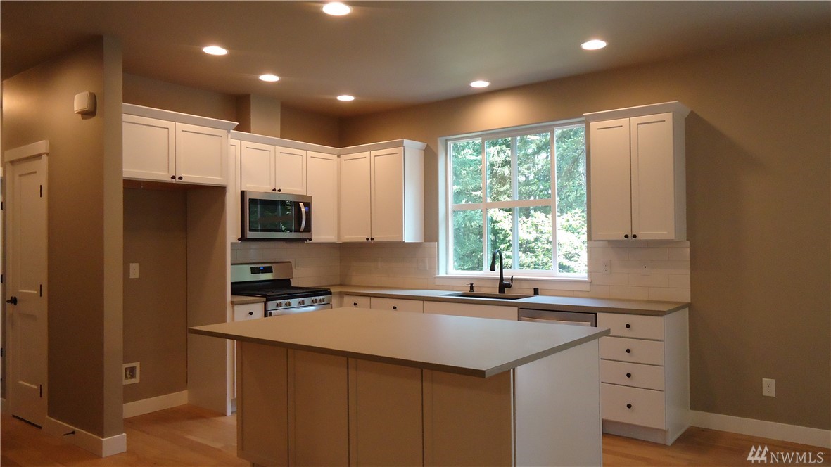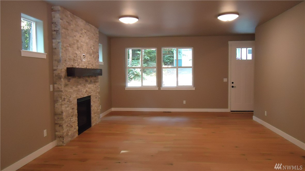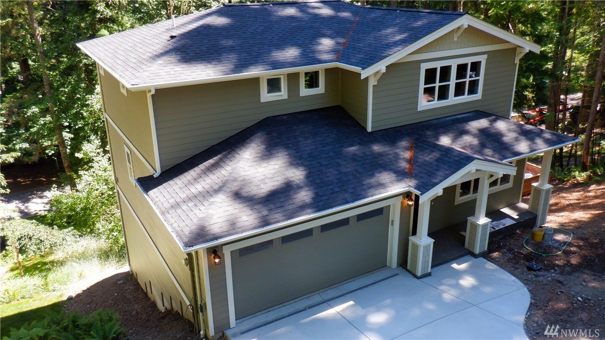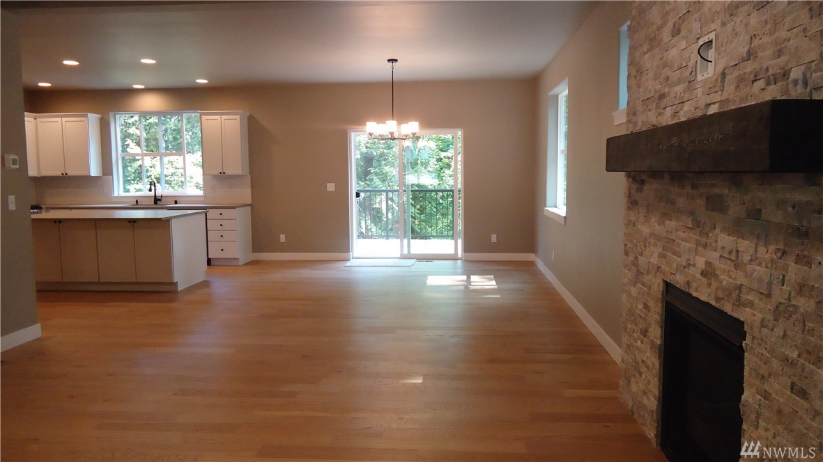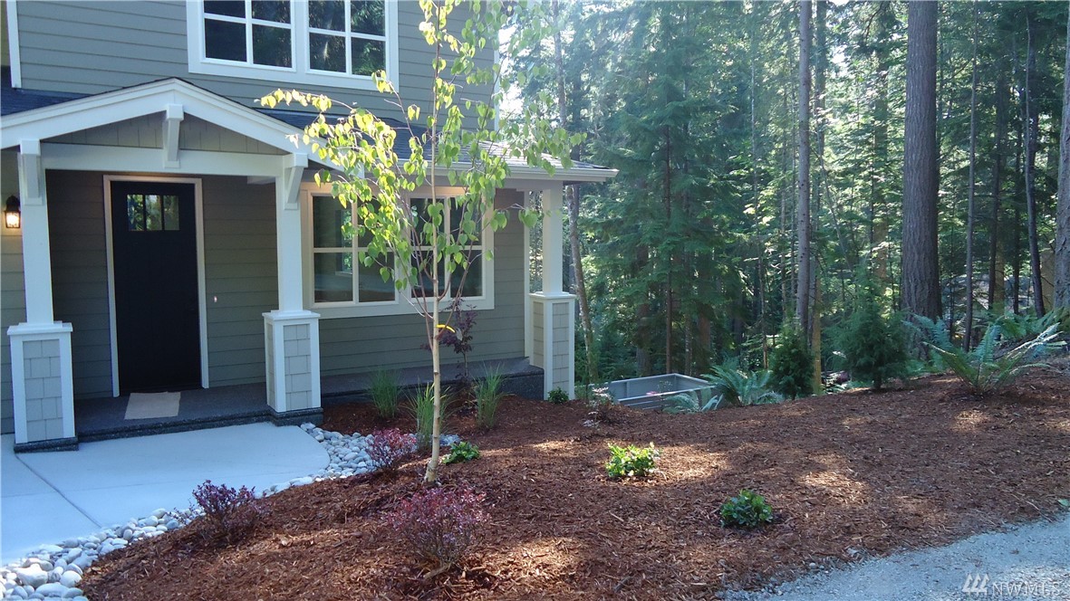 Brand new Pacific NW Contemporary style home in a private neighborhood and on a massive corner lot! Features include: Vaulted ceiling in the Living Room; Gas fireplace with stone surround on main level; Open kitchen with stainless appliances & custom white cabinet package; Quartz counter tops; Engineered hardwood flooring; Large laundry on main; Large master suite with onsuite bath with glassed door in shower (and skylight). Flat driveway - large unfinished basement area - steps to trail system.