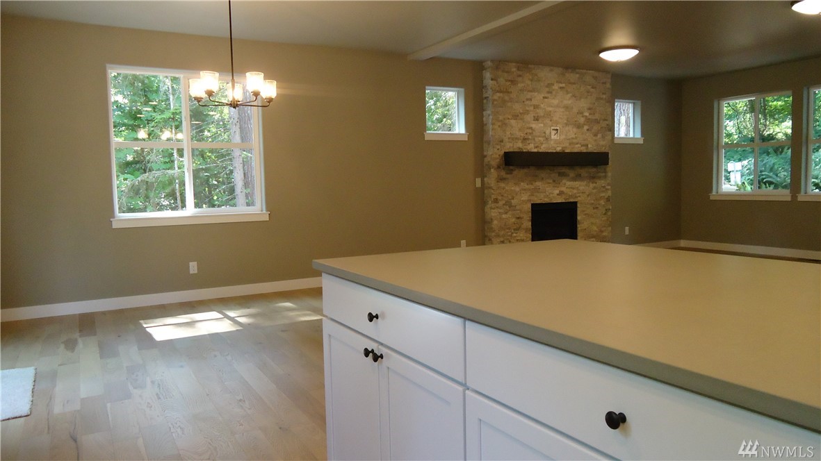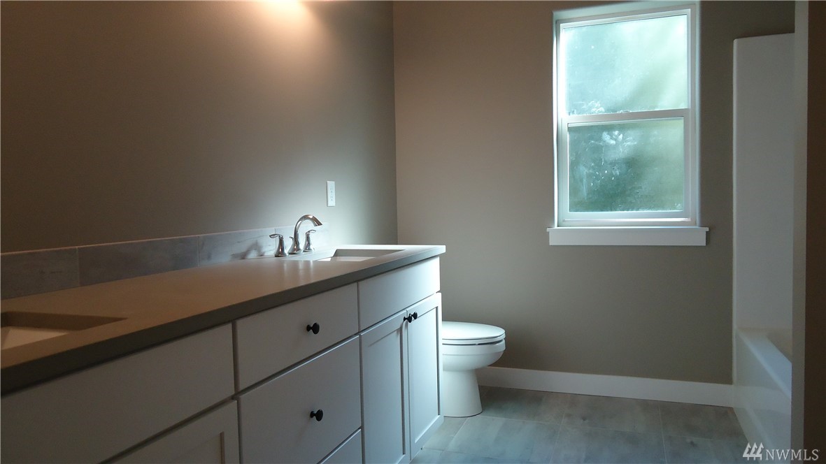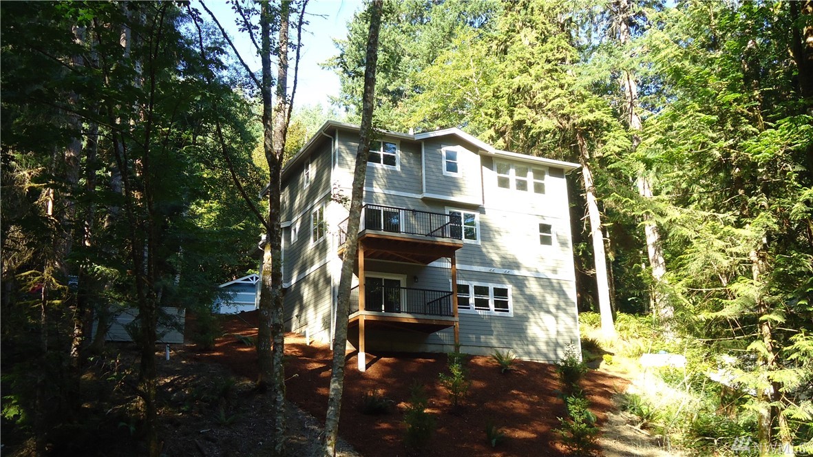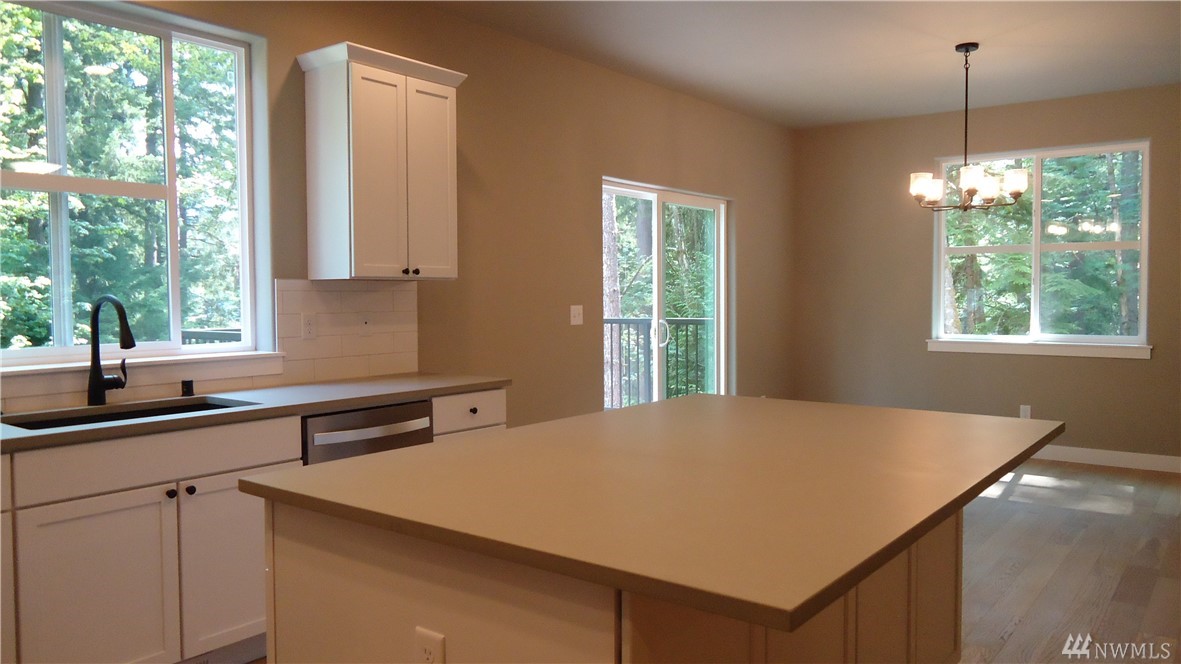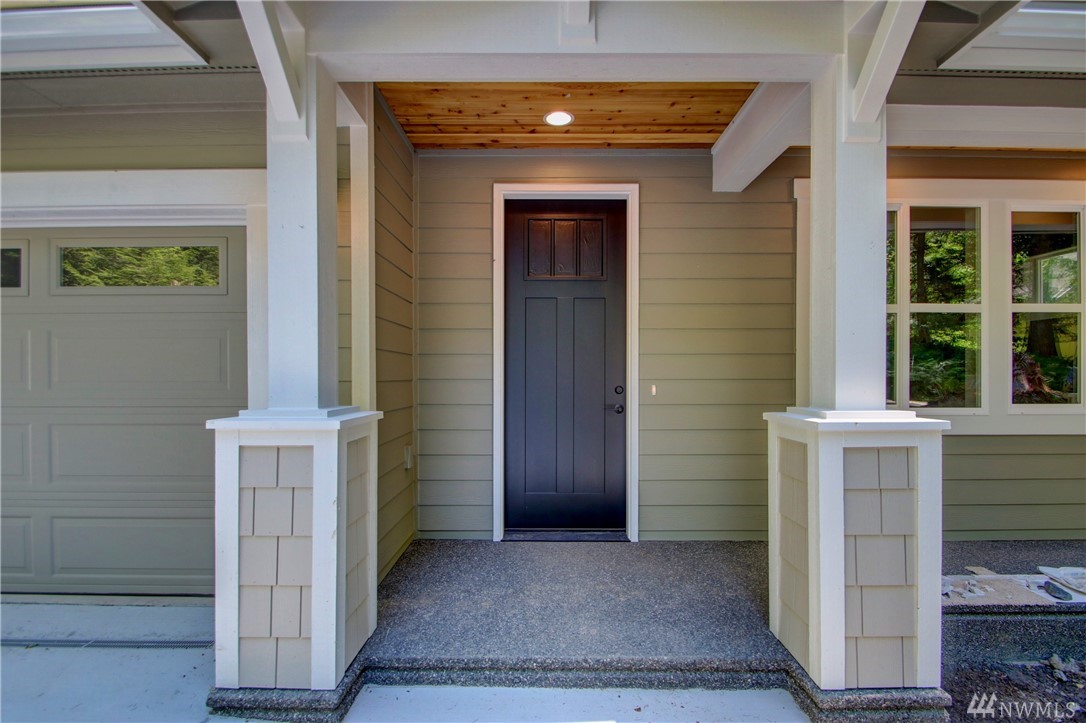 Brand new Pacific NW Contemporary style home in a private neighborhood and on a massive corner lot! Features include: Vaulted ceiling in the Living Room; Gas fireplace with stone surround on main level; Open kitchen with stainless appliances & custom white cabinet package; Quartz counter tops; Engineered hardwood flooring; Large laundry on main; Large master suite with onsuite bath with glassed door in shower (and skylight). Flat driveway - large unfinished basement area - steps to trail system.