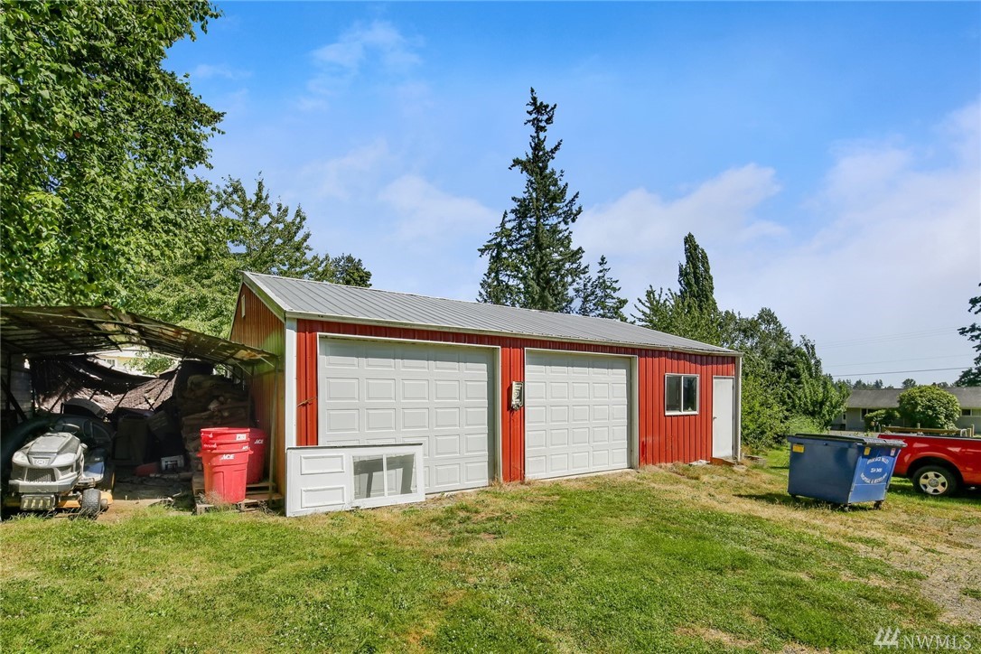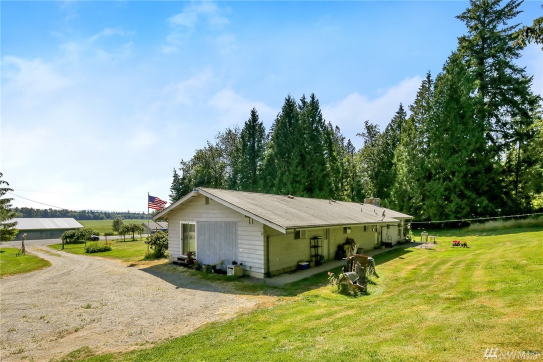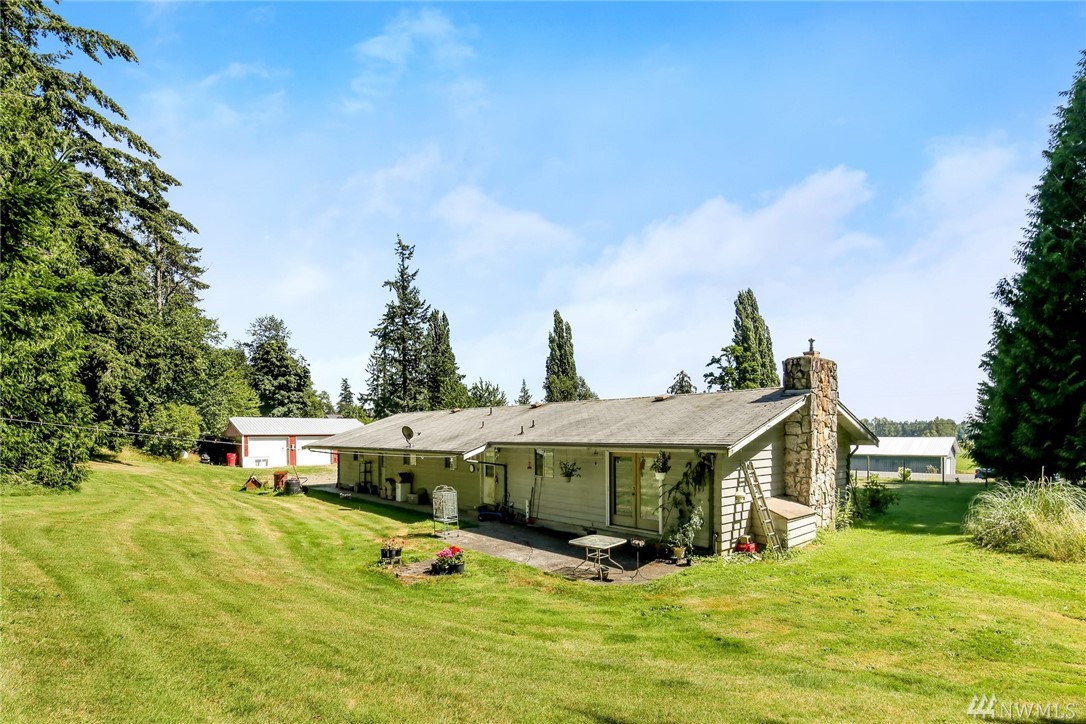 County living awaits! 5 minutes from I-5 with easy access to Bellingham and Blaine. Over 1.5 acres blending cleared space and forested areas. Cherry, apple, pear trees and garden space in fenced yard; greenhouse and fish pond. Outdoor picnic area with stone stove and seating space. Detached two-car garage with shop/storage space. Laminate and carpet throughout house; stone fireplace with gas insert. Remodel potential - live in the home or rent it out!