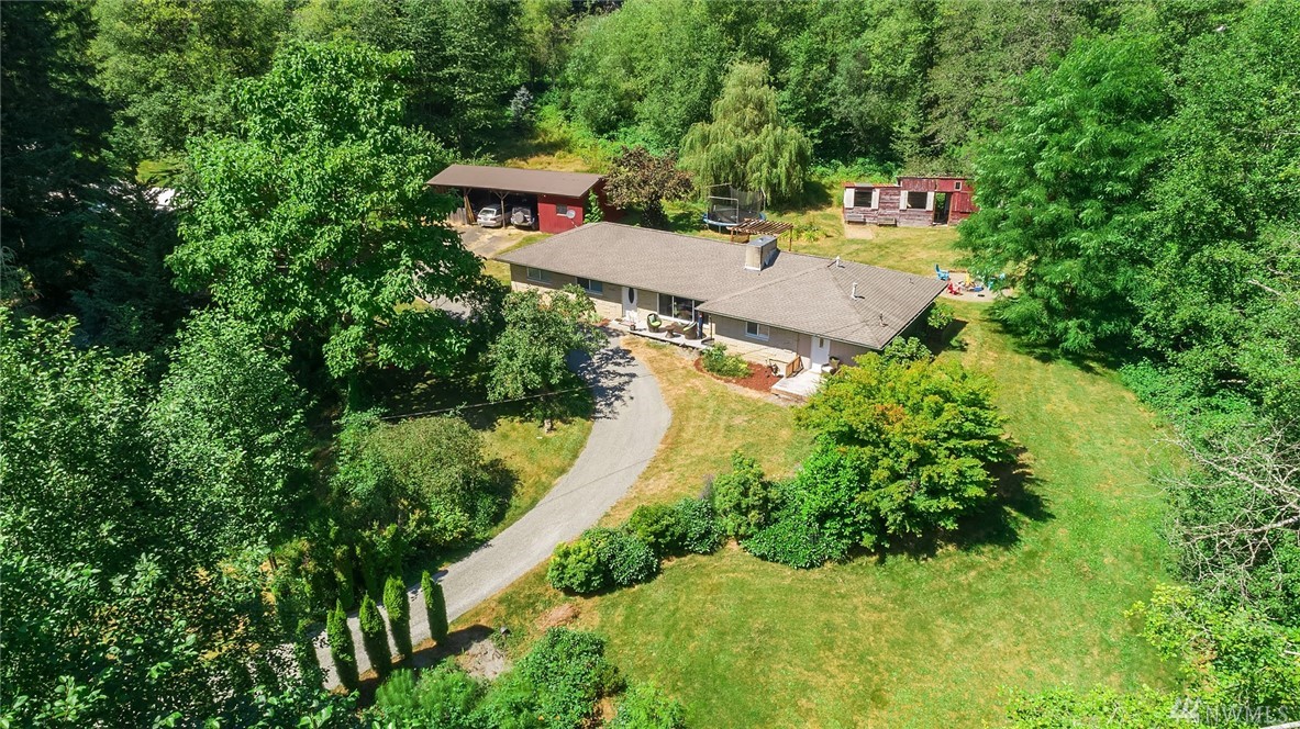 Quiet rambler nestled in amongst over 3.5 acres of beautiful space features 3 bedrooms, a bonus room & den. Property includes a fenced pasture, seasonal creek and outbuildings. The heat pump keeps you cool on hot days and a tankless water heater provides hot showers on demand. Relax on the back deck enjoying nature, cozy up around an evening fire pit or tend to your goats, chicken, etc… Countless opportunities for you to enjoy your privacy. Just a quick 10 minutes to downtown Duvall & Carnation.