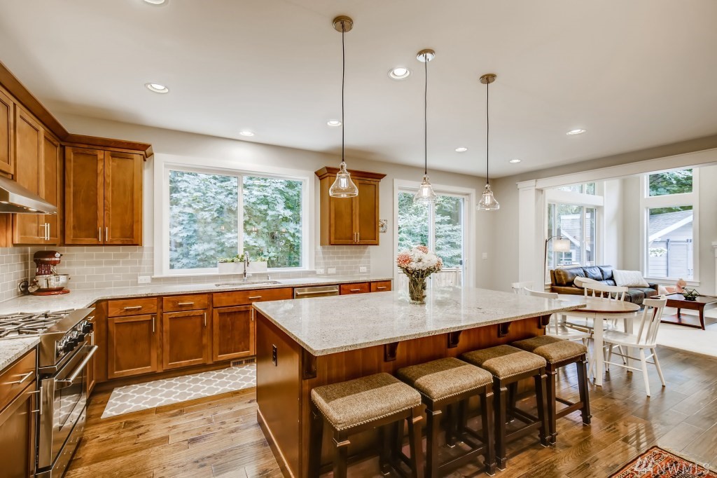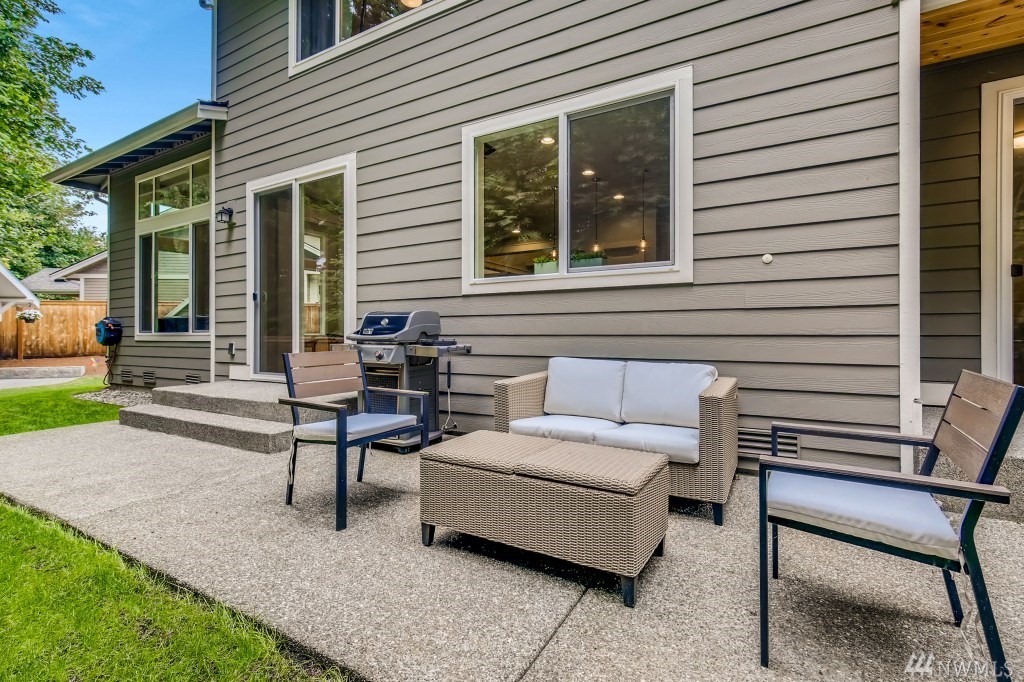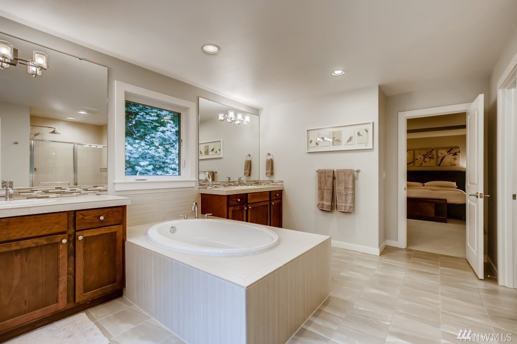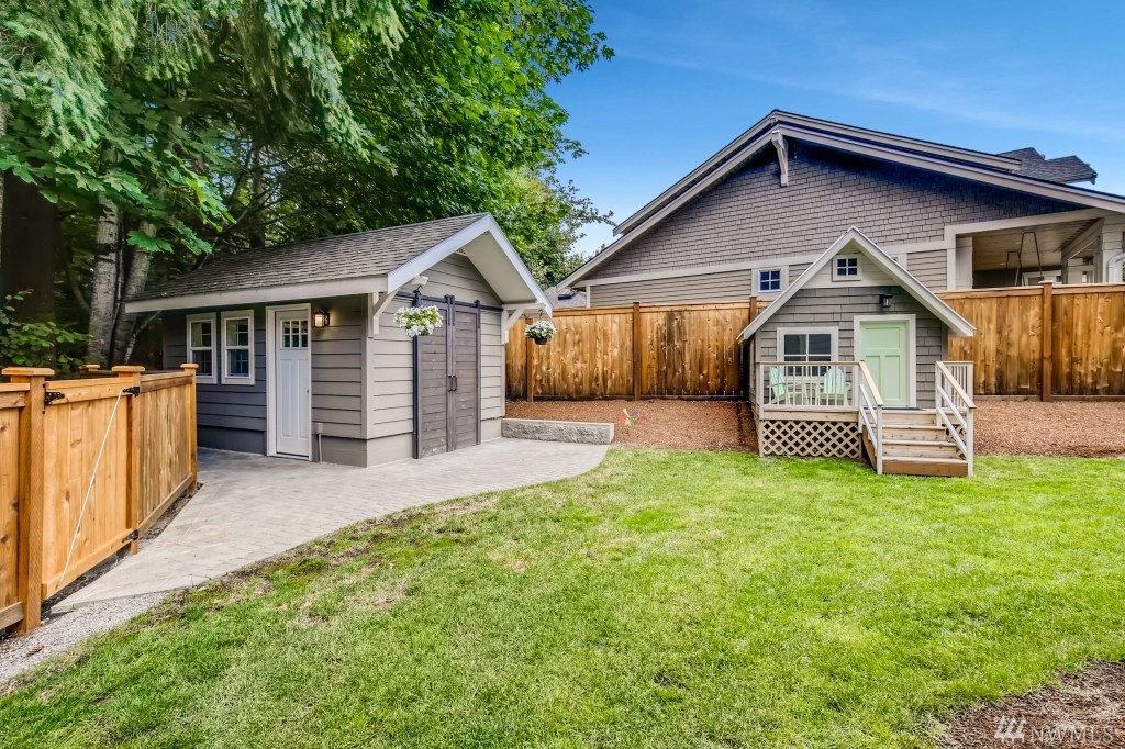 Exquisite 5 bed, 3.5 bath home set on a lot backing the green belt in a quiet cul-de-sac. This home is the perfect blend of privacy & community. Boasting a main suite w/ HUGE custom closet up & a guest bedroom with private bath & patio on the main, this home has an ideal layout no matter what your needs. Custom built-ins in the main floor office, a fully insulated shed with electric, A/C, a whole house generator, & an amazing backyard playhouse completes this beautiful home! Northshore schools.