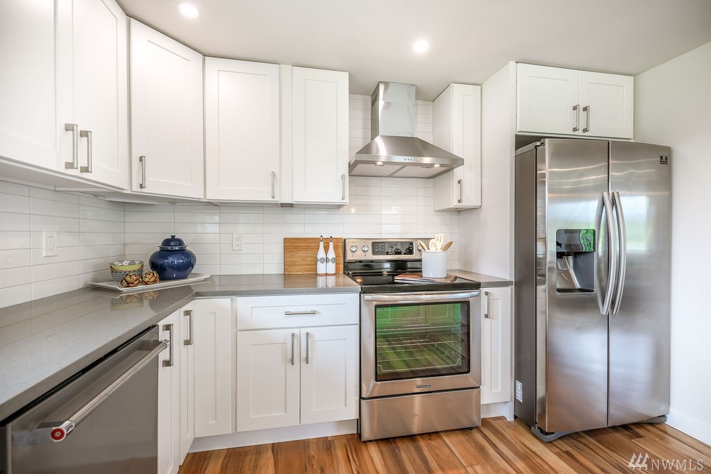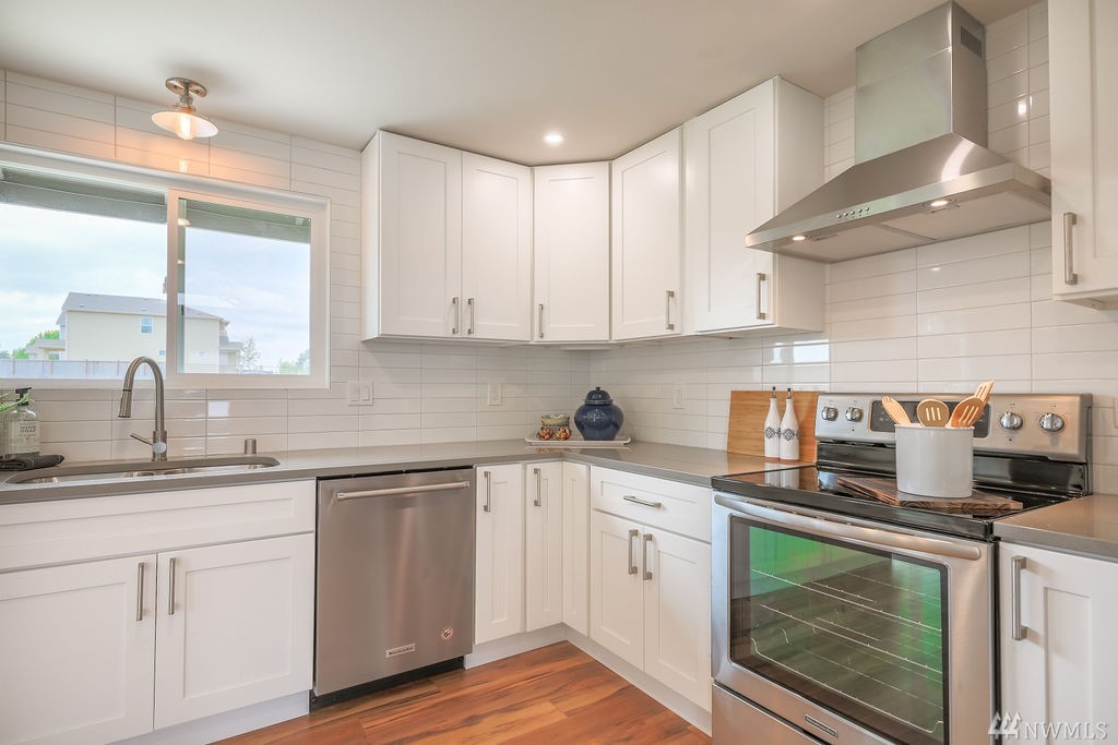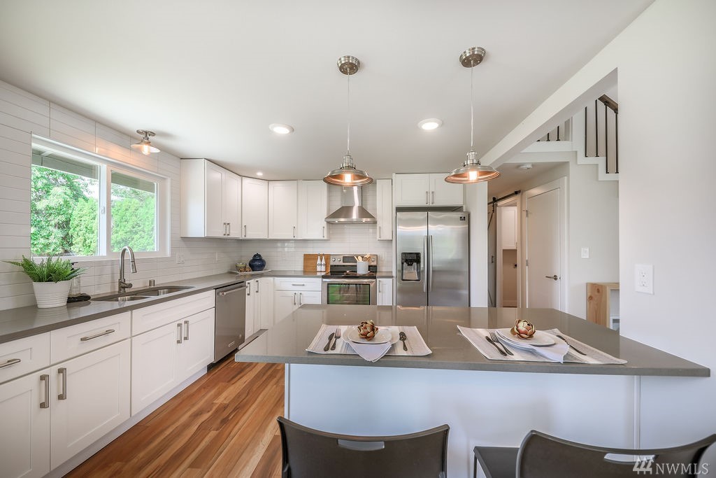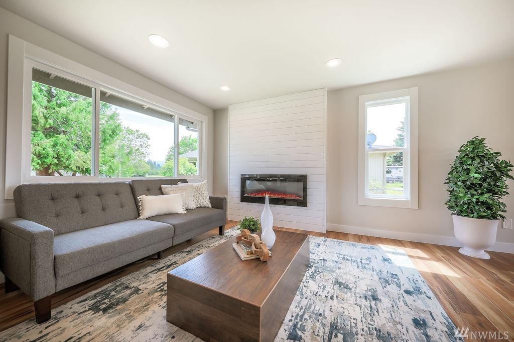 Must SEE! This stunning fully permitted remodeled Home! Vaulted Ceilings greet you into this spacious home with open concept living. Living room features a cozy fireplace. Home offers 2 master suites.One is conveniently located on the main floor.Phenomenally redone inside and out.Enjoy the curb appeal of the nicely landscaped front yard and the colorful sunsets from the fenced backyard. Located in Melody Park and just steps from walking trails,schools and charming downtown Enumclaw. Won't Last!