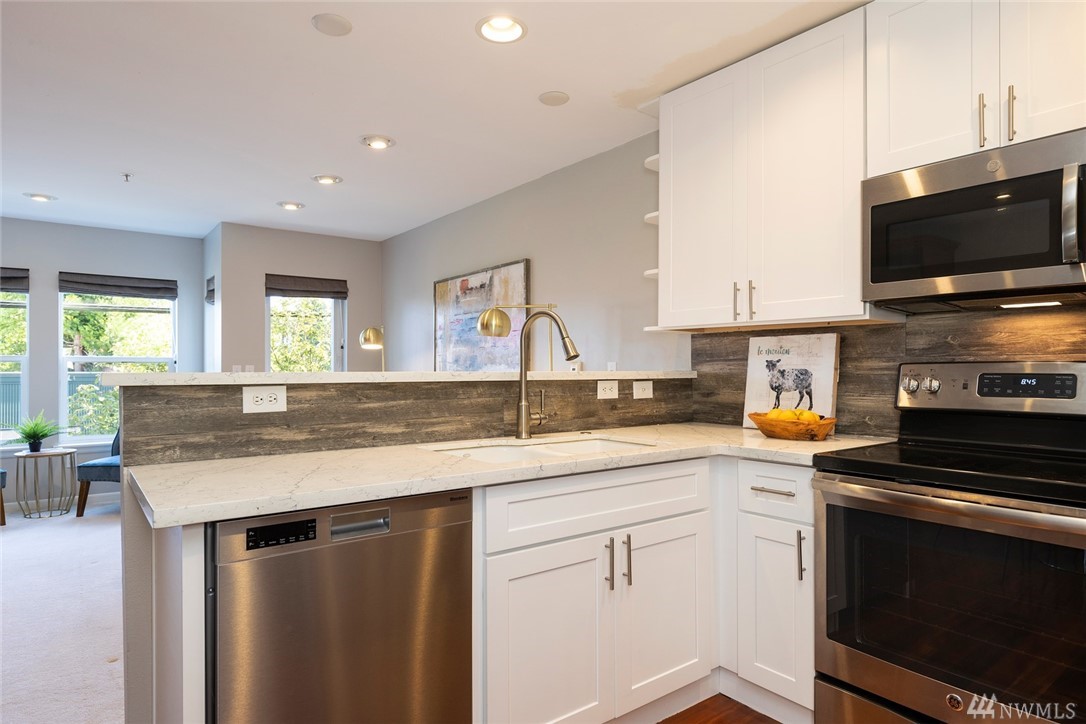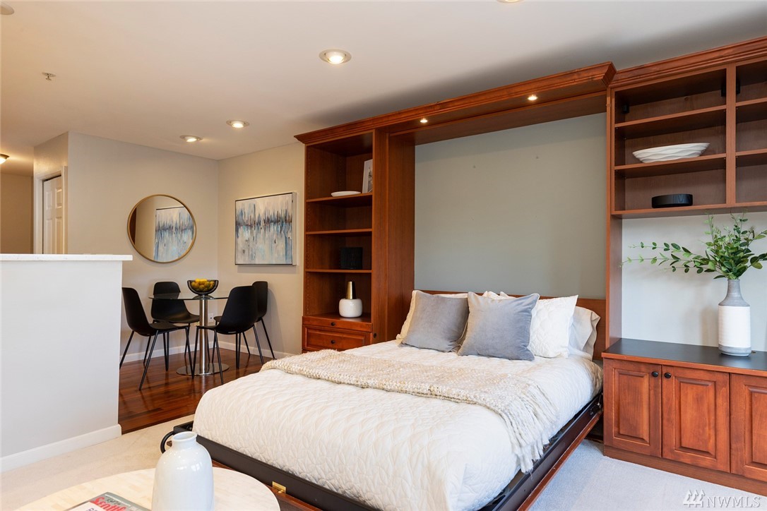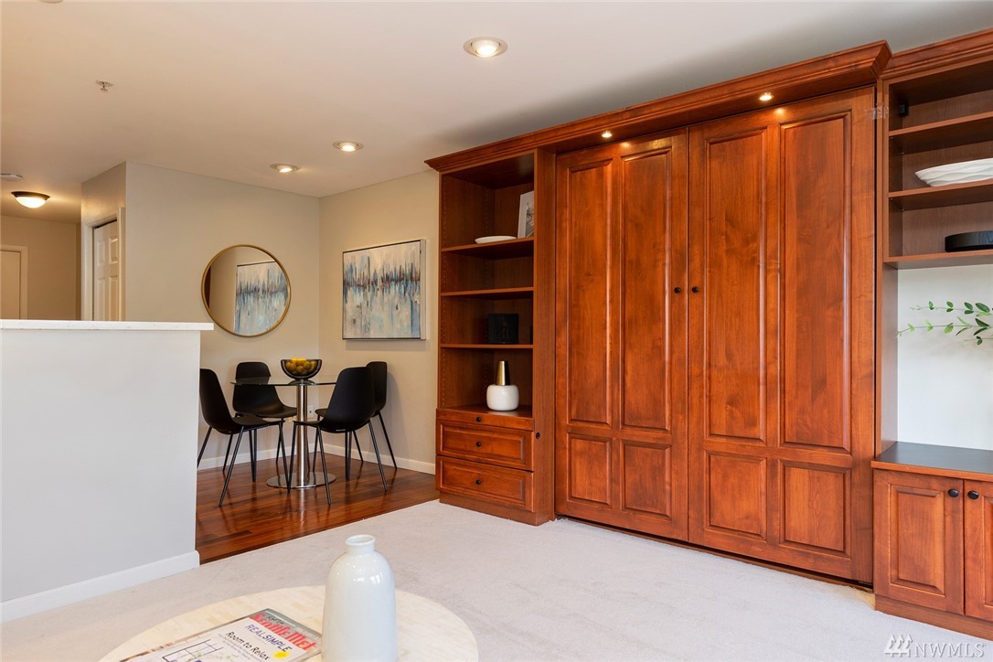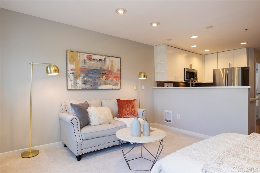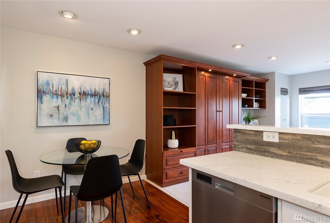 Amazing opportunity to live in Green Lake's Tangletown Condominiums. This gem checks all the boxes. Bright and light filled studio with fully remodeled kitchen and bath. Built-in Murphy bed with additional storage. In unit washer & dryer. One secured parking spot and large storage unit. In the heart of bustling Green Lake. Dining, coffee, bus lines, pub & recreation right outside your front door. Easy access to Ballard, Fremont and Wallingford.
