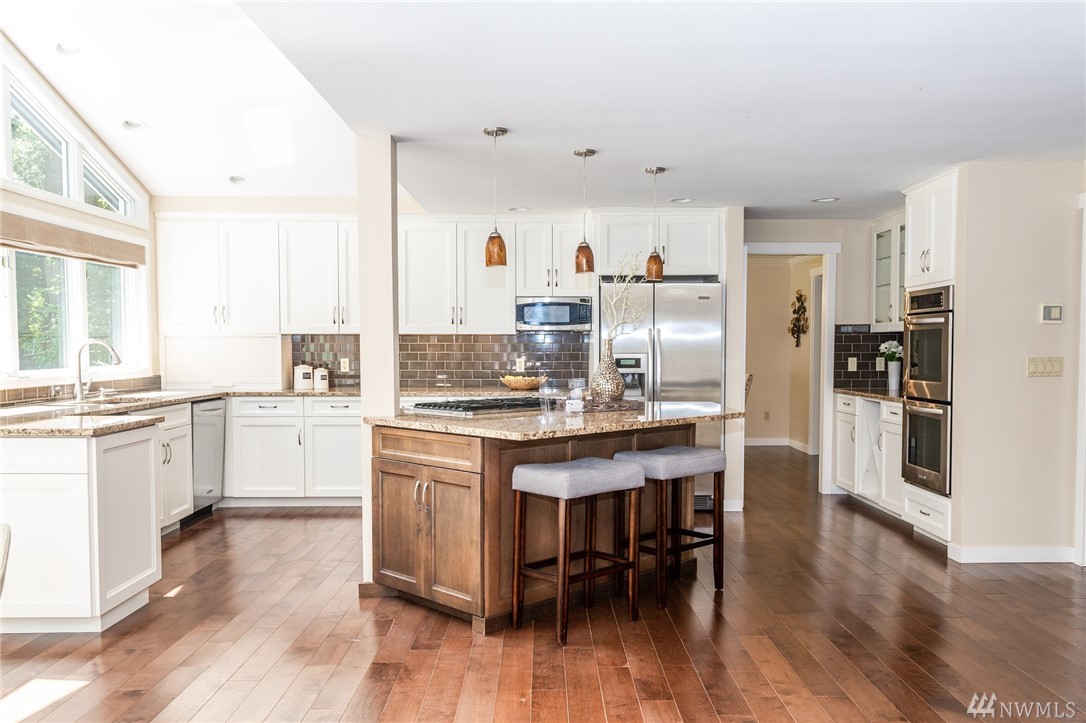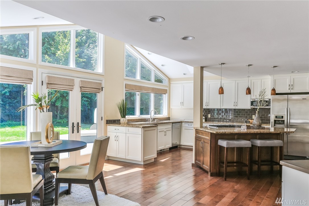 This classic traditional home enjoys a park-like private community in Medina. Home invites natural light into open kitchen, breakfast nook opening to the sun-filled over sized deck & grassy backyard. Main level offers family/living rm, formal dining and office, the upstair offers 4 bedrooms plus rec rm.Private & Meticulously landscaped flat yard with fire pit area and putting green. Perfect for Summer party! Shopping & minutes from downtown Bellevue and highway 520.