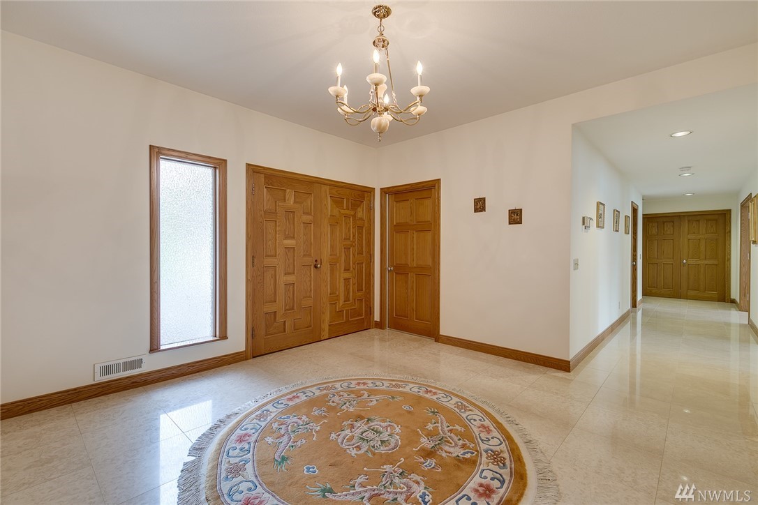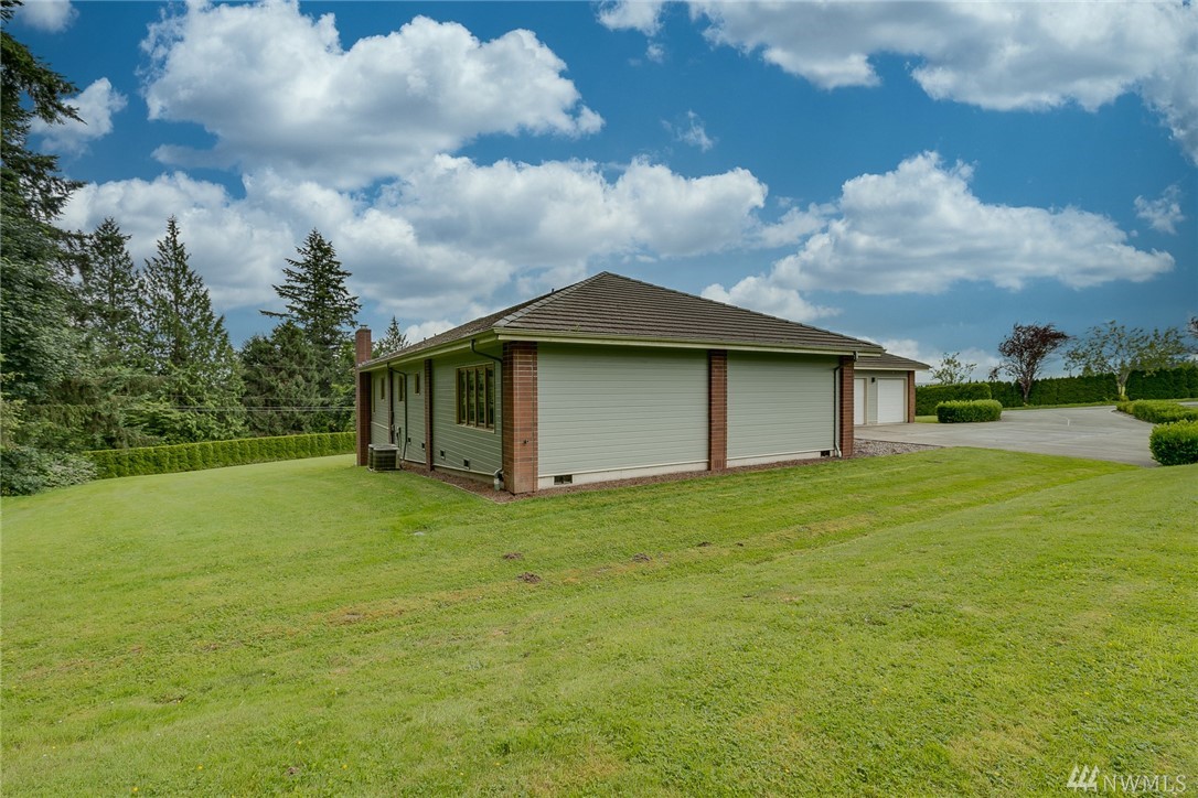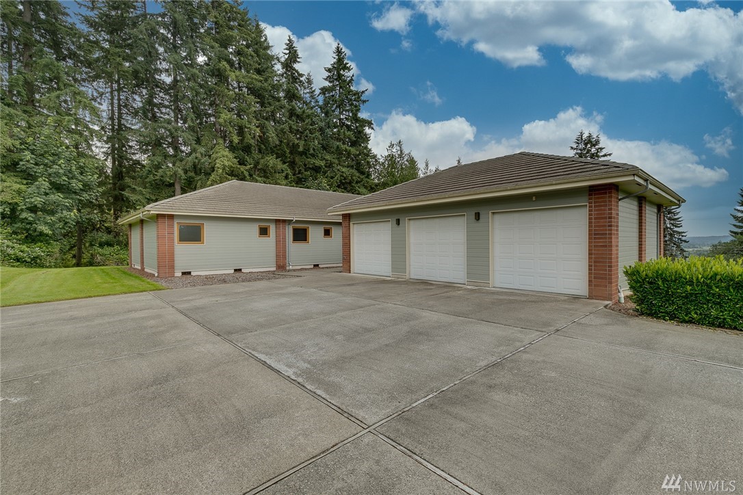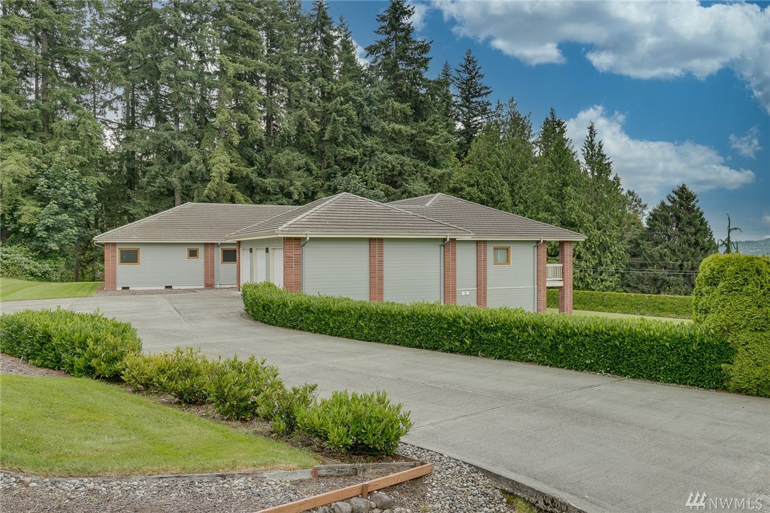 Light and bright, well-built rambler with basement on 5 view acres overlooking the Snohomish valley. Main floor features 3 bedrooms including a generous master suite, 5-piece bath, hot tub room w/shower, formal view dining and living room with cozy fireplace. European kitchen and family room, Full view deck. Lower floor one bedroom junior suite with full bath and fireplace, media room, and plenty of room for full mother-in-law suite with kitchen or rental. 3 car garage. RV Parking.