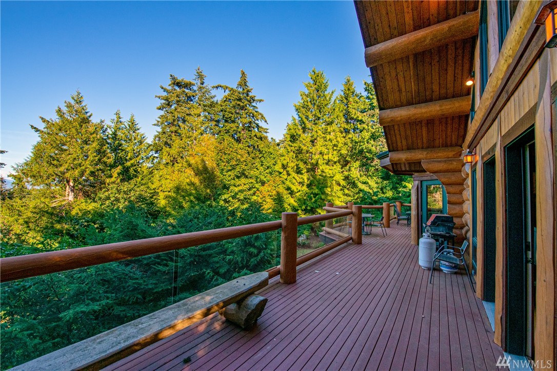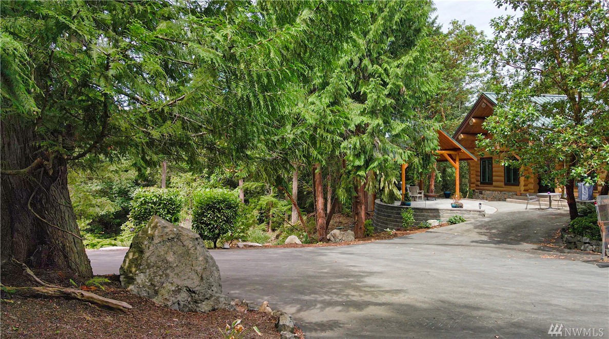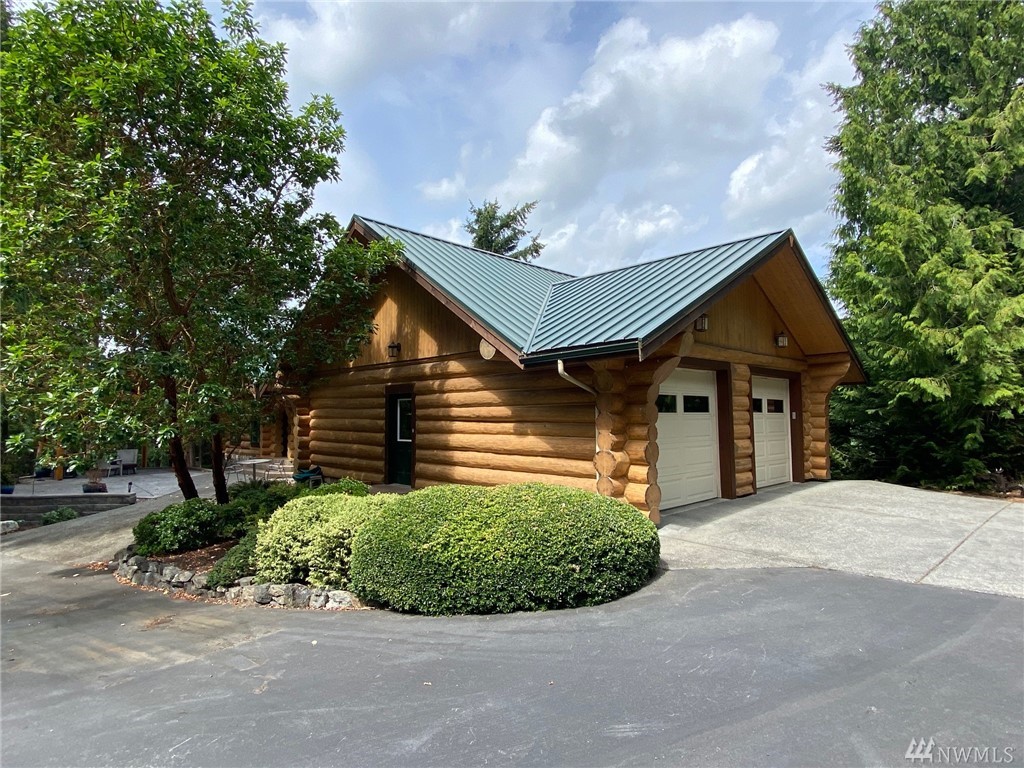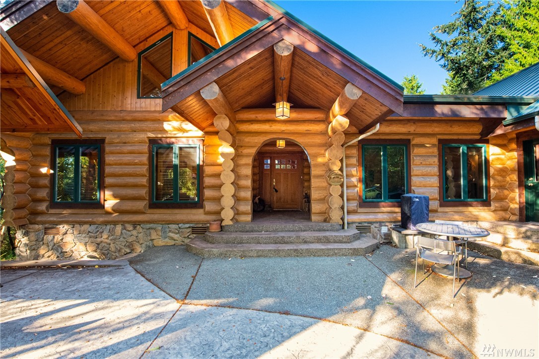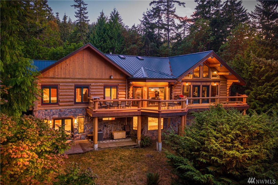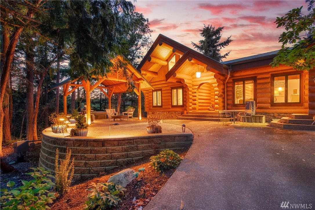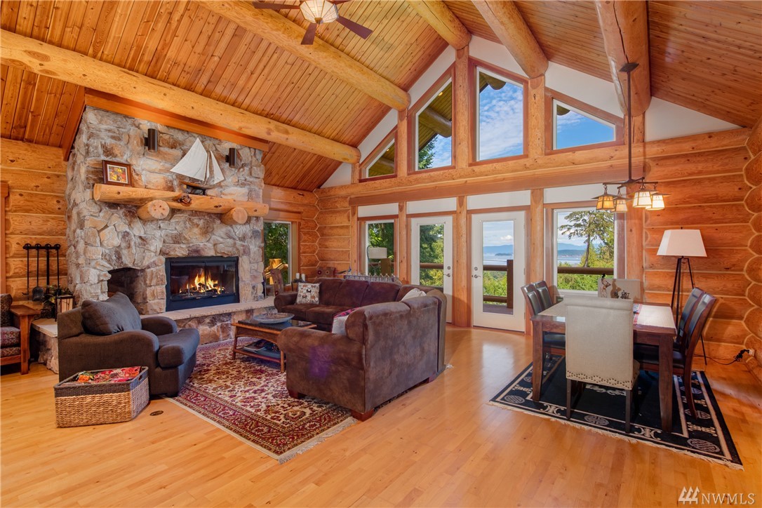 Beautiful, hand-crafted custom log home nestled on a shy 3 acre property w/ views of Fidalgo Bay and Islands. 4156 SF w/ 4 BD, 2.75 BA and a 799 SF garage/shop. Spacious great room with vaulted ceiling and impressive fireplace, access to a very large deck for entertaining, Gourmet kitchen w/ high-end appliances & lots of cabinets, pantry, breakfast nook. Family room. Main level living. Path to 2 spring fed ponds. Gated community. Secluded but only 5 minutes from Anacortes.