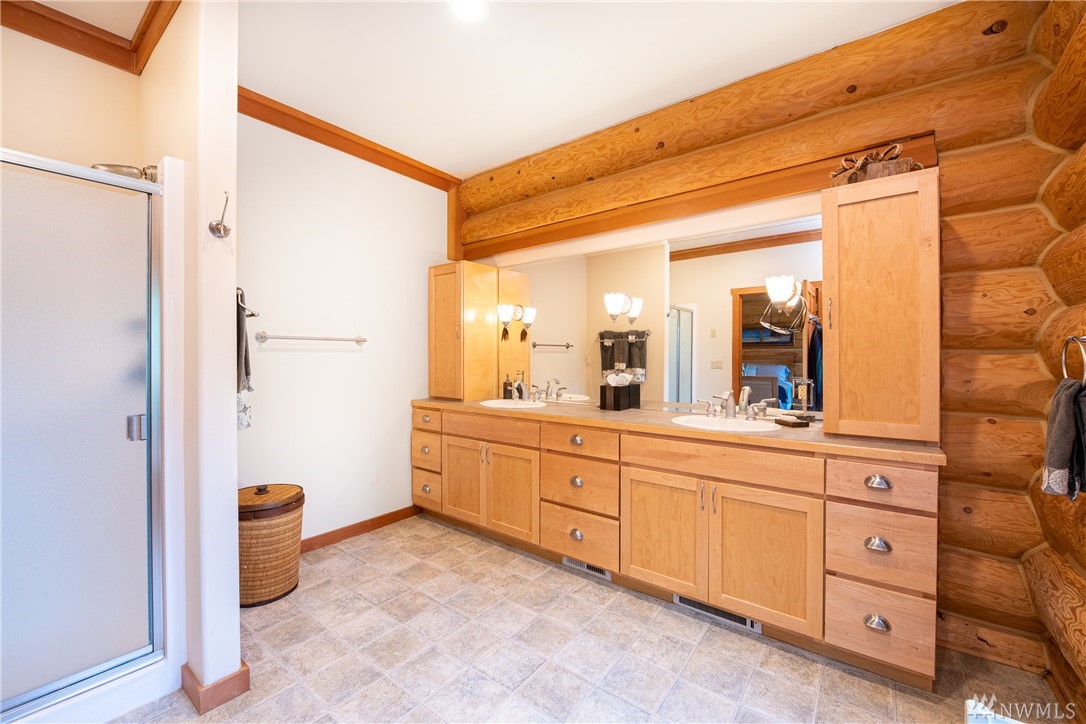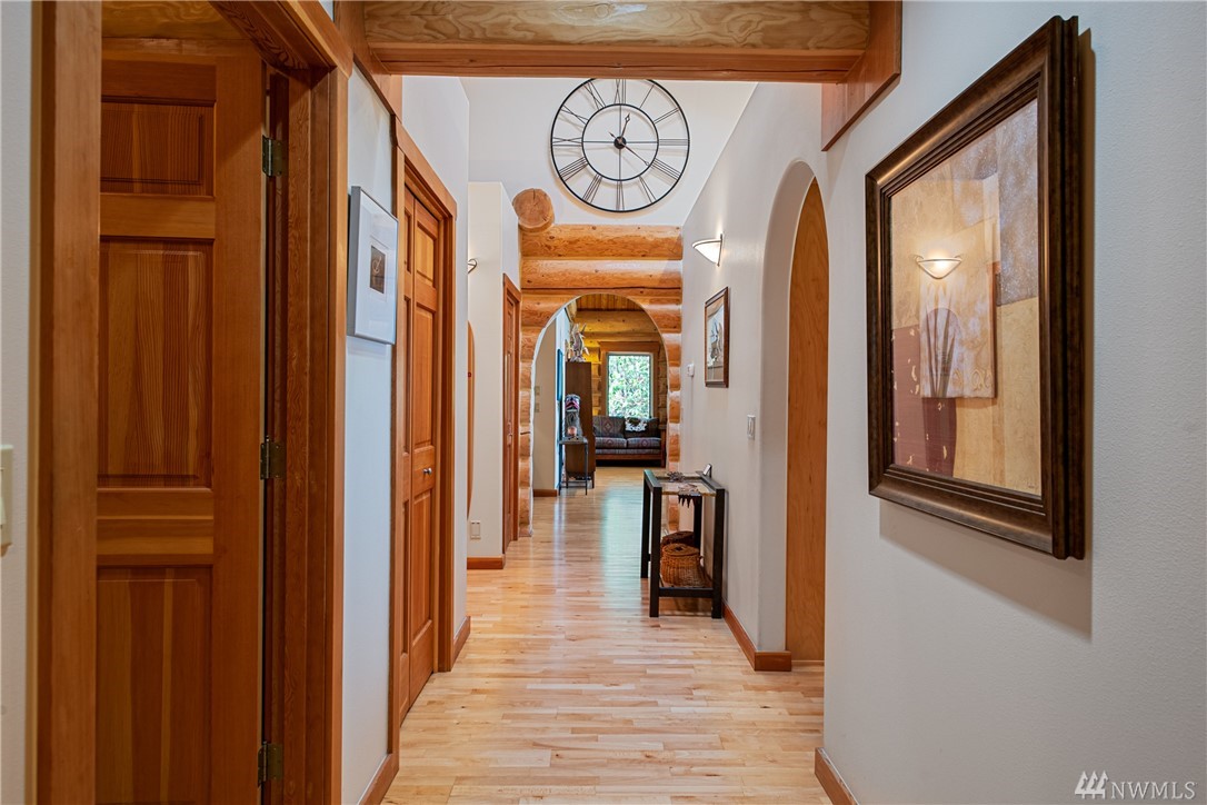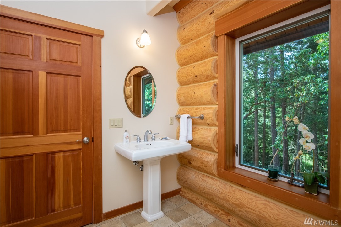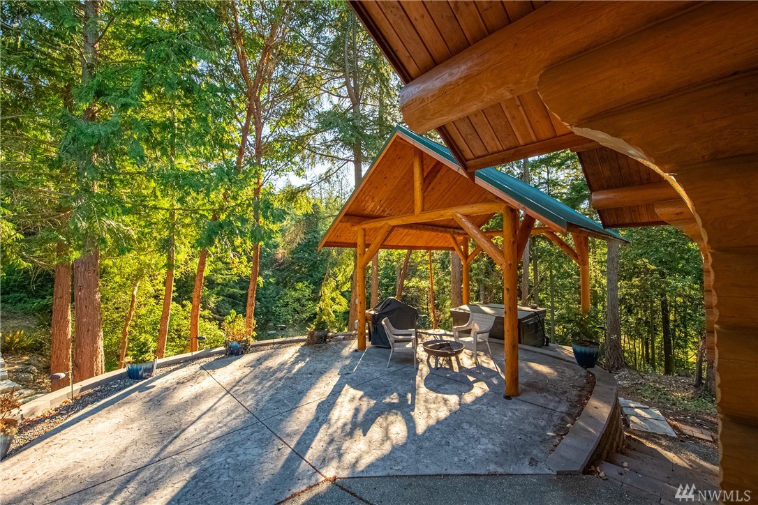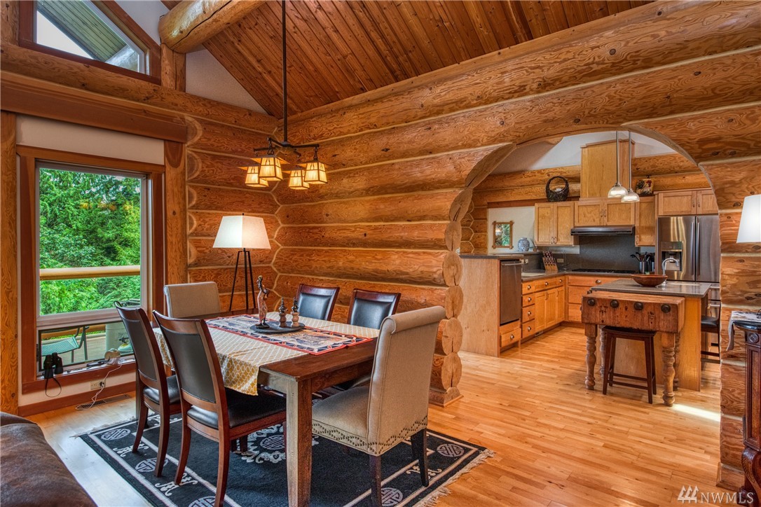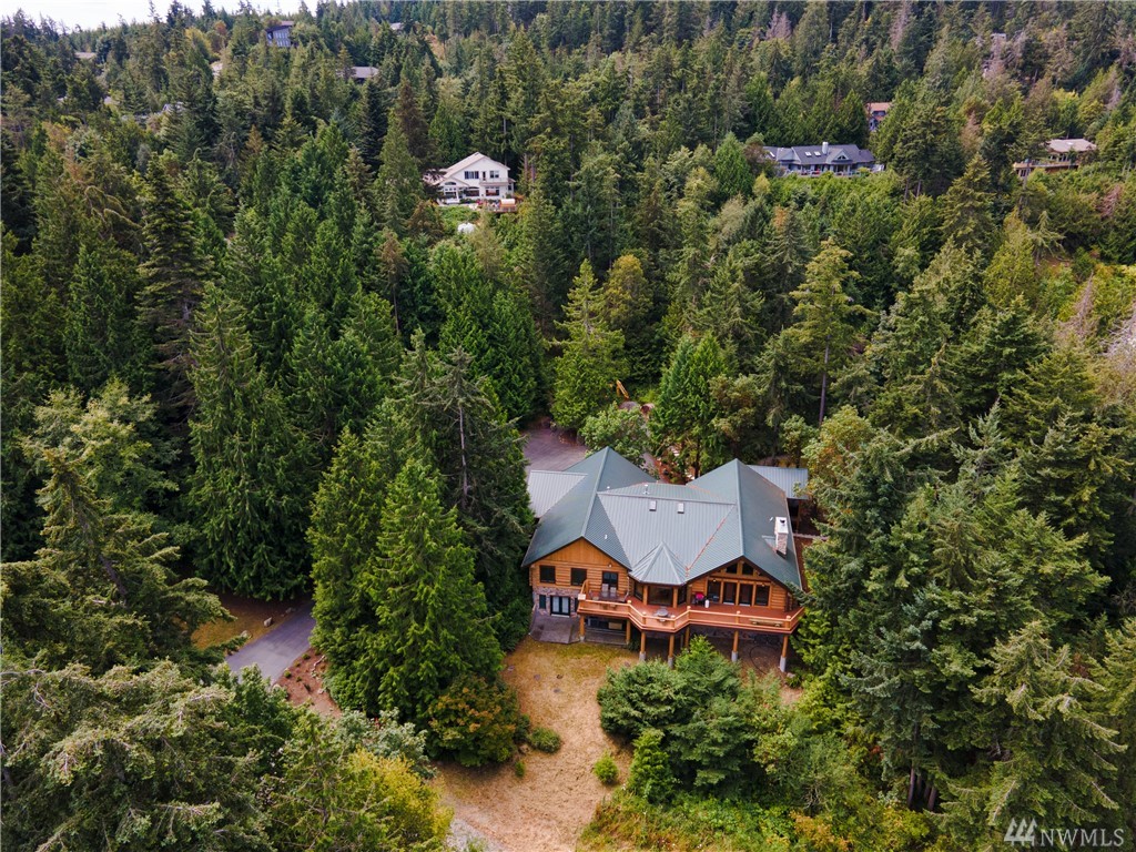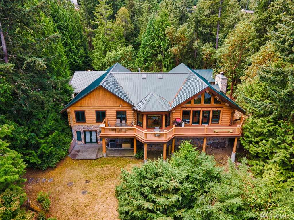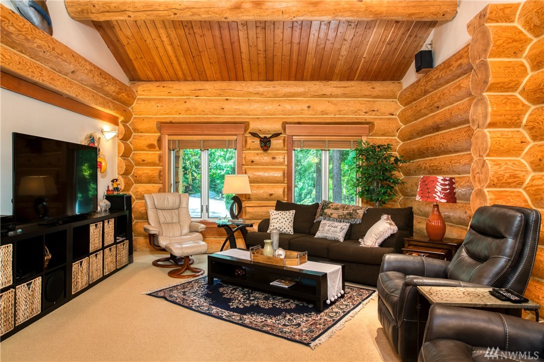Beautiful, hand-crafted custom log home nestled on a shy 3 acre property w/ views of Fidalgo Bay and Islands. 4156 SF w/ 4 BD, 2.75 BA and a 799 SF garage/shop. Spacious great room with vaulted ceiling and impressive fireplace, access to a very large deck for entertaining, Gourmet kitchen w/ high-end appliances & lots of cabinets, pantry, breakfast nook. Family room. Main level living. Path to 2 spring fed ponds. Gated community. Secluded but only 5 minutes from Anacortes.
