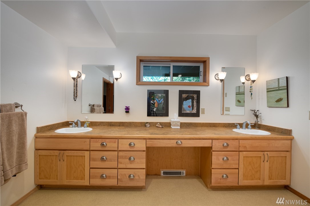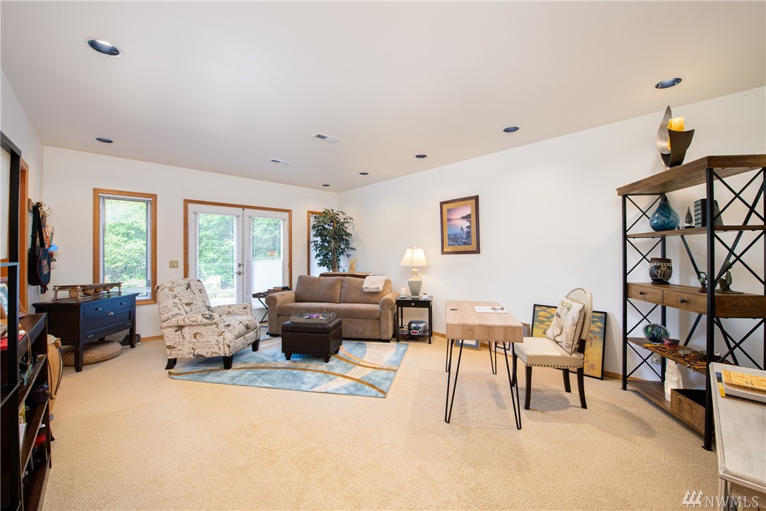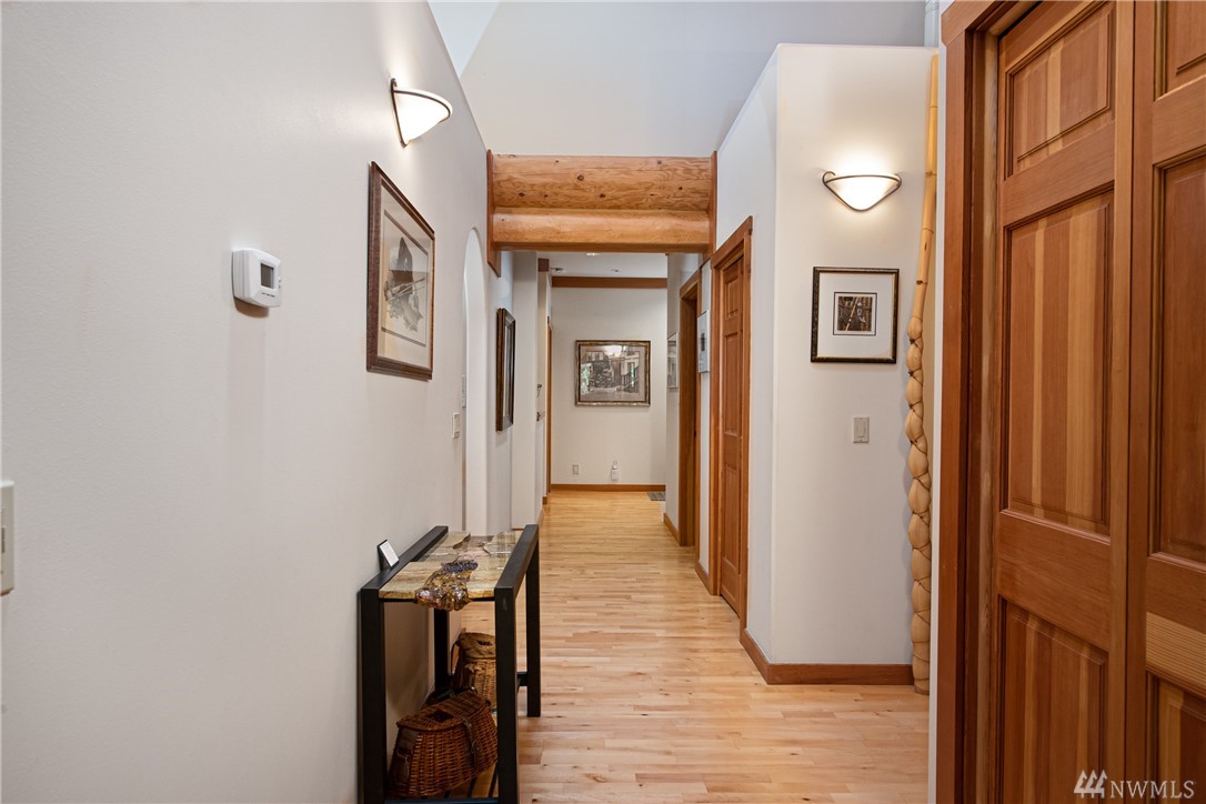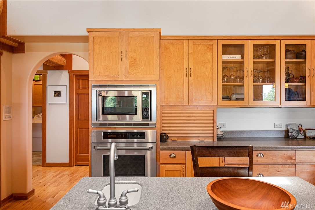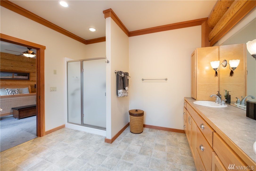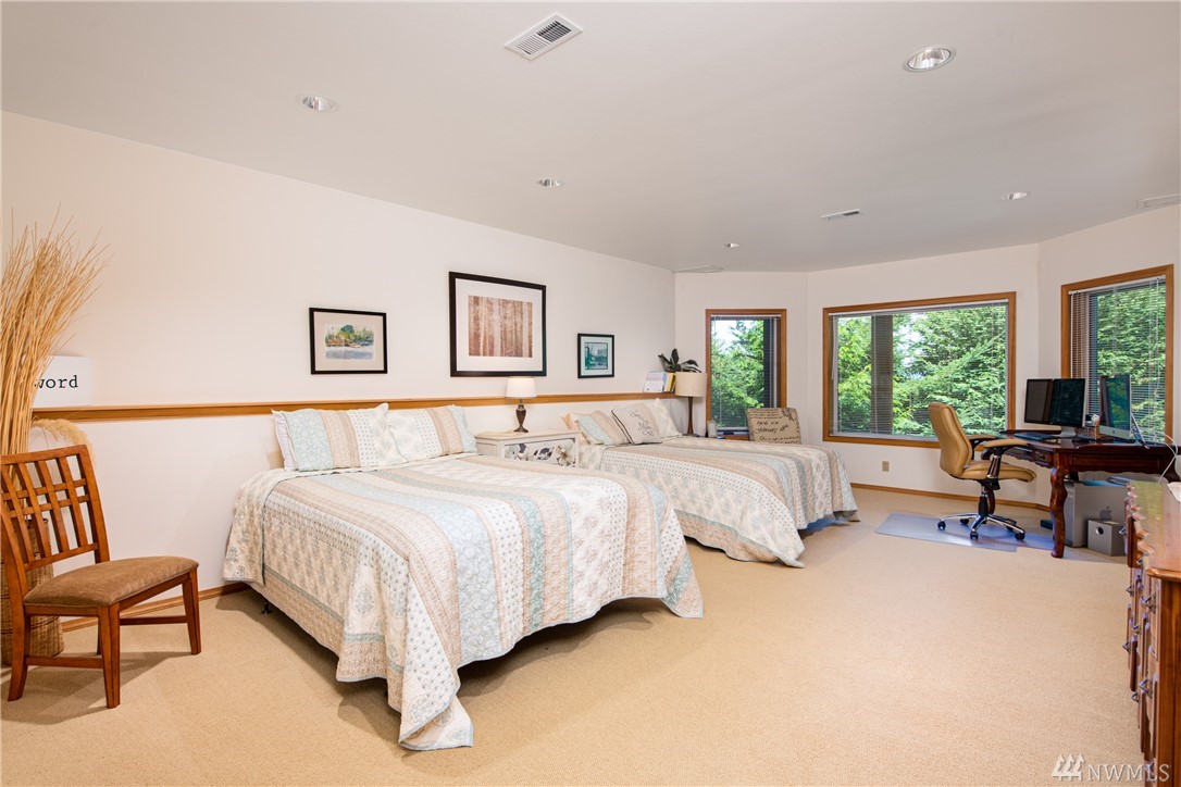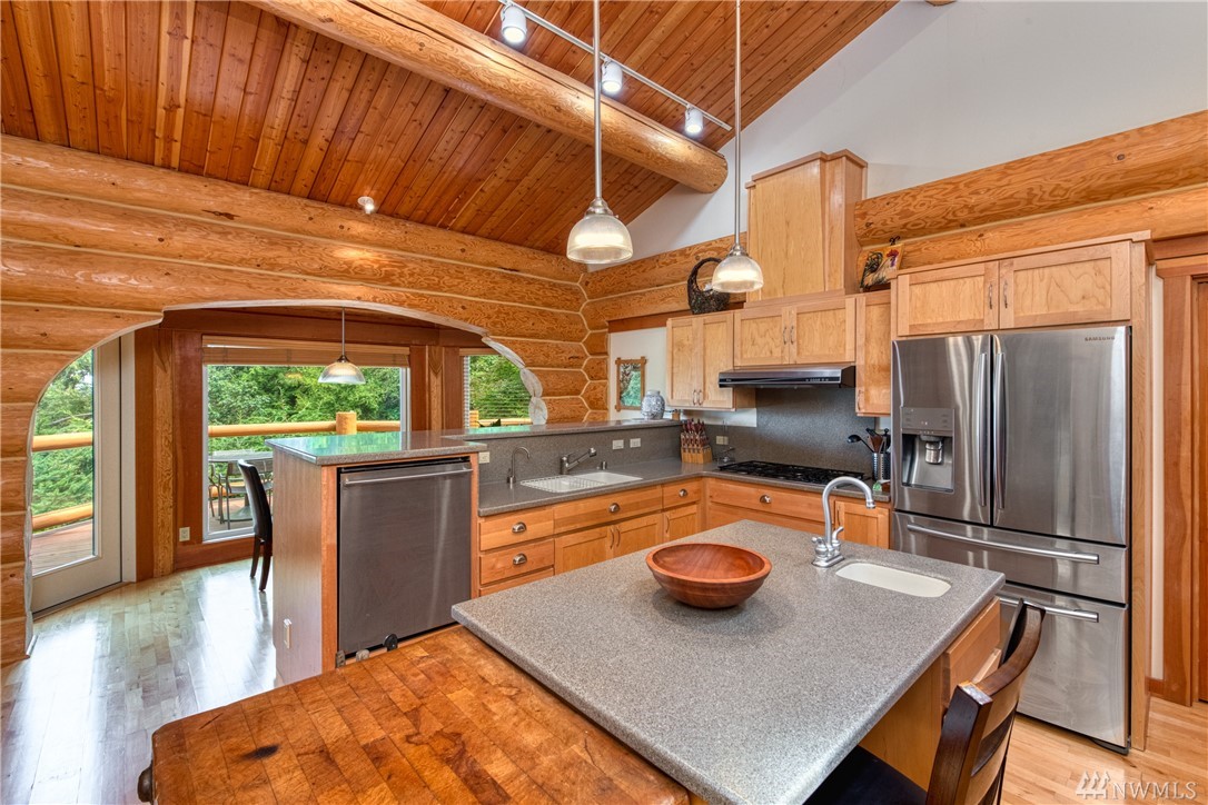 Beautiful, hand-crafted custom log home nestled on a shy 3 acre property w/ views of Fidalgo Bay and Islands. 4156 SF w/ 4 BD, 2.75 BA and a 799 SF garage/shop. Spacious great room with vaulted ceiling and impressive fireplace, access to a very large deck for entertaining, Gourmet kitchen w/ high-end appliances & lots of cabinets, pantry, breakfast nook. Family room. Main level living. Path to 2 spring fed ponds. Gated community. Secluded but only 5 minutes from Anacortes.
