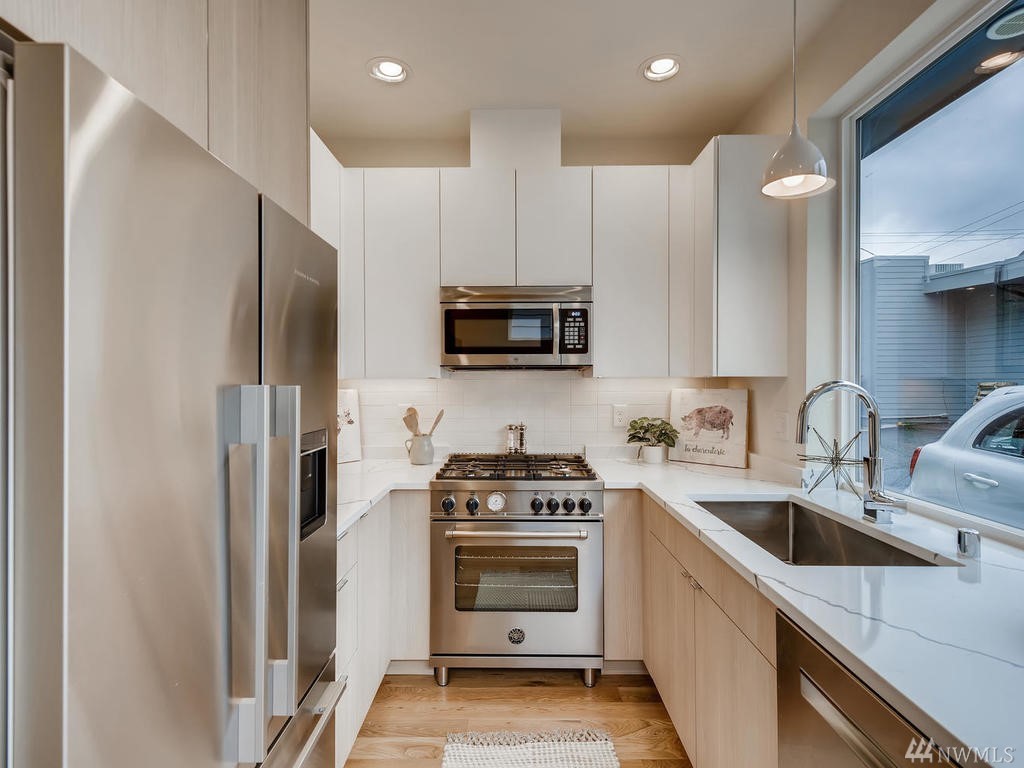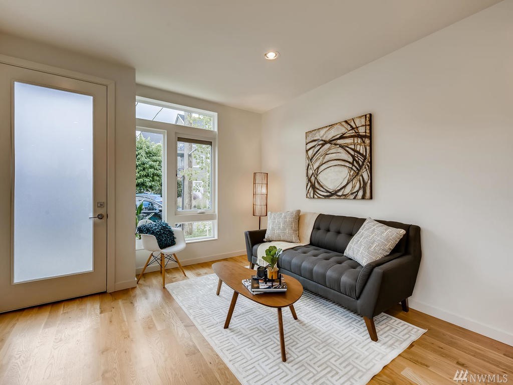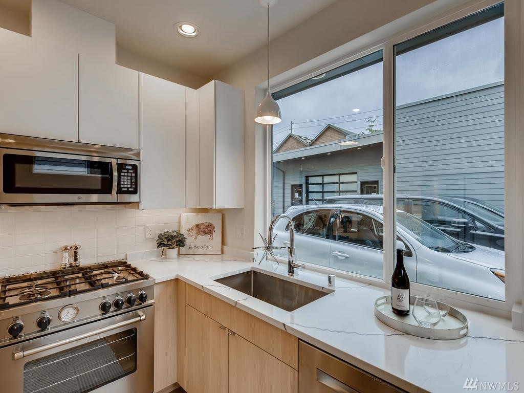Modern end-unit townhome in desirable Whittier Heights. Walk to area shops & cafe's; convenient to transit & downtown. Builder spared no expense w/wide plank flooring & stair treads, and extensive windows for max natural light through out. Kitchen boasts designer SS appliances, deep stainless sink & frosted exterior door to off-street parking. Master features walk-in closet & spa-like master bath w/floor to ceiling designer tile surround & hex tile flooring. Enjoy views from the rooftop deck!