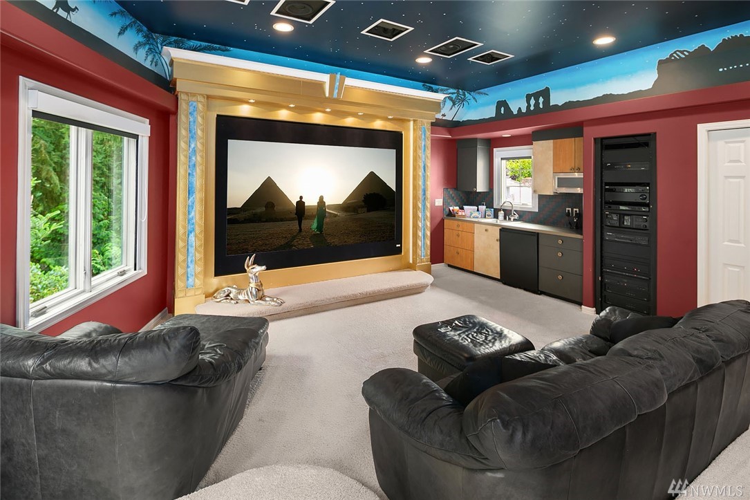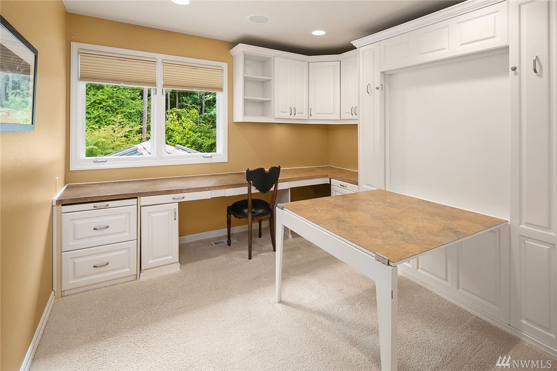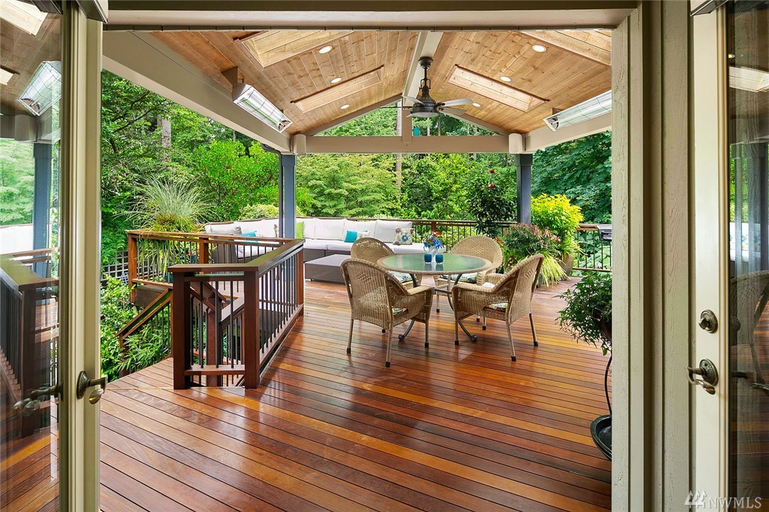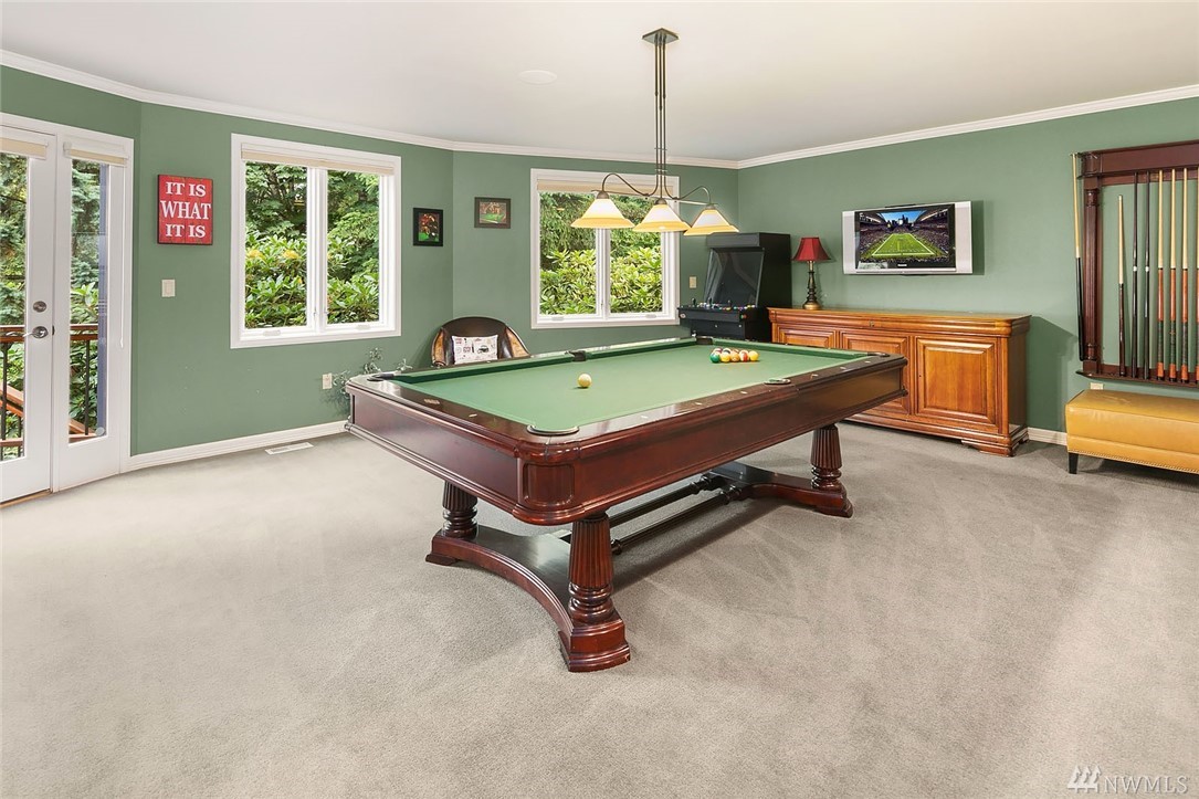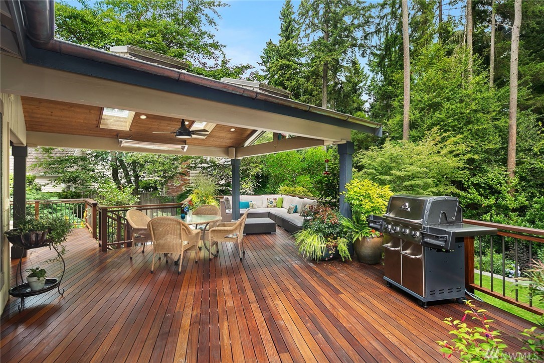 This meticulously maintained 2-story displays quality construction & beautiful updates both inside & out. Its desirable floor plan offers ample space & privacy to work & study from home. Slab granite kitchen opens to the family room & generous covered ironwood deck; large main floor rec room; den; 2nd floor theater; guest suite; romantic master; extensive built-ins. Expansive windows reveal a gorgeous, serene setting with exceptional landscaping including fenced yard & courtyard with waterfall.