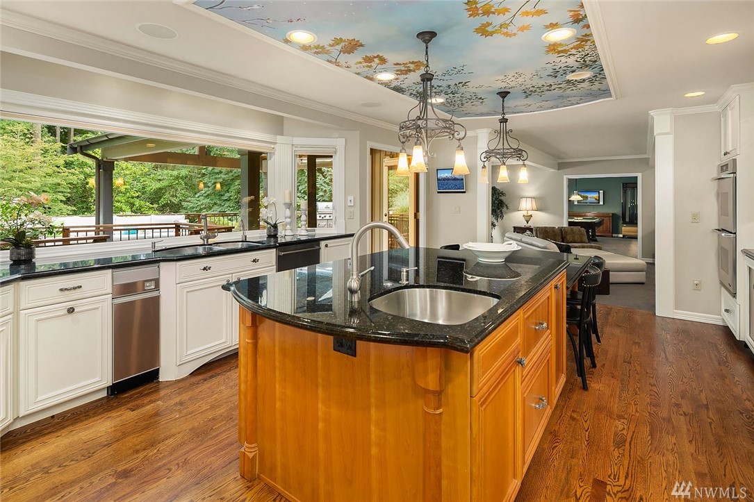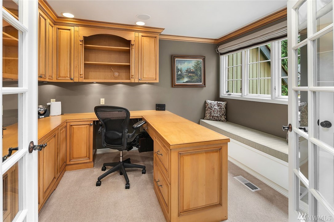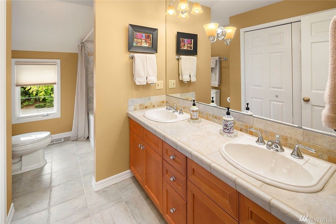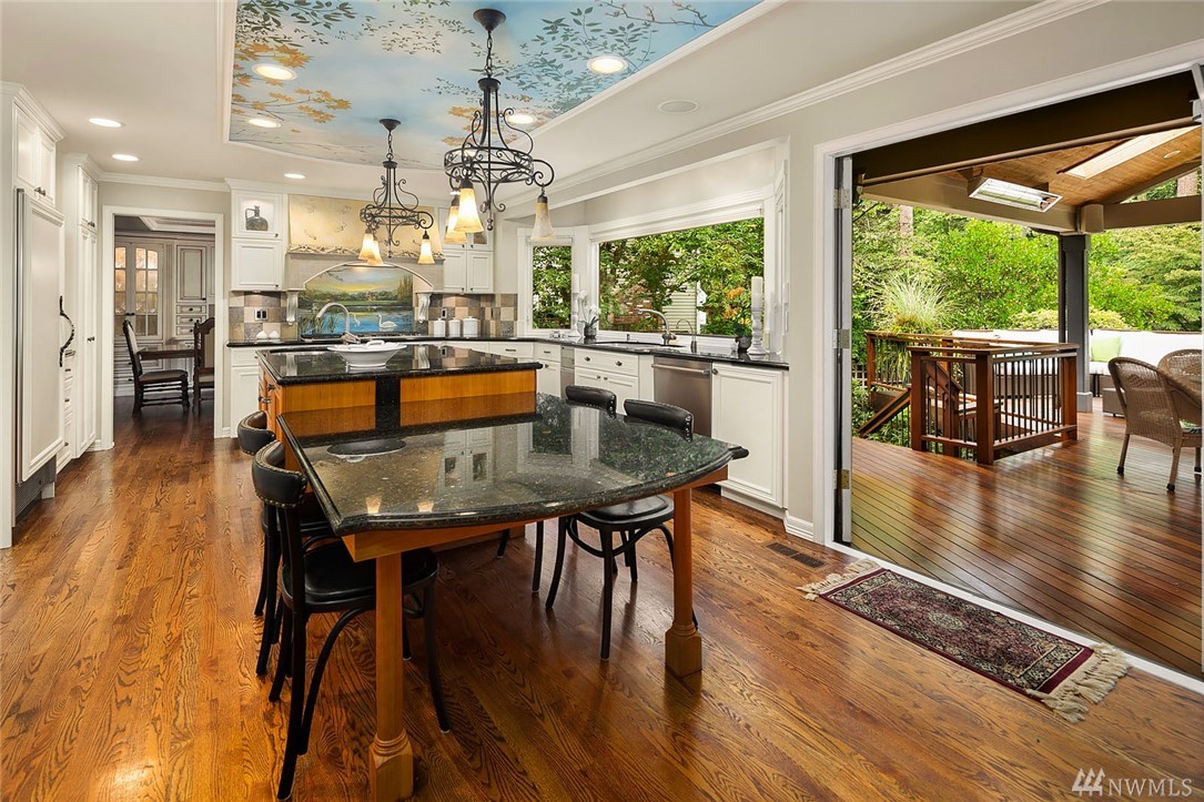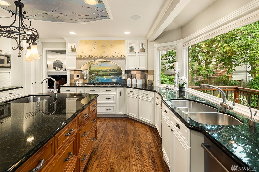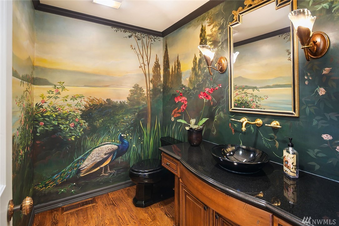 This meticulously maintained 2-story displays quality construction & beautiful updates both inside & out. Its desirable floor plan offers ample space & privacy to work & study from home. Slab granite kitchen opens to the family room & generous covered ironwood deck; large main floor rec room; den; 2nd floor theater; guest suite; romantic master; extensive built-ins. Expansive windows reveal a gorgeous, serene setting with exceptional landscaping including fenced yard & courtyard with waterfall.
