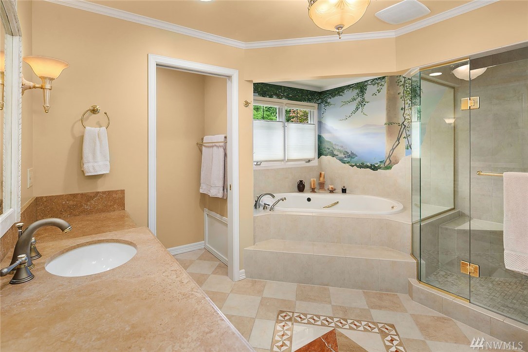 Ceramic Tile Hardwood Bath Off Primary Double Pane/Storm Window Dining Room Fireplace (Primary Bedroom) French Doors Jetted Tub Skylight(s) Water Heater